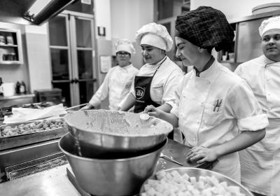 Photo Gallery Home Photo Gallery CENA VALTELLINESE AL CFP CENA VALTELLINESE AL CFP In data 4 marzo 2016, presso il CFP di Como, si è svolta una serata dal tema "La Cucina Valtellinese", curata dallo Chef Buoso Leonardo, docente del CFP. La serata ha visto impegnati gli allievi delle seconde annualità del Settore Ristorativo alberghiero del CFP (Sala Ristorante e Cucina) e gli allievi, coordinati dallo chef e dai formatori/tutor, hanno preparato e servito la cena e il Buffet allestito negli nei nuovi spazi attrezzati del Centro. Dalle ore 20.00 gli ospiti hanno potuto assaporare un ricco menu, partendo da petali di Bresaola della Valtellina serviti con Sciatt, cicorietta e salumi tipici: a seguire il piatto tipico della tradizione Valtellinese rappresentato dai Pizzoccheri, Capriolo con polenta, un assaggio di formaggi tipici con confettura e, per concludere, il dolce tipico (la Bisciola). La cucina valtellinese è ricca di morbidi ed avvolgenti sapori che ne caratterizzano i piatti: semplici e genuini i suoi ingredienti principali come il burro, il formaggio, le patate e il grano saraceno. Al termine della serata sono stati ringraziati gli ospiti - ormai affezionati - presenti per la partecipazione all'evento. Pregiata anche la produzione vinicola della bassa Valtellina, che vede protagonisti Grumello e Sassella dalla cantina "Plozza" che da molti anni cura con passione i vini della tradizione. Qui di seguito alcuni scatti dei momenti più significativi della serata e della premiazione agli allievi e allo Chef che li ha coordinati Torna indietro Condividi Su E-mailFacebookTwitterLinkedIn Gallery