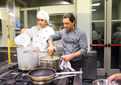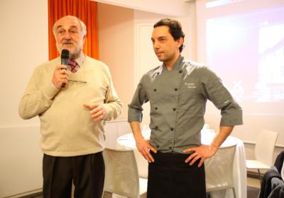 Photo Gallery Home Photo Gallery CENE D'AUTORE: VINCENZO CAROLA AL CFP CENE D'AUTORE: VINCENZO CAROLA AL CFP In data 28 gennaio 2016 il CFP ha avuto l'onore di ospitare il grande Chef Vincenzo Carola: classe 1979 e discendente della più antica famiglia di ristoratori del Cilento che nel 1892 aprì il primo ristorante (il celeberrimo Hotel Carola sulla marina di Agropoli). Il Cilentino Carola caratterizza la sua cucina con una ricerca continua abituando la sua clientela e gli avventori occasionali ad essere sorpresi con piatti sempre nuovi; ricette tradizionali che si trasformano e si evolvono a volte contaminandosi fra di loro con sfumature di sapori inusuali capaci di suggestionare al primo assaggio. Ambasciatore della dieta mediterranea con la Fondazione Alario Velia, Vincenzo è un giovane Chef dalle ampie vedute, sempre pronto a partire per portare alto il nome della cucina mediterranea, le testimonianze più forti sono i mesi che trascorre ogni inverno in giro per l’Europa stringendo nuove collaborazioni con i migliori ristoranti italiani nel mondo. La cena ha avuto come ospiti i genitori della classe 3^A Alimentazione ed altri invitati, per un totale di 85 persone. Filo conduttore della serata è stato il trattamento del Pesce Spada, cucinato senza sprechi fornendo agli allievi di cucina una dimostrazione di trattamento completo delle materie prime del territorio del Sud. Gli ospiti e gli allievi sono stati molto contenti della serata e del lavoro in cucina dello Chef. Qui di seguito la gallery con le foto dell'evento Torna indietro Condividi Su E-mailFacebookTwitterLinkedIn Gallery