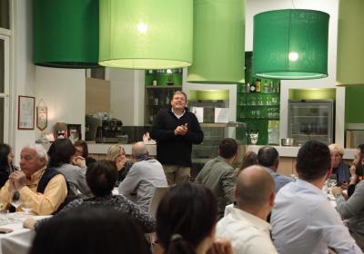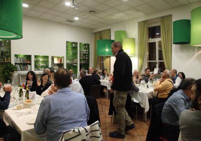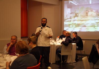 Durante la cena il pescatore e ristoratore Cristian Ponzini - titolare del ristorante - ha illustrato l'intero menu descrivendo le caratteristiche del pescato, la tipologia di preparazione, il metodo di cottura/marinatura ed il modus operandi con la quale si realizza la pesca.