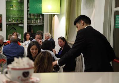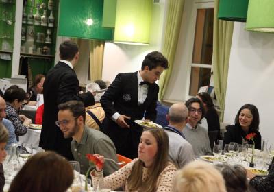 La Cena, con più di 140 ospiti, ha permesso agli allievi delle terze e quarte annualità di cucina e sala ristorante di poter svolgere formazione in assetto lavorativo seguendo le indicazioni dei docenti di sala e cucina presenti all'evento che hanno guidato i ragazzi nello svolgimento della cena.