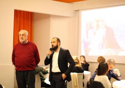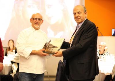Al termine della serata, Direzione e ragazzi del CFP hanno conseganto un libro fotografico di Como: "Ville e giardini del Lago", omaggiando la cena con un piccolo regalo per la professionalità e la disponibilità dimostrata anche nel pomeriggio, quando lo Chef ha tenuto una breve conferenza sul Settore della Ristorazione e sull'Alta Ristorazione nel territorio Lombardo.