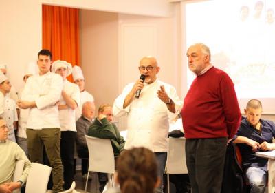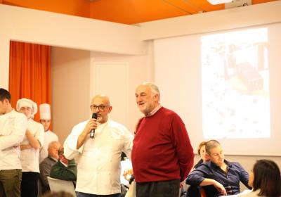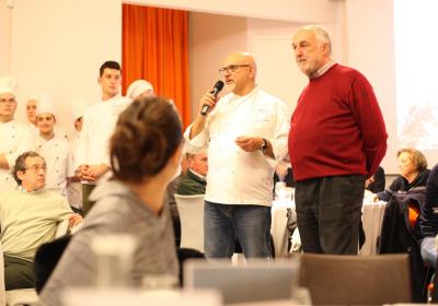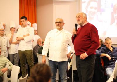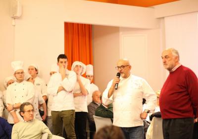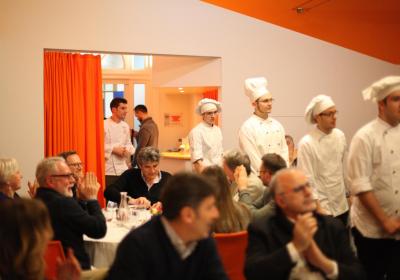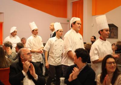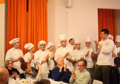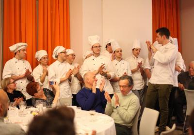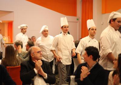 Il Centro di Formazione Professionale di Como – una realtà che opera ormai da più di quaranta anni nella Formazione Professionale (Settore Ristorativo Alberghiero e del Benessere) può contare anche sulla collaborazione dei suoi allievi più meritevoli appartenenti alle Quarte Annualità di Cucina e Sala Ristorante, che hanno lavorato con lo Chef in cucina e con la sala per il Servizio per i numerosi ospiti, che in questa edizione hanno superato le ottanta persone.
