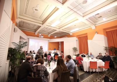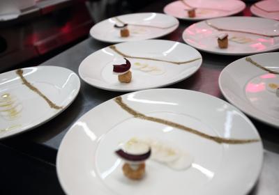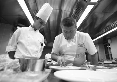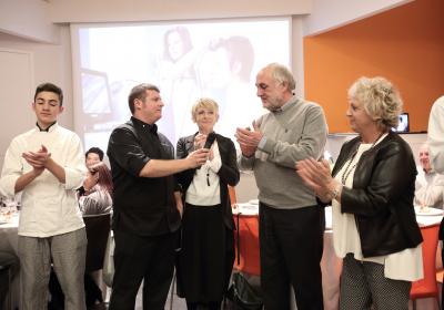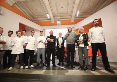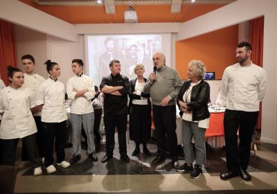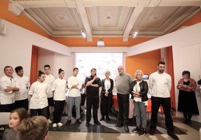 Photo Gallery Home Photo Gallery GRANDI CHEF AL CFP: PIETRO VOLONTÉ GRANDI CHEF AL CFP: PIETRO VOLONTÉ Lo Chef stellato Pietro Volontè (Althoff Hôtel Villa Belrose, Saint-Tropez) è stato protagonista della cena d'Autore svolta in data Sabato 2 dicembre presso la Sala Ristorante del CFP di COMO. Classe ‘85, Pietro Volontè - ex allievo del CFP di Monte Olimpino - è tornato dopo numerose ed importanti esperienze di rango internazionale per cucinare piatti ricercati e all'avanguardia nella scuola che lo ha visto crescere e muovere i primi passi della Sua prestigiosa carriera. Iniziando “Da Candida” a Campione d’Italia (Chef Bernard Fournier), all'Hotel Eden a Roma, al Badrutt’s Palace Hotel in Svizzera. Ha avuto modo di seguire lo Chef Enrico Derflingher nella cornice di Saint Moritz. Passa poi dal Cipriani Restaurant a Londra, al Gordon Ramsay di Londra e poi a quello di Parigi, dove diventa secondo chef. Il suo stile - sobrio ed elegante- è legato a tradizione e semplicità. Oggi ricopre la posizione di chef all‘Althoff Hotel Villa Belrose, lussuoso Relais & Chateaux in Costa Azzurra ed è insignito di una STELLA MICHELIN. Il Centro di Formazione Professionale di Como ha aperto proprio con lo Chef Volontè la "Rassegna dei Grandi Chef Stellati": una carrellata di appuntamenti che vedono protagonisti Chef e piatti di altissimo livello e ricerca: il menù proposto ha visto un "Amouche Bouche" di benvenuto, Salmone alla camomilla con Purè di finocchi, rapa svedese e radicchio trevigiano come antipasto, Risotto alle bietole, lumache e taleggio come primo piatto e Lombo di vitello cotto al burro di salvia, verza stufata, scorzonera, topinambur e salsa Madeira. Interessante il dolce: Monte Bianco, croccante di cioccolato, gelato di castagne e whisky. Lo Chef ha cucinato i piatti del menu con la Brigata delle classi terze di cucina del Centro e coordinando con i docenti di sala e gli allievi delle seconde annualità il servizio. Nello Staff di Pietro per questa serata, anche l'amico e collega Paolo Longoni - cuoco del ristorante "BellaVista" di Veleso (CO), peraltro docente di cucina deli corsi DDIF del CFP. I due Chef hanno condiviso assieme l'esperienza al Restaurant Gordon Ramsey di Londra. Più di 60 ospiti presenti alla Cena hanno gradito il Menu, strutturato con abbinamenti interessanti e materie prime di primissimo livello. Tra gli ospiti anche la Consigliera Regionale Daniela Maroni (Regione Lombardia), presente al tavolo che ha premiato personalemente lo Chef con il Libro del Lago di Como (Pifferi Editore), assieme al Direttore ed al Vice-Direttore del Centro. Grande l'emozione degli allievi e delle allieve impegnate nella serata che ha rappresentato un importante momento didattico e formativo per gli studenti coinvolti. Qui di seguito la PHOTOGALLERY con gli scatti istituzionali e di reportage dell'evento Torna indietro Condividi Su E-mailFacebookTwitterLinkedIn Gallery
