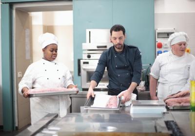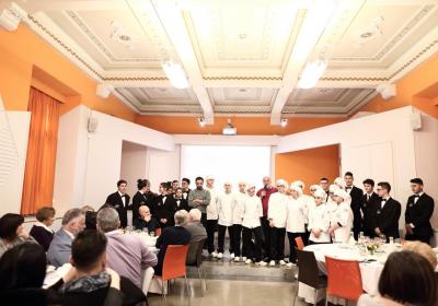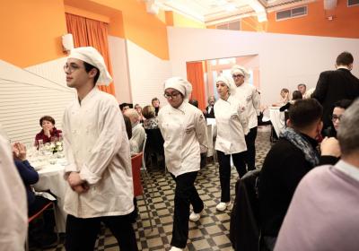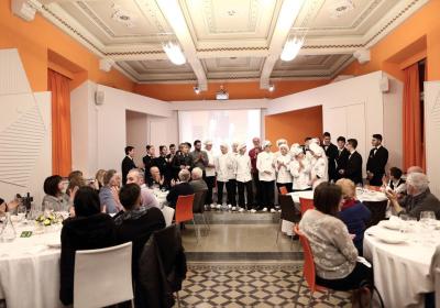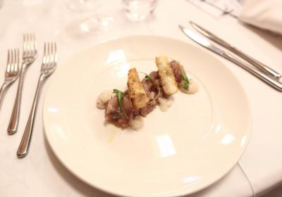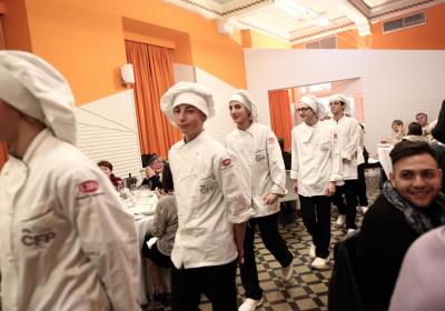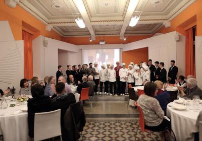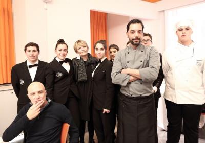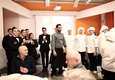 Photo Gallery Home Photo Gallery GRANDI CHEF AL CFP: VINCENZO CAROLA GRANDI CHEF AL CFP: VINCENZO CAROLA Grandi nomi della cucina italiana al CFP di Como. Protagonisti gli studenti dei corsi di Cucina e Sala del Centro di Formazione Professionale che, nelle giornate del 30 e 31 gennaio hanno affiancato lo chef Cilentino Vincenzo Carola, ospite a Como. Il menu 360° di Ricciola racchiude in sè tutto lo spirito e l'anima del SUD Italia, dove lo spreco non è contemplato e la "materia prima" è rispettata, lavorata ed esaltata nella sua essenza. Lo Chef Cilentino, al terzo appuntamento annuale come ospite a Como, è titolare dello storico e rinomato ristorante "Vecchio Saracino" di Agropoli. La famiglia Carola, ormai da quattro generazioni porta avanti la tradizione del pesce di mare in una zona che è patrimonio UNESCO (Vallo di Diano). Piatti semplici ma carichi di gusto che raccontano la cucina cilentina influenzata dalla tradizione saracena. Il percorso di degustazione è iniziato una aperitivo di benvenuto: Polpette di patate, Alici di Menaica e pappacelle, Focaccia al limoncello con patè di fegato di Ricciola. Antipasto a base di Crudo di Ricciola, fagioli di Controne, cumino e limone come, primo piatto con Conchiglie di grano duro, guancia e ventresca di Ricciola, uvetta, pinoli e porri caramellati al Lucano e per finire Trancio di Ricciola, solera di aceto balsamico "1920", olive affumicate e rosmarino. Interessante il dolce: Croccante di amaretti in semifreddo, sciroppo di agrumi e zenzero. La cena è stata accompagnata da Vini del SUD Italia, rispettando il territorio e la tradizione. Gli ospiti, sempre numerosi in questi appuntamenti hanno gradito la Cena e ascoltato con piacere la spiegazione del Menu da parte dello Chef che, al termine della serata, ha ringraziato i commensali e gli allievi che lo hanno aiutato in questo evento. Qui di seguito gli scatti della serata Torna indietro Condividi Su E-mailFacebookTwitterLinkedIn Gallery