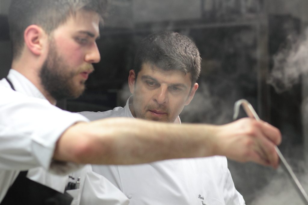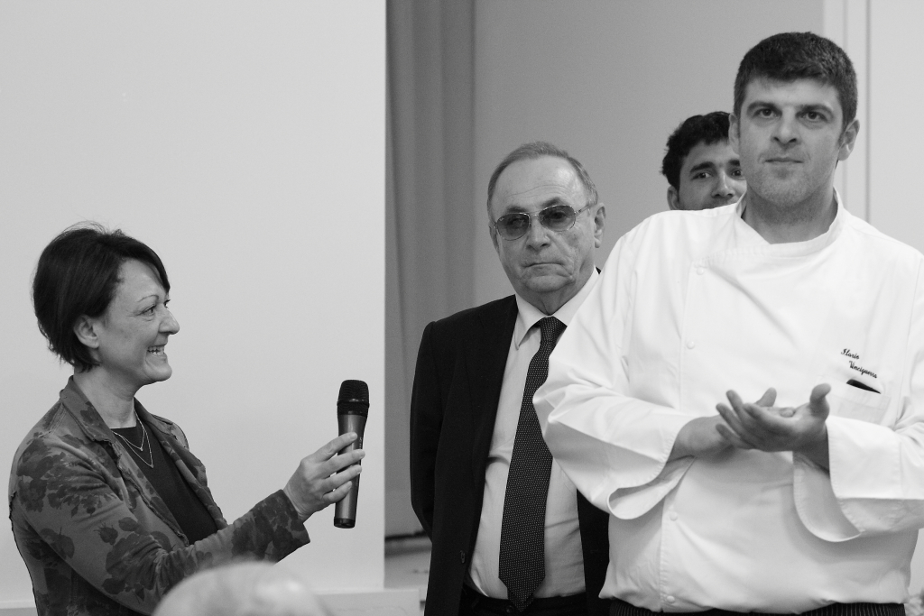 Photo Gallery Home Photo Gallery ILARIO VINCIGUERRA AL CFP ILARIO VINCIGUERRA AL CFP Nell’ambito dell’importante iniziativa internazionale Expo Milano 2015, attraverso la quale il nostro Paese si appresta ad accogliere turisti e ospiti di levatura internazionale, il CFP di Como – Monte Olimpino, si è già attivato presentando materiale didattico e multimediale inerente ai numerosi temi che verranno approfonditi nella manifestazione (Nutrire il pianeta, energia per la vita) e che avranno come sfondo l’alimentazione e la creatività culinaria dei diversi paesi nel mondo. Il Centro di Formazione Professionale di Como, seguendo il leitmotiv di Expo, propone un’interessante carrellata di Maestri della cucina, selezionati tra i migliori interpreti del panorama enogastronomico italiano e conosciuti a livello internazionale. L’Amministratore Unico e la Direzione del Centro hanno già avuto l’onore di ospitare lo Chef Claudio Sadler (Ristorante “Sadler” a Milano) nel mese di febbraio: questo mese sarà invece dedicato ad Ilario Vinciguerra. Lo Chef campano (“Ilario Vinciguerra Restaurant” – Gallarate Milanese) ha conseguito il Diploma di Maturità Professionale nell'anno scolastico 1993/1994 presso l'Istituto Professionale Alberghiero "Angelo Celletti" di Gianola - Formia (Latina). Con una carriera ventennale alle spalle, ha lavorato in grandi ristoranti pluri premiati, dall’Hotel "la Reserve de Beaulieu" (2 stelle Michelin), al "Luigi Quindicesimo" di Montercarlo, a grandi Ristoranti svizzeri, e al "Don Alfonso 1890" di Sant'Agata sui due Golfi (Napoli): 3 stelle Michelin. Si è meritato una Stella al suo Ristorante, un posto stabile tra i Jeunes Restaurateurs D'Europe e il premio “Miglior piatto all'olio d'Oliva a San Sebastian”, oltre alla docenza presso la Alma (Scuola Internazionale di Cucina). La Sua cucina, in continua evoluzione, sorprende senza mai perdere di vista i prodotti e i colori mediterranei. Secondo Ilario l’idea di un piatto da sola non basta: occorre saperla portare oltre, in modo tale da soddisfare l’aspetto olfattivo, visivo e gustativo. Il suo messaggio è quello di una cucina sincera, fatta di sensazioni immediate: tradizionale e nel contempo moderna. La serata è iniziata con un originale aperitivo di benvenuto: pizzette di scarola, chique lorraine con provola e verdure, spuma di ricotta di bufala e cozze alla milanese con pesto di San Marzano. L’antipasto, a base di pesce, ha visto protagonista polpo alla plancia e il suo brodo e a seguire il primo piatto: un singolare risolio mele annurche e capperi. Come secondo gli ospiti – più di 60 persone – hanno potuto assaggiare una sfogliatella farcita di baccalà su peperoni in agrodolce: interessante ed equilibrato abbinamento. Gran finale con doppia portata di dolce: il Suo famoso “Oro di Napoli” e il “Babbà della tradizione” con panna di bufala. Il Centro di Formazione Professionale di Como, che opera ormai da più di quaranta anni nella Formazione Professionale (Settore Ristorativo Alberghiero e del Benessere), si è avvalso degli allievi più meritevoli appartenenti alle Terze e Quarte Annualità di Cucina e Sala Ristorante per la realizzazione dell’intero servizio. Gli allievi hanno coordinato la serata in prima persona accrescendo le loro conoscenze tecnico-professionali. Molto soddisfatti i commensali, che hanno potuto vivere un’esperienza all’insegna dei sapori veri e di prodotti di qualità. Il CFP chiuderà in bellezza con l’ultimo tra gli chef stellati previsti per questa annualità: Giancarlo Morelli (“Pomiroeu” a Seregno), chè il Centro ospiterà per l’evento previsto in data 5 maggio 2015. Qui di seguito gli scatti dell'evento e dei piatti preparati dallo Chef Torna indietro Condividi Su E-mailFacebookTwitterLinkedIn Gallery
