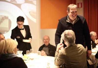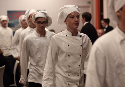 Photo Gallery Home Photo Gallery LA TRADIZIONE LARIANA: IL PESCE DI LAGO AL CFP LA TRADIZIONE LARIANA: IL PESCE DI LAGO AL CFP In data 6 aprile 2017 si è tenuta presso il CFP di Como – Monte Olimpino – la Cena dal tema “IL PESCE: DAL LAGO ALLA TAVOLA”, a cura del Ristorante “Silvio” di Bellagio. Giunti ormai alla VII edizione, la serata ha proposto come tema il pesce del lago di Como, la cui tradizione affascina sempre molto i commensali che in questa edizione hanno raggiunto le il numero record di 120 presenze, riempendo due sale. La pesca è il fulcro dell’attività dello storico ristorante, che ormai da generazioni allieta i suoi numerosi clienti con ricette legate alla tradizione Lariana. Tutto ruota intorno a questa attività: non solo è vitale per il ristorante, ma garantisce la freschezza e la selezione delle materie prime. Durante la cena il pescatore e ristoratore Cristian Ponzin, titolare del ristorante, ha illustrato il menu della cena descrivendo con attento dettaglio e grande passione il pescato del giorno ed il metodo con il quale si è realizzata la pesca per la cena. Le storie dei pescatori del Lario hanno da sempre affascinato i turisti e gli amanti della tradizione comasca, e sono la dimostrazione di come la cucina, in Italia, sia espressamente legata ad un'anima e ad un territorio ricco di materie prime e specie animali esclusive e ricercate. Ricco e variegato il menù: Crudité del Lario all’italiana, Paté di Lavarello e Coradura di Agone, Filetto di Lavarello in Salsa verde, Crostone di pane, Filetto di Bottatrice in agrodolce, Pigo marinato freddo con sale e zucchero, Agoni in Carpione. Primo piatto con Corde di chitarra al Luccio e, come secondo, pescato del giorno gratinato al limone con agone e patata bianca comasca; Miascia di Bellagio con singolare rivisitazione all'uva americana per chiudere la serata. A metà evento Christian ha risposto alle numerose domande degli ospiti che, curiosi, proponevano quesiti ed aneddoti legati alla pesca sul lago di Como. Oltre a esprimere un momento importante per gli ospiti, la cena ha rappresentato anche un interessante momento didattico/formativo per gli allievi delle seconde e delle quarte annualità del Settore Ristorativo Alberghiero, presenti al servizio nelle due sale per l'occasione. Qui di seguito le foto più significative dell'evento Torna indietro Condividi Su E-mailFacebookTwitterLinkedIn Gallery