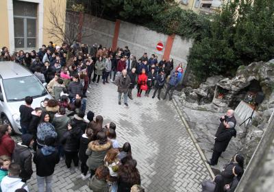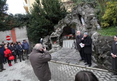 Photo Gallery Home Photo Gallery L'ARTISTA LEONARDO GERMINARIO E IL DONO DEL PRESEPE AL C.F.P. L'ARTISTA LEONARDO GERMINARIO E IL DONO DEL PRESEPE AL C.F.P. Leonardo Germinario, in arte Leo Germi, della classe 1926, nasce a di Santeramo in Colle (Ba). La sua passione per l’arte sboccia da bambino accompagnando il nonno Erasmo dal parrucchiere per poter guardare le opere di cartapesta presenti nel retrobottega. Il parrucchiere infatti, amante dell’arte della cartapesta, aveva trasformato il magazzino del negozio in un vero studio artistico, e qui il piccolo Leonardo poteva osservare dei piccoli capolavori. Amante dell’arte ha ricevuto la passione per il presepe da uno zio. Ogni anno Leonardo era il primo ad essere chiamato per aiutarlo nella realizzazione. Il giorno di natale si svolgeva poi l’inaugurazione; i nipoti in fila portavano il Bambinello fino alla sua culla. Da allora la passione in Leonardo ha continuato a crescere e gli studi di architettura gli hanno permesso di realizzare presepi di grande bellezza. Il suo primo presepe l’ha realizzato in una taverna romana a Poggiorsini. E da lì ogni natale prepara piccoli presepi da regalare. Negli anni 50, quando si trasferisce a Como, inizia i corsi presso l’Accademia di Brera, raffinando ulteriormente la sua competenza tecnica e artistica. Dopo aver realizzato parecchi presepi nella Provincia di Como (Basilica del Crocifisso, Ospedale Valduce) e in Svizzera (Chiesa di Fatima in Chiasso), dai primi giorni di novembre il signor Leo, si sta dedicando alla costruzione del presepe nella grotta della Madonna di Lourdes nel C.F.P. di Como, iniziando dal paesaggio con carta, cartone e colla. Colori e accessori hanno arricchito l’opera. Gli allievi del C.F.P. guidati dagli insegnanti hanno avuto l’occasione di incontrare l’artista al lavoro. In questo modo hanno potuto conoscere le sue tecniche artistiche e soprattutto quella passione del fare che negli anni non è mai venuta meno ma che anzi lo ha portato a sfidare il freddo e la fatica per realizzare un sogno personale. Il Direttore e tutti i suoi collaboratori insieme agli allievi e alle sue nipoti sono grati a Leo per aver dato la propria disponibilità e per aver donato anche al C.F.P. una delle sue opere, che diventerà patrimonio dell’Istituto. Torna indietro Condividi Su E-mailFacebookTwitterLinkedIn Gallery