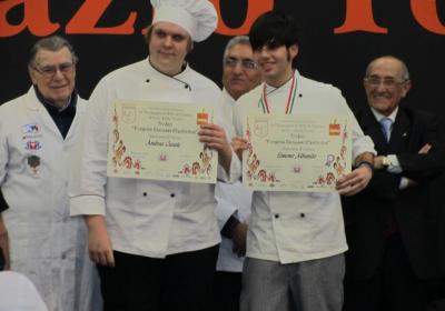 Photo Gallery Home Photo Gallery RistorExpo2011 - Fuori Salone al CFP RistorExpo2011 - Fuori Salone al CFP Il CFP ha partecipato a RistorExpo 2011 presso il salone Lartiofiere di Erba: qui trovate alcune foto della manifestazione, dei piatti, e dei tanti premi che i nostri ragazzi hanno ricevuto alla presenza del rinomato Chef Gualtiero Marchesi. In data Martedì 22 Febbraio 2011 Ristorexpo ha proposto uno speciale "Fuori Salone" presso il CFP. La Cena, organizzata con la collaborazione di selezionati chef del settore, ha proposto un ricercato menù. Tra i rinomati specialisti del settore troviamo gli chef Mauro Elli “Il Cantuccio” – Albavilla (CO), Massimo Sola “Villa del Quar” - San Pietro in Cariano (VR), Mauro Botta, ”L’Artigliere” - Brescia. Qui di seguito riportiamo alcune foto della manifestazione e della serata Torna indietro Condividi Su E-mailFacebookTwitterLinkedIn Gallery