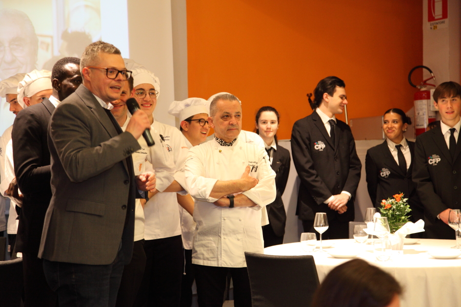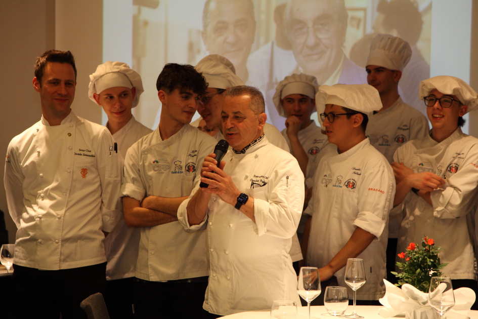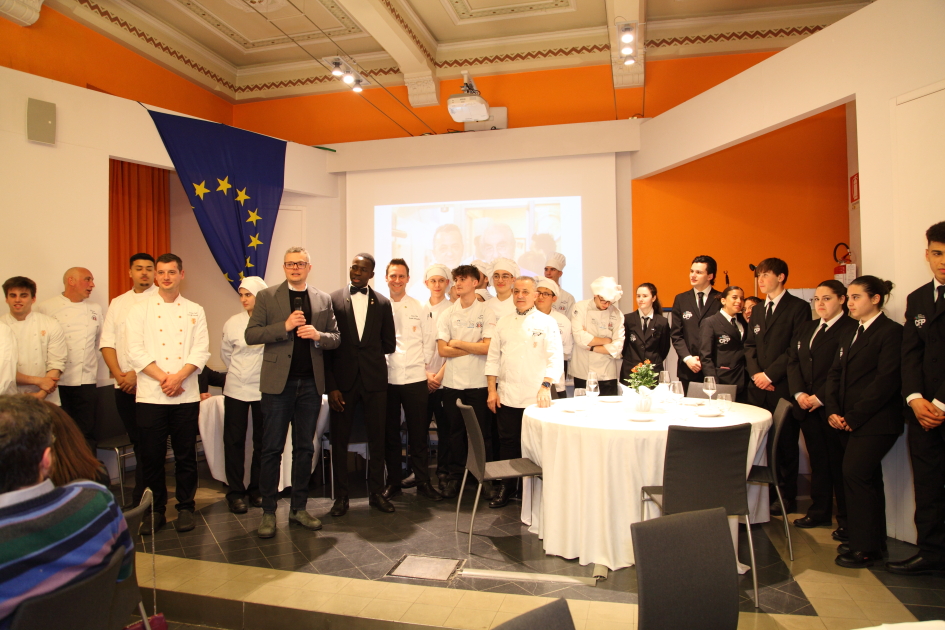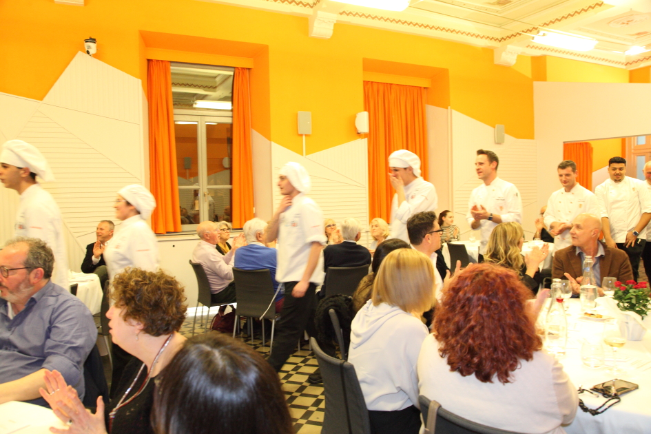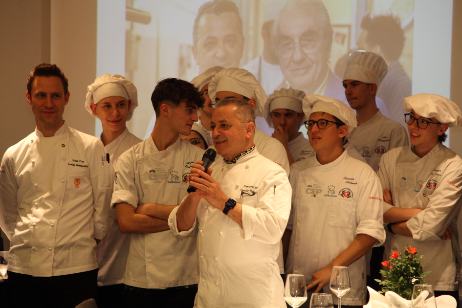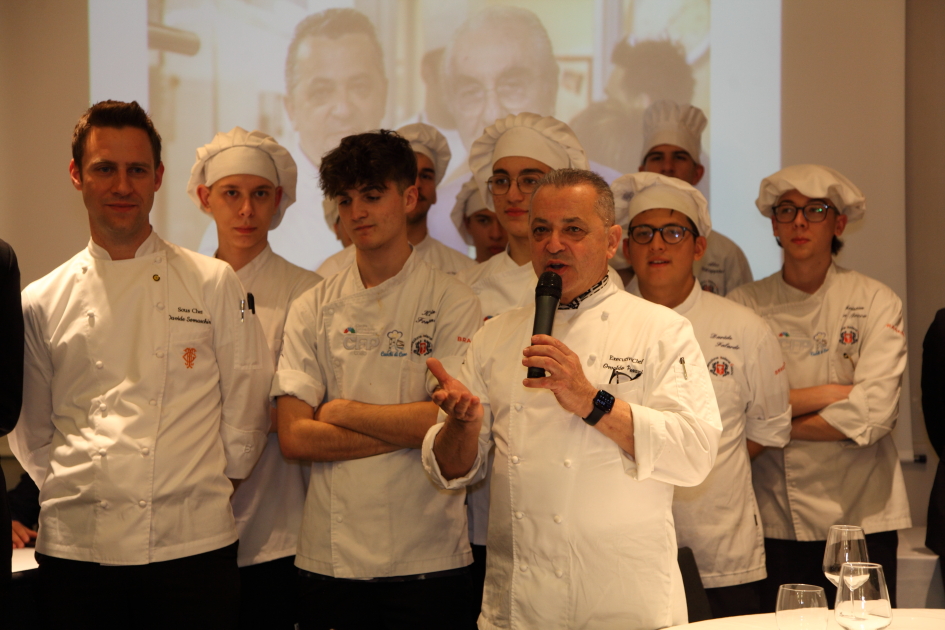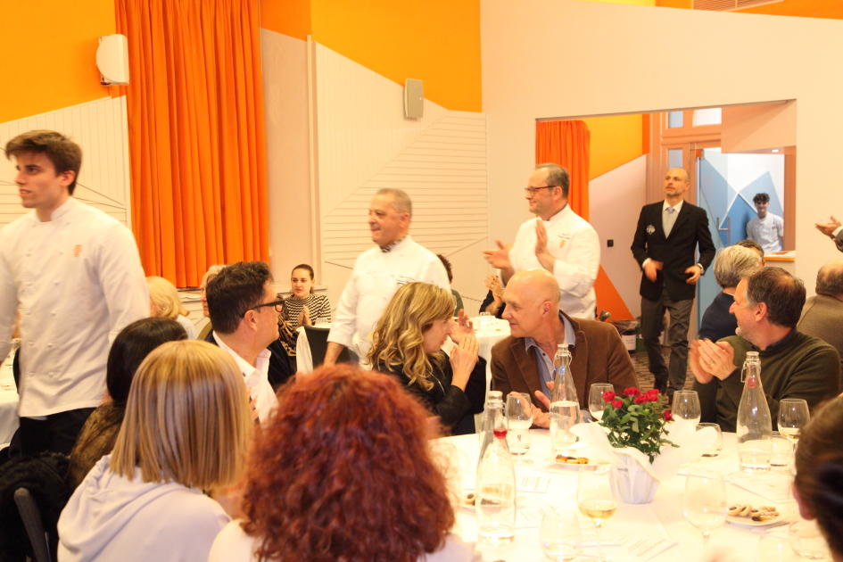 Photo Gallery Home Photo Gallery A TAVOLA CON MARCHESI - III EDIZIONE A TAVOLA CON MARCHESI - III EDIZIONE Serata d’eccezione al Centro di Formazione Professionale della Provincia di Como. Lo Chef del Grand Hotel Tremezzo Osvaldo Presazzi e il suo staff di sala e cucina, con il supporto degli studenti del IV ANNO del settore alberghiero del CFP, hanno preparato i piatti ideati dal grande Maestro della cucina italiana “Gualtiero Marchesi”.La serata ha visto la partecipazione del tesoriere e rappresentante della Fondazione Enrico Dandolo, che ha coordinato l’evento in nome della Fondazione Gualtiero Marchesi, nata con l’obiettivo di divulgare e promuovere le idee e le scoperte gastronomiche del suo mentore.La cena è realizzata grazie alla disponibilità della proprietà del Grand Hotel Tremezzo, con il suo celebre ristorante La Terrazza Gualtiero Marchesi, unico ristorante al mondo che oggi può vantarsi di proseguire l’impareggiabile eredità gastronomica del grande Maestro, riproponendone i piatti iconici nel rispetto dello stile e della codificazione.Circa settantina gli ospiti presenti. Le prenotazioni si sono esaurite nel giro di qualche ora, vista l’eccezionalità della serata. Qui di seguito la gallery dell'evento Torna indietro Condividi Su E-mailFacebookTwitterLinkedIn Gallery