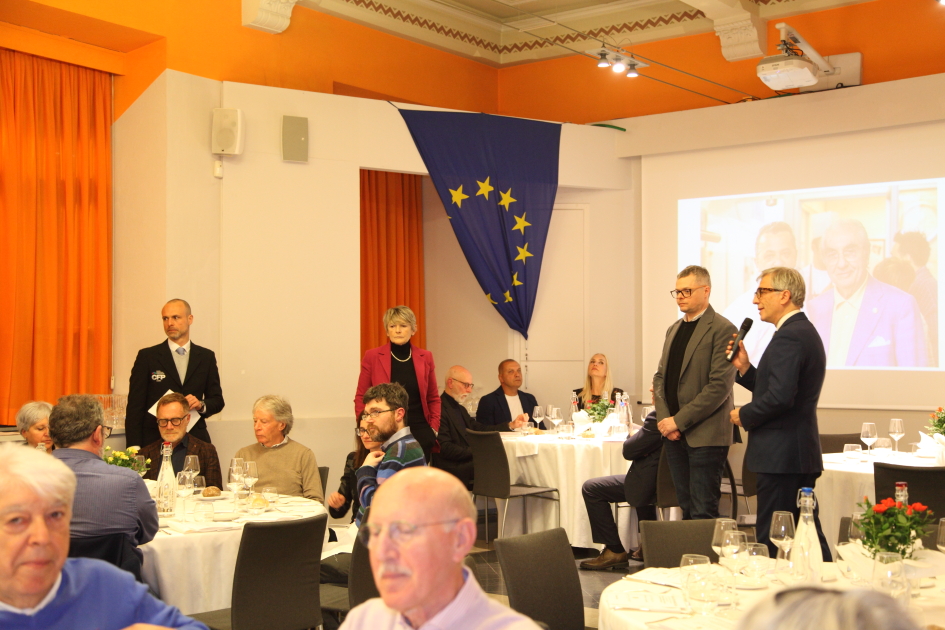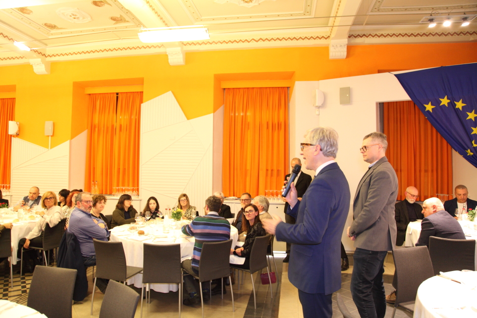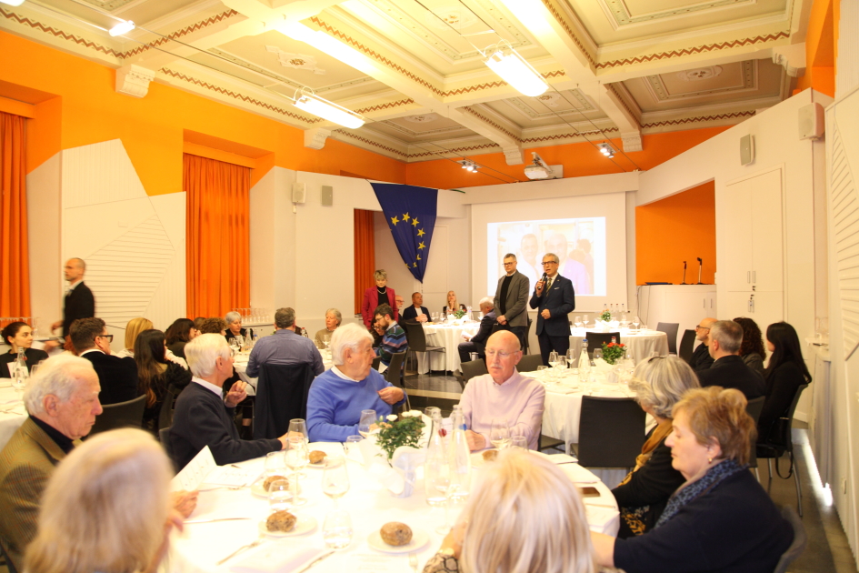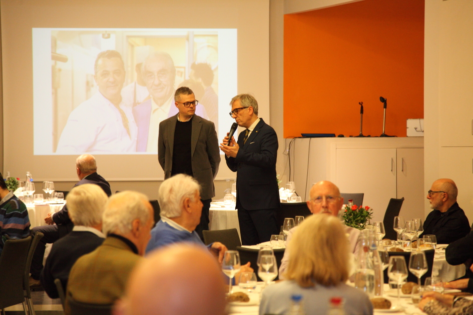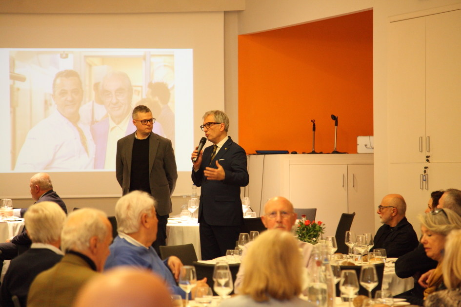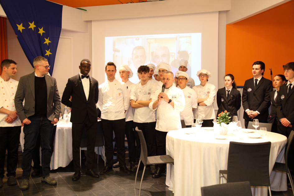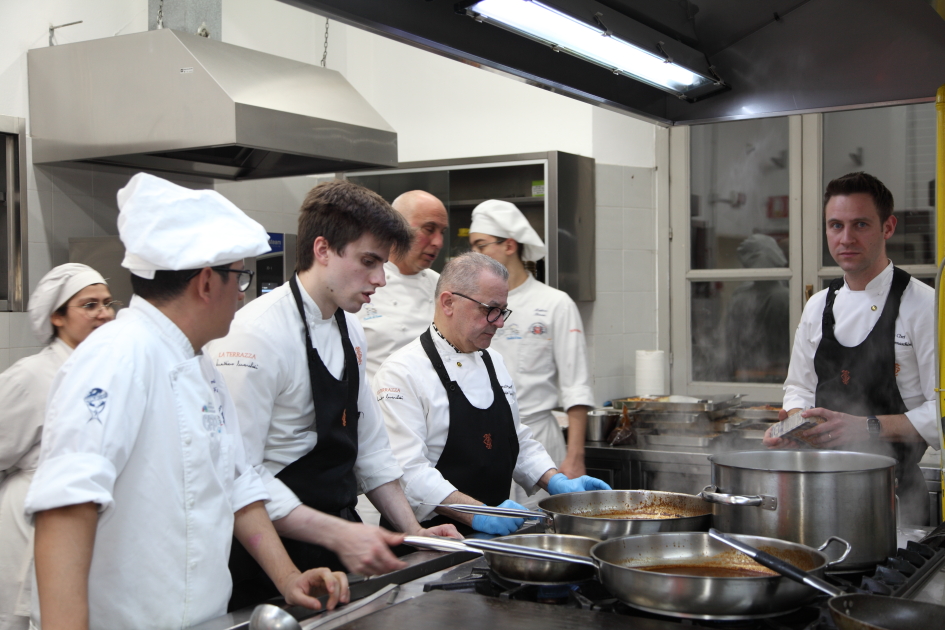 Photo Gallery Home Photo Gallery A TAVOLA CON MARCHESI - III EDIZIONE A TAVOLA CON MARCHESI - III EDIZIONE Serata d’eccezione al Centro di Formazione Professionale della Provincia di Como. Lo Chef del Grand Hotel Tremezzo Osvaldo Presazzi e il suo staff di sala e cucina, con il supporto degli studenti del IV ANNO del settore alberghiero del CFP, hanno preparato i piatti ideati dal grande Maestro della cucina italiana “Gualtiero Marchesi”.La serata ha visto la partecipazione del tesoriere e rappresentante della Fondazione Enrico Dandolo, che ha coordinato l’evento in nome della Fondazione Gualtiero Marchesi, nata con l’obiettivo di divulgare e promuovere le idee e le scoperte gastronomiche del suo mentore.La cena è realizzata grazie alla disponibilità della proprietà del Grand Hotel Tremezzo, con il suo celebre ristorante La Terrazza Gualtiero Marchesi, unico ristorante al mondo che oggi può vantarsi di proseguire l’impareggiabile eredità gastronomica del grande Maestro, riproponendone i piatti iconici nel rispetto dello stile e della codificazione.Circa settantina gli ospiti presenti. Le prenotazioni si sono esaurite nel giro di qualche ora, vista l’eccezionalità della serata. Qui di seguito la gallery dell'evento Torna indietro Condividi Su E-mailFacebookTwitterLinkedIn Gallery