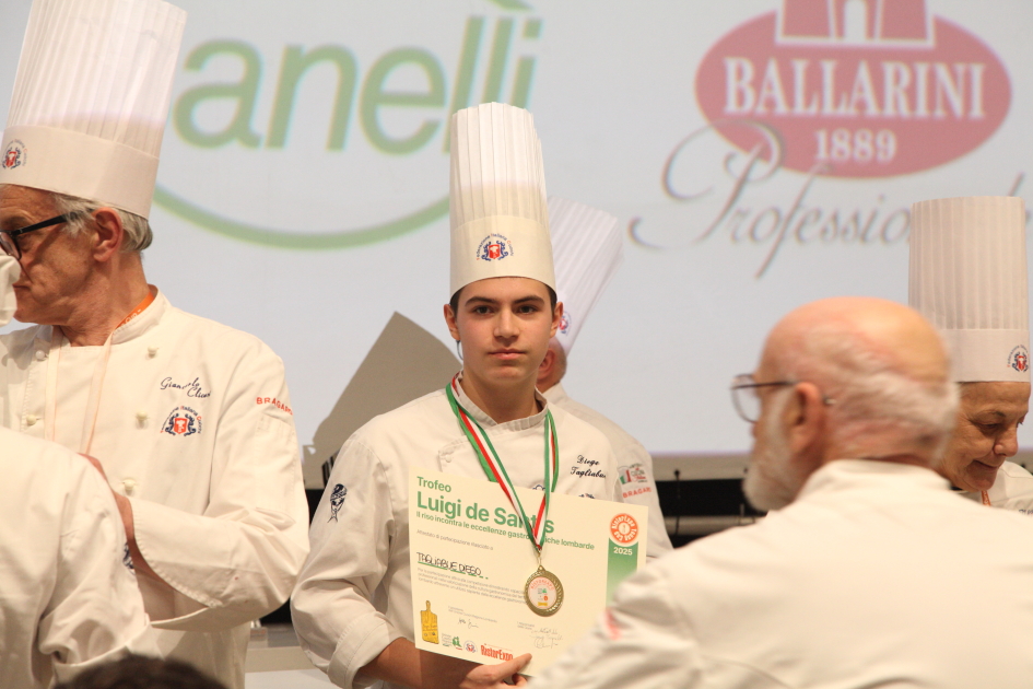 Photo Gallery Home Photo Gallery RISTOREXPO 2025 RISTOREXPO 2025 Il CFP di Como ha partecipato all'appuntamento annuale con Lariofiere al Salone di RistorExpo. Quest'anno il tema del settore della ristorazione è stato "Ripartiamo dagli Odori".Le classi quarte hanno partecipato alla conferenza del giorno 5 marzo tenuta dallo Chef bistellato Davide Oldani del D'O e del Ristorante OLMO di Cornaredo (MI), che ha parlato ai giovani della professione del cuoco e del cameriere facendoli avvicinare con interesse e coinvolgimento al lavoro ed evidenziando come la passione porti a gradi traguardi. Presente alla conferenza anche lo chef stellato Mauro Elli del Cantuccio di Albavilla (CO).Per quanto riguarda le competizioni, gli allievi del CFP hanno vinto l'Oro assoluto per la cucina nel concorso nazionale "Cesare Chessorti": la cucina del CFP è stata riconosciuta la migliore tra venti scuole italiane. Oltre al riconoscimento nel concorso a squadre, tre oro per i risotti, argento per la sala e bronzo per il cocktail nei concorsi di giornata. Grande e meritata soddisfazione per l'edizione 2025 di Ristorexpo.Qui di seguito la GALLERY dell'evento e le foto più rappresentative della premiazione. Torna indietro Condividi Su E-mailFacebookTwitterLinkedIn Gallery