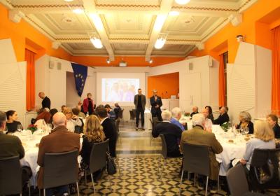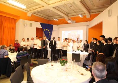 Photo Gallery Home Photo Gallery A TAVOLA CON MARCHESI - III EDIZIONE A TAVOLA CON MARCHESI - III EDIZIONE Serata d’eccezione al Centro di Formazione Professionale della Provincia di Como. Lo Chef del Grand Hotel Tremezzo Osvaldo Presazzi e il suo staff di sala e cucina, con il supporto degli studenti del IV ANNO del settore alberghiero del CFP, hanno preparato i piatti ideati dal grande Maestro della cucina italiana “Gualtiero Marchesi”.La serata ha visto la partecipazione del tesoriere e rappresentante della Fondazione Enrico Dandolo, che ha coordinato l’evento in nome della Fondazione Gualtiero Marchesi, nata con l’obiettivo di divulgare e promuovere le idee e le scoperte gastronomiche del suo mentore.La cena è realizzata grazie alla disponibilità della proprietà del Grand Hotel Tremezzo, con il suo celebre ristorante La Terrazza Gualtiero Marchesi, unico ristorante al mondo che oggi può vantarsi di proseguire l’impareggiabile eredità gastronomica del grande Maestro, riproponendone i piatti iconici nel rispetto dello stile e della codificazione.Circa settantina gli ospiti presenti. Le prenotazioni si sono esaurite nel giro di qualche ora, vista l’eccezionalità della serata. Qui di seguito la gallery dell'evento Torna indietro Condividi Su E-mailFacebookTwitterLinkedIn Gallery