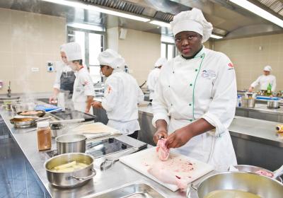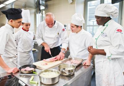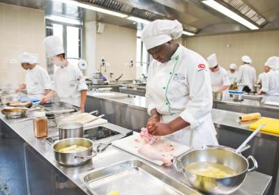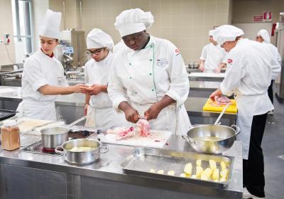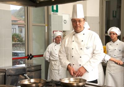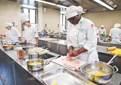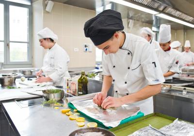 Cucina QUALIFICA TRIENNALE E DIPLOMA DI QUARTO ANNO Home Corsi e servizi Genitori e studentiCorsi di qualifica, diploma e IFTSCucina QUALIFICA TRIENNALE E DIPLOMA DI QUAR... Cucina QUALIFICA TRIENNALE E DIPLOMA DI QUARTO ANNO TRIENNIO La Qualifica Professionale di "Operatore della Ristorazione - Preparazione degli alimenti e allestimento piatti" - Qualifica di III livello Europeo - si acquisisce dopo tre anni di formazione. Descrizione della Figura Professionale L’Operatore della Ristorazione - Preparazione degli alimenti e allestimento piatti - è in grado di lavorare in autonomia all’interno della “brigata di cucina”, collabora nella preparazione e realizzazione del menu secondo le indicazioni del Cuoco. Possiede abilità pratiche, è in grado di sviluppare un proprio stile artistico, ha senso dell’organizzazione del lavoro, attitudine alla precisione e capacità di agire in collaborazione con gli altri componenti del suo team di lavoro. Articolazione del corso Il percorso formativo prevede l'acquisizione di competenze di base e professionali attraverso lo sviluppo di conoscenze e abilità riferite a: 1) Area di Base: Lingua italiana, Lingua Inglese, Stora/Geografia, Diritto/Economia, Matematica, Scienze, Chimica, Informatica, Capacità motorie, Etica 2)Area Tecnico-Professionale: Merceologia, Igiene e dietologia, Sanificazione, Qualità e sicurezza, Laboratorio di cucina, Tirocinio curriculare (dal secondo anno) Il tirocinio formativo in azienda (Stage), organizzato dal Centro a partire dalla seconda annualità, mette l'allievo nelle condizioni di sperimentare all'interno dei luoghi di lavoro quanto appreso durante il percorso formativo migliorando conoscenze, abilità e competenze, e favorendo l'inserimento professionale. QUARTO ANNO Dopo la Qualifica professionale gli allievi hanno la possibilità di frequentare il quarto anno di formazione, ottenendo il Diploma Professionale di “Tecnico di cucina” - Attestato di IV livello europeo. Gli allievi di Quarto anno del settore Ristorativo e Agroalimentare, grazie ad accordi con Istituti alberghieri del territorio, possono frequentare il V anno utile a sostenere l’esame di Stato per la Maturità. Descrizione della Figura Professionale Il Tecnico di cucina interviene con autonomia, nel quadro di azione stabilito e delle specifiche assegnate, esercitando il presidio del processo di preparazione pasti e allestimento dei piatti, attraverso l’individuazione delle risorse materiali e tecnologiche, la predisposizione delle condizioni e dell’organizzazione operativa, l’implementazione di procedure di miglioramento continuo, il monitoraggio e la valutazione del risultato. Possiede competenze funzionali alla definizione dell'offerta di ristorazione, alla valorizzazione dei prodotti del territorio, all'approvvigionamento e conservazione delle materie prime, alla realizzazione e alla cura di prodotti cucinati e allestiti. Articolazione del corso Il percorso formativo prevede l'acquisizione di competenze di base e professionali attraverso lo sviluppo di conoscenze e abilità riferite a: 1) Area di Base: Lingua italiana, Lingua Inglese, Stora/Geografia, Diritto/Economia, Matematica, Informatica, Capacità motorie, Etica 2)Area Tecnico-Professionale: Scienze degli alimenti, Marketing, Gestione dell'azienda ristorativa, Laboratorio di cucina, Tirocinio curriculare Il percorso di quarta annualità è realizzato in alternanza scuola-lavoro e prevede l'allargamento del tirocinio per garantire esperienze in azienda per un totale di n° 495 ore, pari alla metà del monte ore annuale. Scheda d'interesse Condividi Su E-mailFacebookTwitterLinkedIn Focus On Durata 3 ANNI + 1 3 anni di qualifica con possibilità di frequentare un quarto anno di formazione per il raggiungimento del diploma Qualifica 3 ANNI + 1 3^ANNOQUALIFICA DI III LIVELLO EQF "OPERATORE DELLA RISTORAZIONE - PREPARAZIONE DEGLI ALIMENTI E ALLESTIMENTO PIATTI" 4^ANNODIPLOMA PROFESSIONALE DI IV LIVELLO EQF DI "TECNICO DI CUCINA" Frequenza Giornaliera Corsi diurni della durata complessiva di 990 ore annuali articolate in:- periodi di formazione in aula e laboratorio presso il CFP, che prevedono la frequenza settimanale dal lunedì al venerdì con lezioni realizzate nella fascia oraria compresa tra le 8.15 e le 16.15.- a partire dal secondo anno: periodi di formazione in alternanza/tirocinio in Azienda che prevedono la frequenza di 40 ore settimanali. Download BROCHURE CUCINA (2.46 MB) Video CFP COMO - VIDEO UFFICIALE "Operatore della Ristorazione - Preparazione degli alimenti e allestimento piatti" CFP COMO - CUCINA Gallery close Segnala il tuo interesse