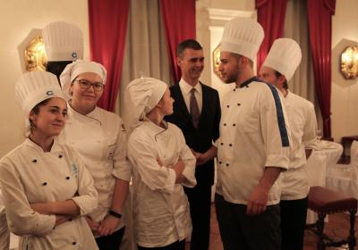 Photo Gallery Home Photo Gallery CUOCHI E STUDENTI DEL C.F.P. RAPPRESENTANO L’ITALIA A RIGA CUOCHI E STUDENTI DEL C.F.P. RAPPRESENTANO L’ITALIA A RIGA Dal 20 al 25 novembre il C.F.P. di Como, con una numerosa delegazione rappresentativa delle Istituzioni politiche della Provincia di Como, è stato protagonista a Riga della Settimana della Cucina Italiana nel mondo, iniziativa promossa dal Ministero degli Esteri e dalla Farnesina. Il Masterclass di Cucina italiana presso la Riga Technical School of Tourism and Creative Industry, da anni partner del CFP, ha aperto il programma della settimana. Guidati dallo Chef Sergio Mauri e da altri Chef del CFP di Como e del CFPA di Casargo, gli studenti hanno presentato a docenti e alunni lettoni la preparazione di alcuni piatti tipici della cucina lombarda. Al Palazzo di Rundale, la Versailles dei Baltici, insieme all’Ambasciatore italiano, ospiti illustri del mondo politico e diplomatico lettone e internazionale; otto ambasciatori esteri (Azerbaijan, Emirati Arabi, Giappone, Moldavia, Russia, Svizzera, Turchia, Ucraina), il Segretario del Ministero degli Interni e diversi altri rappresentati politici. Cuochi e allievi del CFP hanno preparato, dopo una degustazione di salumi, formaggi e vini delle terre lariane, un menu tipicamente lombardo per concludere con il “Dolce del Palazzo di Rundale”. La seconda cena di gala, presso il Ozo Golfa Klub di Riga, ha offerto un menu italiano, realizzato dal CFP di Como in collaborazione con il CFPA di Casargo e gli Istituti Alberghieri di Erice (TP) e Striano (NA). A questo evento oltre sessanti invitati in particolare politici lettoni. Tra i numerosi ospiti i Ministri della Salute, della Cultura, della Giustizia, la Vice Presidente del Parlamento lettone, diversi Segretari Parlamentari oltre che il Direttore di un importante Istituto per la sicurezza alimentare ambientale. Qui di seguito alcuni scatti dell’Evento Torna indietro Condividi Su E-mailFacebookTwitterLinkedIn Gallery