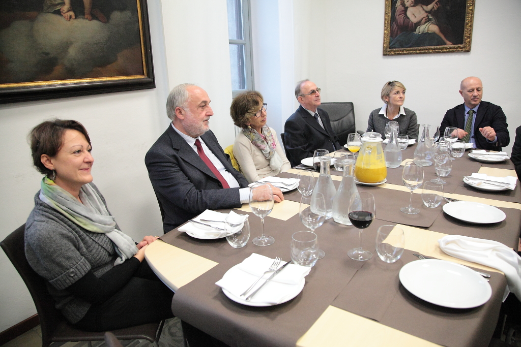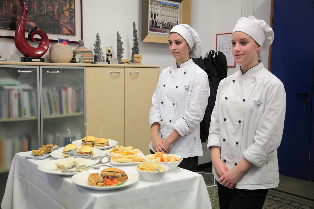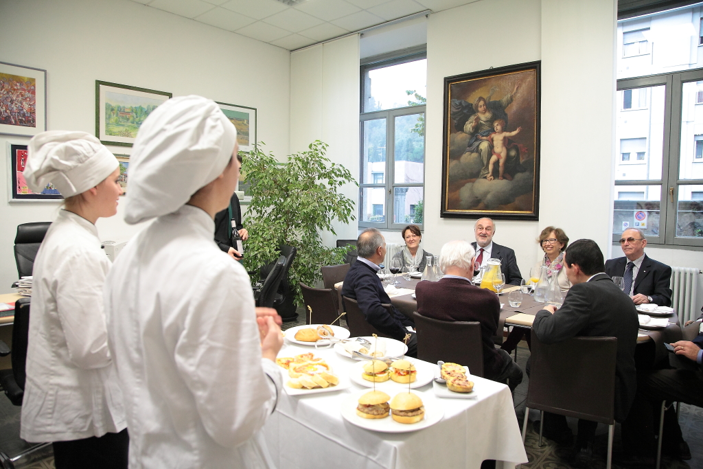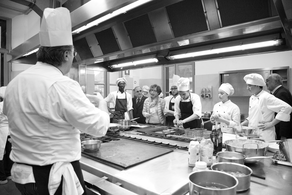 Photo Gallery Home Photo Gallery Delegazione Provinciale in visita al CFP Delegazione Provinciale in visita al CFP In data 5 novembre 2014, una Delegazione Provinciale ha visitato il CFP di Como, guidata dal nuovo Presidente della Provincia di Como (Maria Rita Livio). Gli ospiti hanno avuto modo di guardare da vicino la realtà della Formazione Professionale nella Provincia di Como, ed in particolare il CFP, fiore all'occhiello della Formazione Professionale Lombarda. Gli ospiti sono arrivati al mattino, ed hanno visitato i laboratori Multimediali, Linguistici e le Aule 2.0 del Centro. In seguito hanno potuto osservare la didattica innovativa del Centro ed in particolare dei Laboratori di Estetica, Acconciatura e Cucina/Pasticceria. Verso le 13:30 gli ospiti hanno degustato le portate del menù "Fast Food alternativo", preparato dagli allievi delle quarte annualità di Cucina, coordinati dallo Chef Tansini Massimo. Qui di seguito alcuni scatti dell'evento Torna indietro Condividi Su E-mailFacebookTwitterLinkedIn Gallery