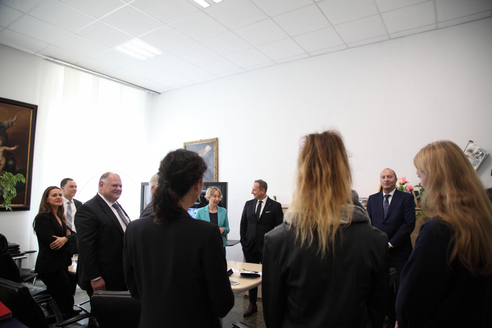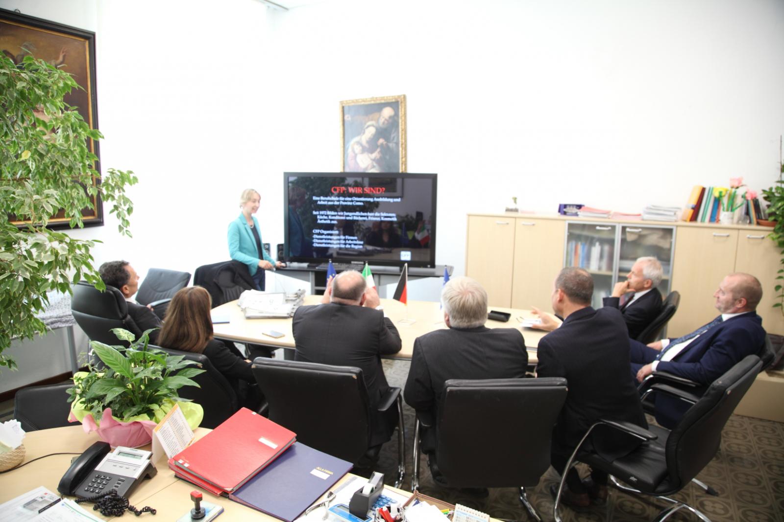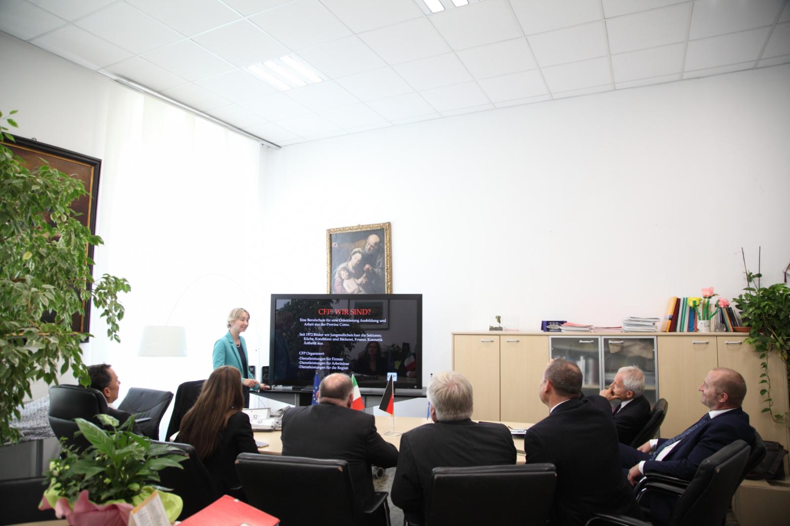 Photo Gallery Home Photo Gallery DELEGAZIONE TEDESCA in VISITA AL CFP DELEGAZIONE TEDESCA in VISITA AL CFP In ambito internazionale il C.F.P. di Como, che da anni ricopre un ruolo rilevante come Ente promotore dei Programmi Europeri, ha avuto l'onore di ospitare presso la propria sede due delegazioni dalla Germania nel quadro del programma Erasmus+. Dal 10 al 12 ottobre è stata presente la delegazione di Stoccorda del Landesinnungsverband für das Württembergische Bäckerhandwerk eV., associazione dei panificatori e pasticceri del Baden Wurttemberg, partner che in questi due anni ha garantito e rafforzato il rapporto di collaborazione del C.F.P. con Stoccarda. Sono stati presenti il direttore generale, il direttore della scuola di panificazione di Stoccarda e la coordinatrice regionale dei progetti didattici. Presenti come ospiti anche due rappresentanti della Hoppenlau Schule, nuovo partner di progetto, con sede sempre a Stoccarda e in possesso della carta della mobilità Erasmus+, che opera negli stessi settori del nostro Centro di Formazione Professionale. Con questa scuola si sta avviando una collaborazione nell'ottica della reciprocità. Torna indietro Condividi Su E-mailFacebookTwitterLinkedIn Gallery