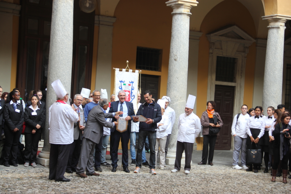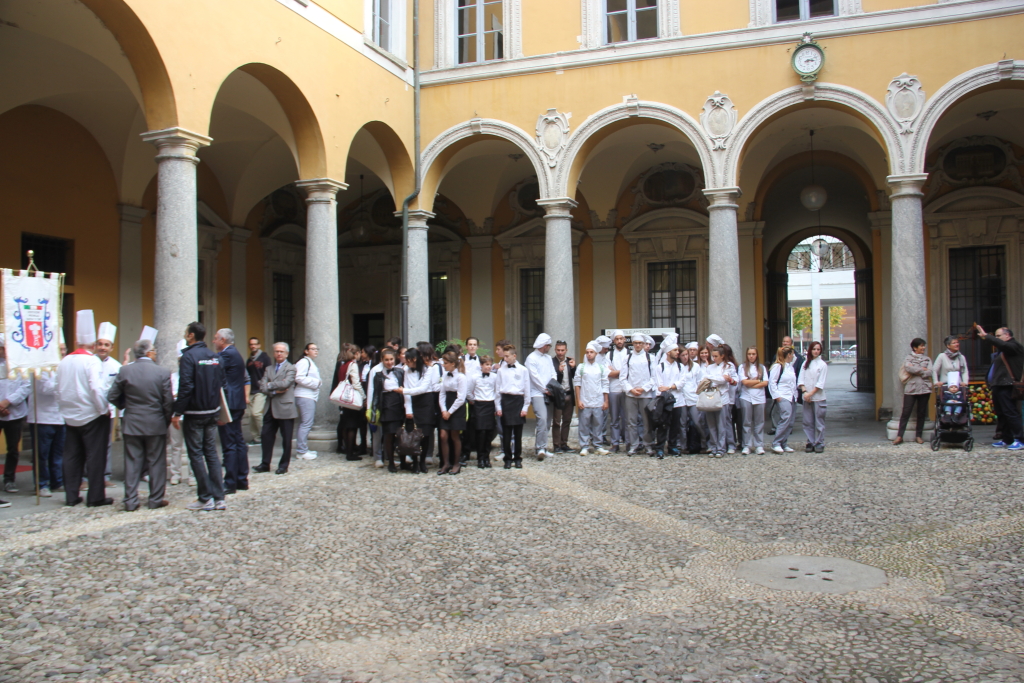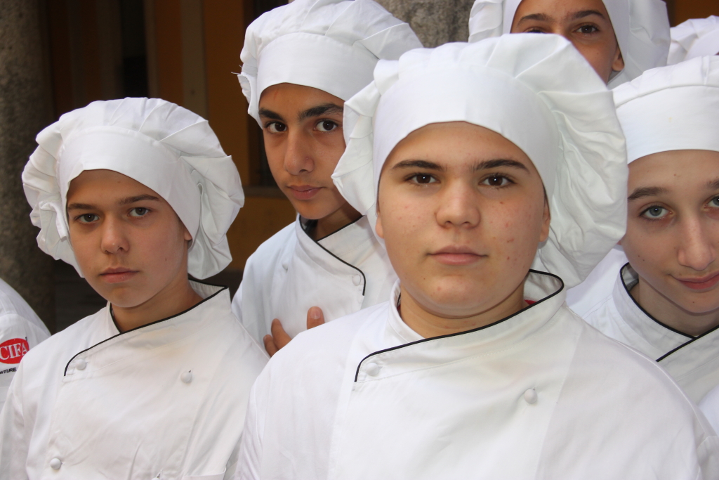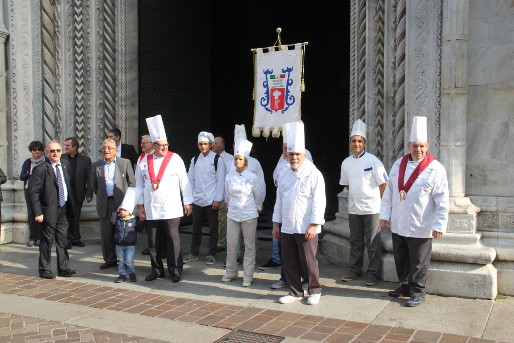 Photo Gallery Home Photo Gallery FESTA DEI CUOCHI 2015 - Prime Annualità FESTA DEI CUOCHI 2015 - Prime Annualità In data 12 ottobre 2015, in occasione della commemorazione di San Caracciolo - Santo Patrono dei Cuochi, gli allievi delle classi 1A e 1B del Settore Ristorativo/Alberghiero - Preparatore Pasti (Aiuto Cuoco) - hanno sfilato per le strade di Como, rigorosamente in divisa, per partecipare alla cerimonia di benedizione da parte di Don Mario Borella e Padre Ottoni della FIC. Gli allievi hanno iniziato la loro passeggiata dal Municipio di Como, dove ad attenderli hanno trovato la Banda del Corpo "La Trionfale" di Orsenigo e parte dei membri del Consiglio Direttivo dell'Associazione Provinciale Cuochi di Como, tra cui il Vicario Francesco Capano e il Vice Presidente Sergio Mauri. Dopo il saluto alle Autorità cittadine, ed in particolare al Sindaco di Como Mario Lucini, gli allievi hanno sfilato fino in piazza Duomo, partecipando con grande emozione alla Santa Messa celebrata dal Don Mario Borella. Prima della manifestazione è stata preparato a Palazzo Cernezzi un Convegno sull'importanza e sulla conoscenza dei prodotti del territorio (Slow-food), sulla Permacultura e sulla professione del cuoco. All'evento di apertura hanno partecipato diversi chef di grandi realtà presenti sul territorio, assieme a quelli dell'Associazione Provinciale Cuochi di Como. Al termine della manifestazione un gruppo di allievi di Sala Bar, in collaborazione con la brigata di Cucina, ha predisposto un ricco Buffet preparato per gli ospiti della manifestazione al Teatro Sociale di Como. Qui di seguito alcune immagini dell'evento Torna indietro Condividi Su E-mailFacebookTwitterLinkedIn Gallery
