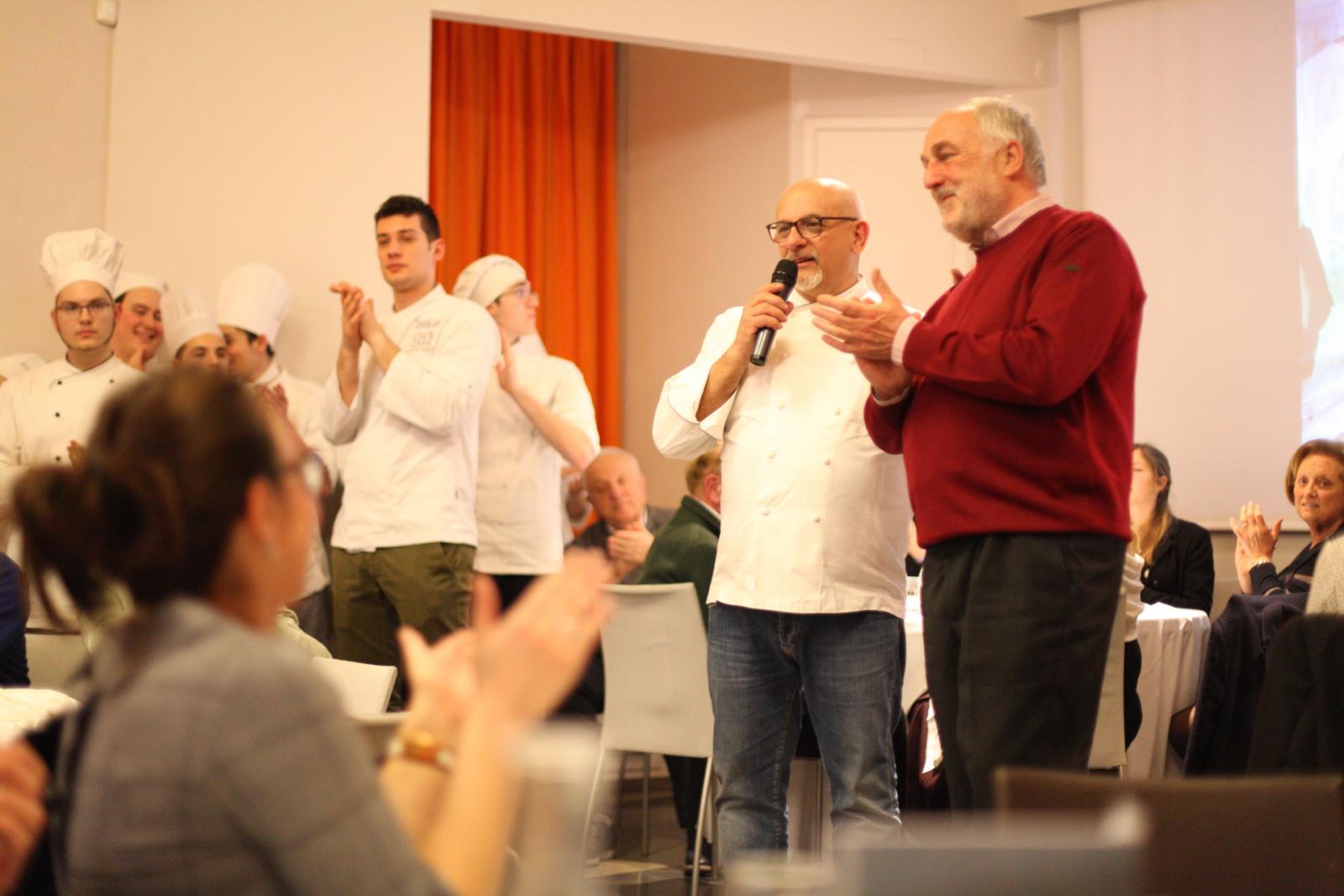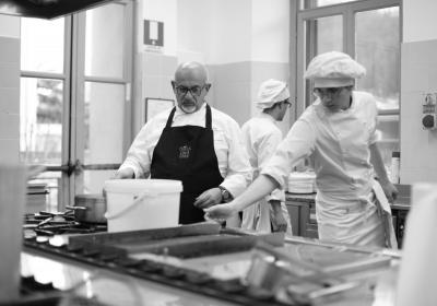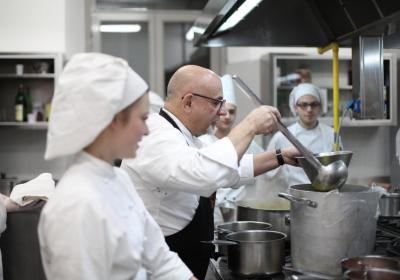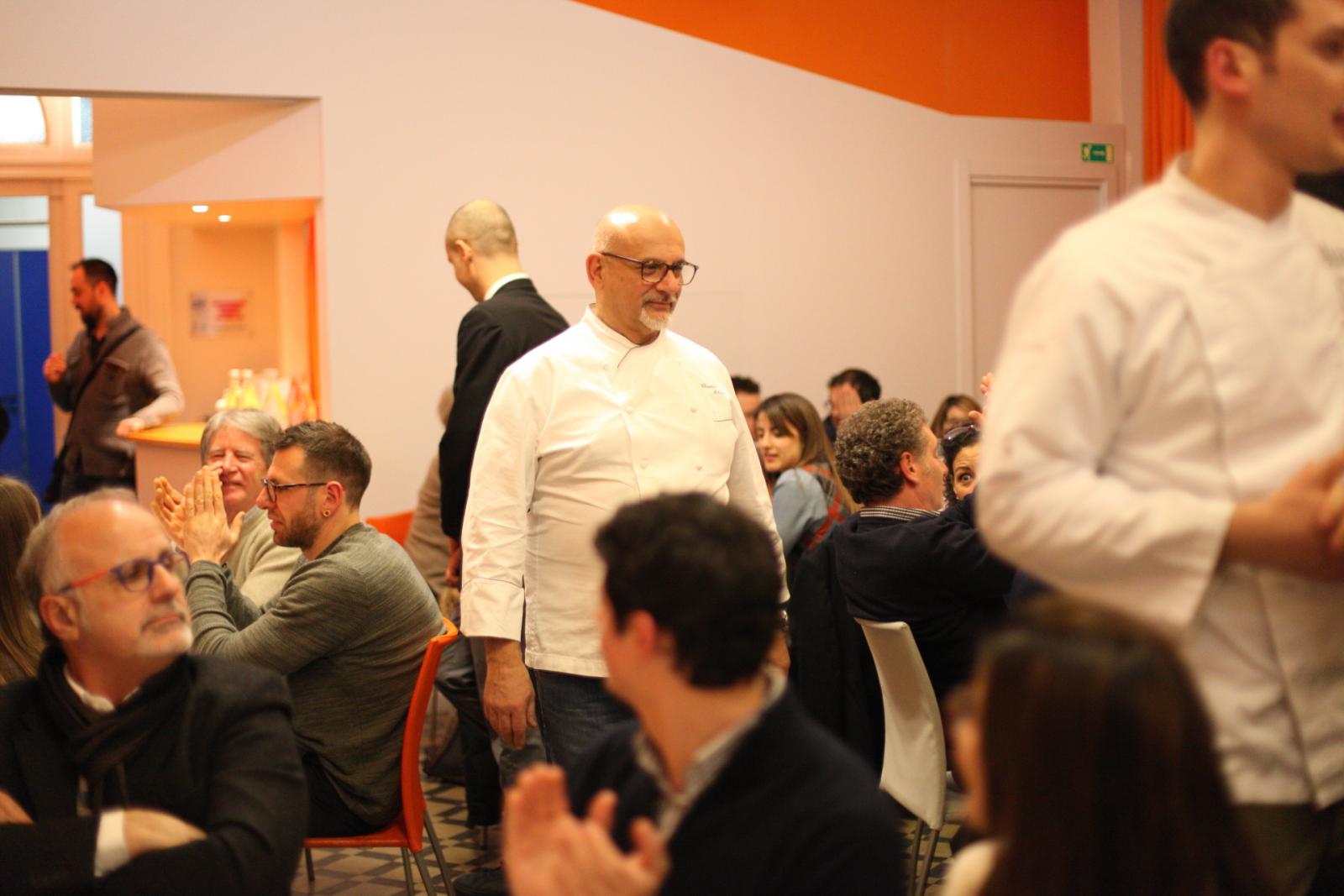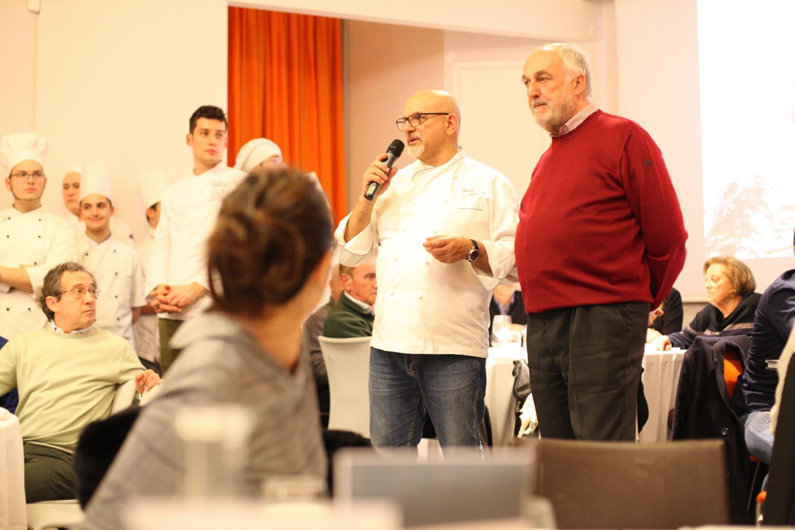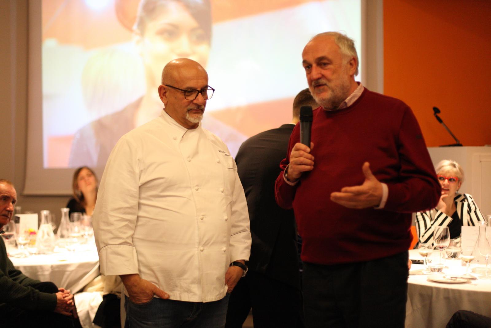 Photo Gallery Home Photo Gallery GRANDI CHEF AL CFP: CLAUDIO SADLER GRANDI CHEF AL CFP: CLAUDIO SADLER Un importante serata ha visto protagonista il CFP di Como in data 8 marzo per l'appuntamento annuale "La Rassegna dei Grandi Chef", con ospite d'eccezione il cuoco Claudio Sadler, stellato Michelin, del "Ristorante Sadler" di Milano. Sadler, uno degli Chef più conosciuti in Italia, propone una cucina creativa e raffinata abbinando una razionale applicazione delle regole ad una esemplare creatività, senza dimenticare un singolare amore per l’innovazione. La stessa innovazione si ritrova anche nelle strumentazioni utilizzate in cucina, sempre all’avanguardia e in continua modernizzazione. La serata propone un menù degustazione – nella piena tradizione della ristorazione top gourmet – indicata per ospiti esigenti e raffinati intenditori. Il Menu, di gran classe, parte da una Tatin di carciofi mozzarella all'olio d'acciuga, prosegue con Fregola sarda allo zafferano ragù di polpo e tocco di peperoncino e - come secondo piatto Filetto di vitello con salsa di funghi trombetta patate nocciolate Per concludere lo Chef propone un Semifreddo caffè bianco cremoso alla fava tonka e gel al rhum. Ciascuna delle quattro portate è accompagnata da un diverso vino in abbinamento, al fine di esaltare i sapori dei singoli piatti. Il Centro di Formazione Professionale di Como – una realtà che opera ormai da più di quaranta anni nella Formazione Professionale (Settore Ristorativo Alberghiero e del Benessere) può contare anche sulla collaborazione dei suoi allievi più meritevoli appartenenti alle Quarte Annualità di Cucina e Sala Ristorante, che hanno lavorato con lo Chef in cucina e con la sala per il Servizio per i numerosi ospiti, che in questa edizione hanno superato le ottanta persone. Gli allievi hanno accompagnato la serata che ha consentito loro di crescere dal punto di vista professionale e personale completando l’ideale acquisizione di avanzate competenze tecnico professionali. Al termine della serata, Direzione e ragazzi del CFP hanno conseganto un libro fotografico di Como: "Ville e giardini del Lago", omaggiando la cena con un piccolo regalo per la professionalità e la disponibilità dimostrata anche nel pomeriggio, quando lo Chef ha tenuto una breve conferenza sul Settore della Ristorazione e sull'Alta Ristorazione nel territorio Lombardo. Sadler è stato inoltre uno dei fondatori dell’Associazione “Jeunes Restaurateurs d’Europe”, e svolge consulenza gastronomica professionale per diverse aziende e per riviste del settore. È stato presidente dei ristoratori milanesi e compare tra i ristoranti nella prestigiosa guida dell’associazione “Le Soste”, di cui dal marzo 2012 è il presidente. Apre il suo primo locale a Pavia nel 1982, quella che fu la “Locanda Vecchia Pavia” e in contemporanea, durante i periodi estivi, gestisce il ristorante Vela Blu a Portisco in Costa Smeralda. Nel 1986 aprirà “Osteria di Porta Cicca” di Ripa di Porta Ticinese a Milano, dove, nel 1991 verrà insignito della sua prima stella Michelin. Contemporaneamente all’attività del ristorante si dedica all’insegnamento e nel 2002 crea “Q.B. centro di cucina enogastronomico” dove insieme ad altri validi insegnanti organizza corsi per professionisti e appassionati. Nel 2008 Sadler approda a Pechino ed in piazza Tien’anmen apre il suo ristorante coadiuvato da due validi collaboratori. Dopo anni di brillante carriera sui Navigli milanesi, Sadler si trasferisce in via Ascanio Sforza 77, a pochi numeri civici di distanza dal precedente locale. Il suo nuovo ristorante ha aperto nel settembre 2007, affiancato da un secondo locale, Chic’n Quick, per una ristorazione più informale e veloce, ma sempre nello stile del grande chef, e che, per le occasioni, accoglie banchetti ed eventi. Qui di seguito gli scatti più belli dell'evento Torna indietro Condividi Su E-mailFacebookTwitterLinkedIn Gallery