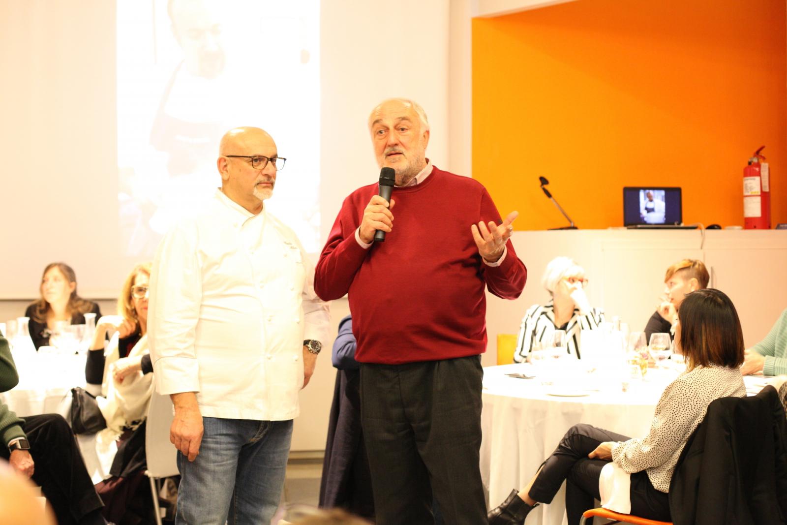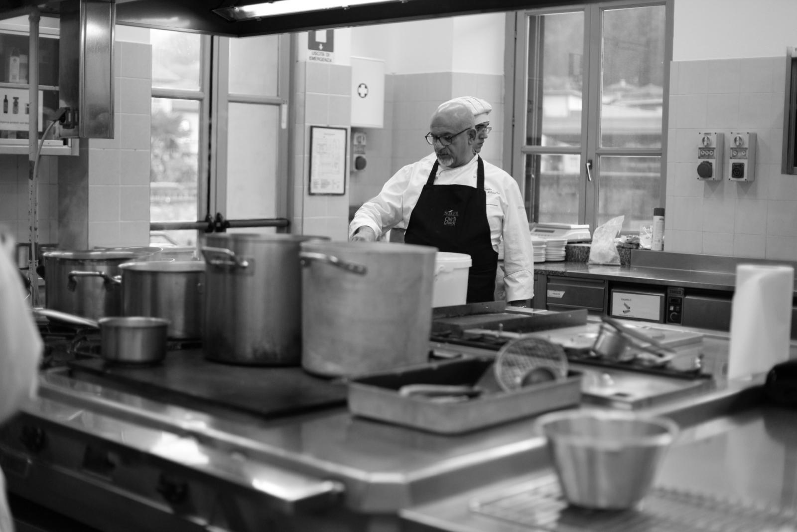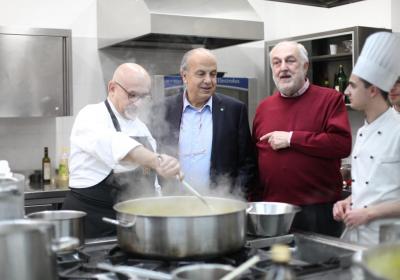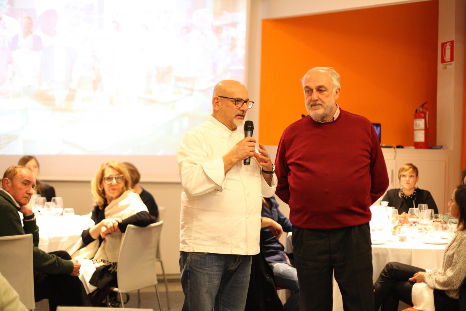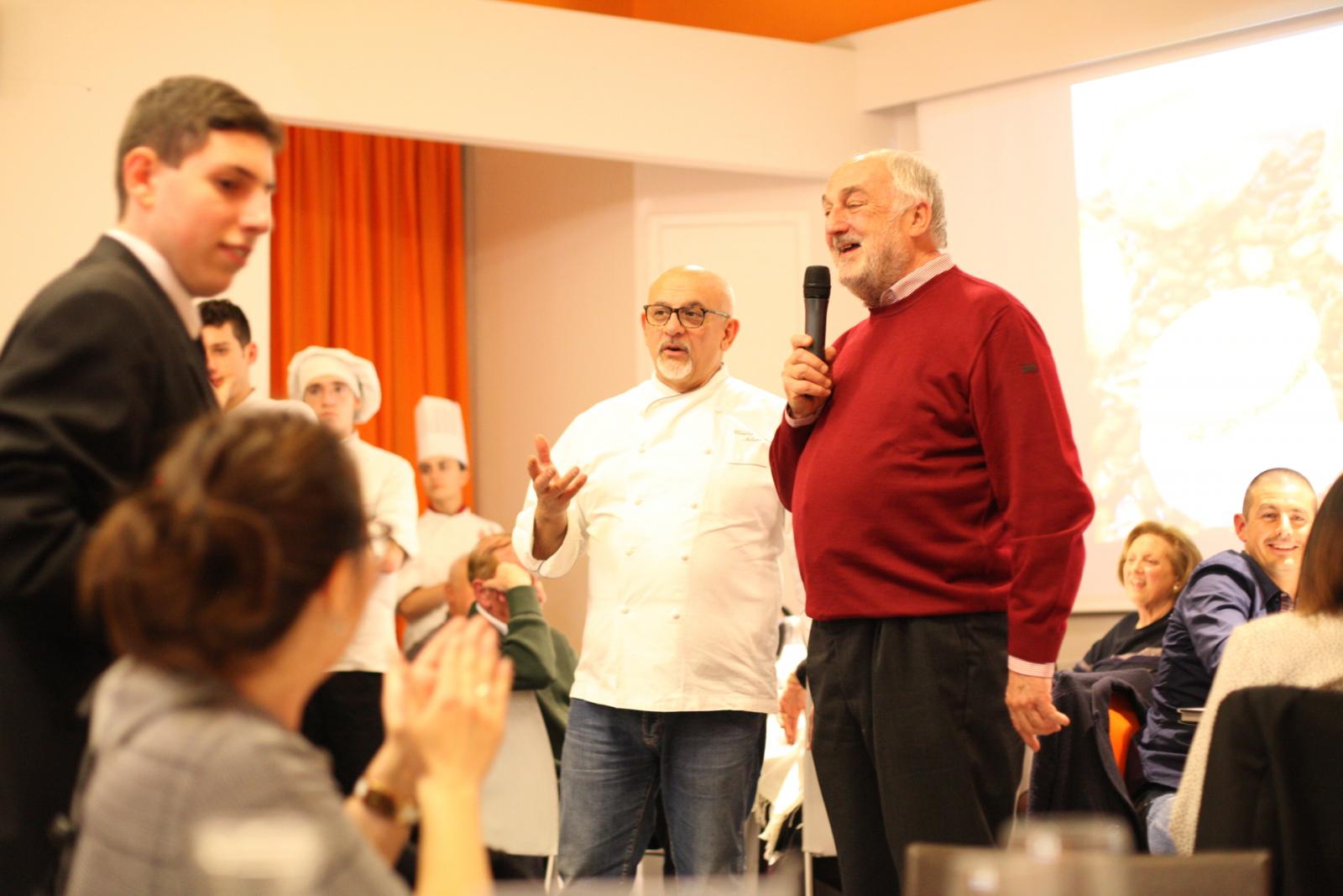 Photo Gallery Home Photo Gallery GRANDI CHEF AL CFP: CLAUDIO SADLER GRANDI CHEF AL CFP: CLAUDIO SADLER Un importante serata ha visto protagonista il CFP di Como in data 8 marzo per l'appuntamento annuale "La Rassegna dei Grandi Chef", con ospite d'eccezione il cuoco Claudio Sadler, stellato Michelin, del "Ristorante Sadler" di Milano. Sadler, uno degli Chef più conosciuti in Italia, propone una cucina creativa e raffinata abbinando una razionale applicazione delle regole ad una esemplare creatività, senza dimenticare un singolare amore per l’innovazione. La stessa innovazione si ritrova anche nelle strumentazioni utilizzate in cucina, sempre all’avanguardia e in continua modernizzazione. La serata propone un menù degustazione – nella piena tradizione della ristorazione top gourmet – indicata per ospiti esigenti e raffinati intenditori. Il Menu, di gran classe, parte da una Tatin di carciofi mozzarella all'olio d'acciuga, prosegue con Fregola sarda allo zafferano ragù di polpo e tocco di peperoncino e - come secondo piatto Filetto di vitello con salsa di funghi trombetta patate nocciolate Per concludere lo Chef propone un Semifreddo caffè bianco cremoso alla fava tonka e gel al rhum. Ciascuna delle quattro portate è accompagnata da un diverso vino in abbinamento, al fine di esaltare i sapori dei singoli piatti. Il Centro di Formazione Professionale di Como – una realtà che opera ormai da più di quaranta anni nella Formazione Professionale (Settore Ristorativo Alberghiero e del Benessere) può contare anche sulla collaborazione dei suoi allievi più meritevoli appartenenti alle Quarte Annualità di Cucina e Sala Ristorante, che hanno lavorato con lo Chef in cucina e con la sala per il Servizio per i numerosi ospiti, che in questa edizione hanno superato le ottanta persone. Gli allievi hanno accompagnato la serata che ha consentito loro di crescere dal punto di vista professionale e personale completando l’ideale acquisizione di avanzate competenze tecnico professionali. Al termine della serata, Direzione e ragazzi del CFP hanno conseganto un libro fotografico di Como: "Ville e giardini del Lago", omaggiando la cena con un piccolo regalo per la professionalità e la disponibilità dimostrata anche nel pomeriggio, quando lo Chef ha tenuto una breve conferenza sul Settore della Ristorazione e sull'Alta Ristorazione nel territorio Lombardo. Sadler è stato inoltre uno dei fondatori dell’Associazione “Jeunes Restaurateurs d’Europe”, e svolge consulenza gastronomica professionale per diverse aziende e per riviste del settore. È stato presidente dei ristoratori milanesi e compare tra i ristoranti nella prestigiosa guida dell’associazione “Le Soste”, di cui dal marzo 2012 è il presidente. Apre il suo primo locale a Pavia nel 1982, quella che fu la “Locanda Vecchia Pavia” e in contemporanea, durante i periodi estivi, gestisce il ristorante Vela Blu a Portisco in Costa Smeralda. Nel 1986 aprirà “Osteria di Porta Cicca” di Ripa di Porta Ticinese a Milano, dove, nel 1991 verrà insignito della sua prima stella Michelin. Contemporaneamente all’attività del ristorante si dedica all’insegnamento e nel 2002 crea “Q.B. centro di cucina enogastronomico” dove insieme ad altri validi insegnanti organizza corsi per professionisti e appassionati. Nel 2008 Sadler approda a Pechino ed in piazza Tien’anmen apre il suo ristorante coadiuvato da due validi collaboratori. Dopo anni di brillante carriera sui Navigli milanesi, Sadler si trasferisce in via Ascanio Sforza 77, a pochi numeri civici di distanza dal precedente locale. Il suo nuovo ristorante ha aperto nel settembre 2007, affiancato da un secondo locale, Chic’n Quick, per una ristorazione più informale e veloce, ma sempre nello stile del grande chef, e che, per le occasioni, accoglie banchetti ed eventi. Qui di seguito gli scatti più belli dell'evento Torna indietro Condividi Su E-mailFacebookTwitterLinkedIn Gallery