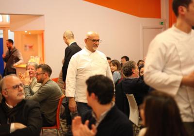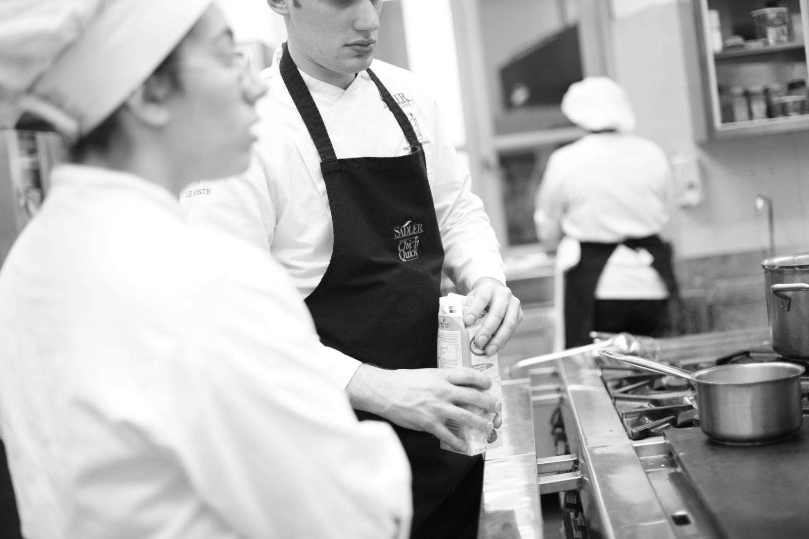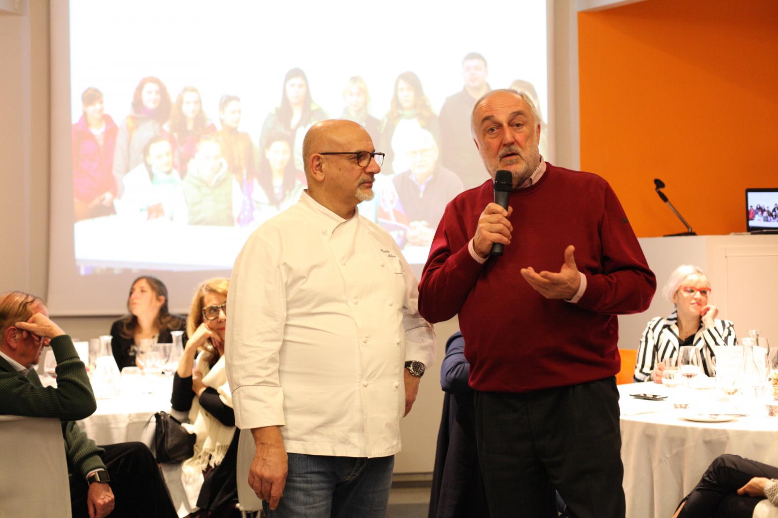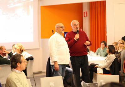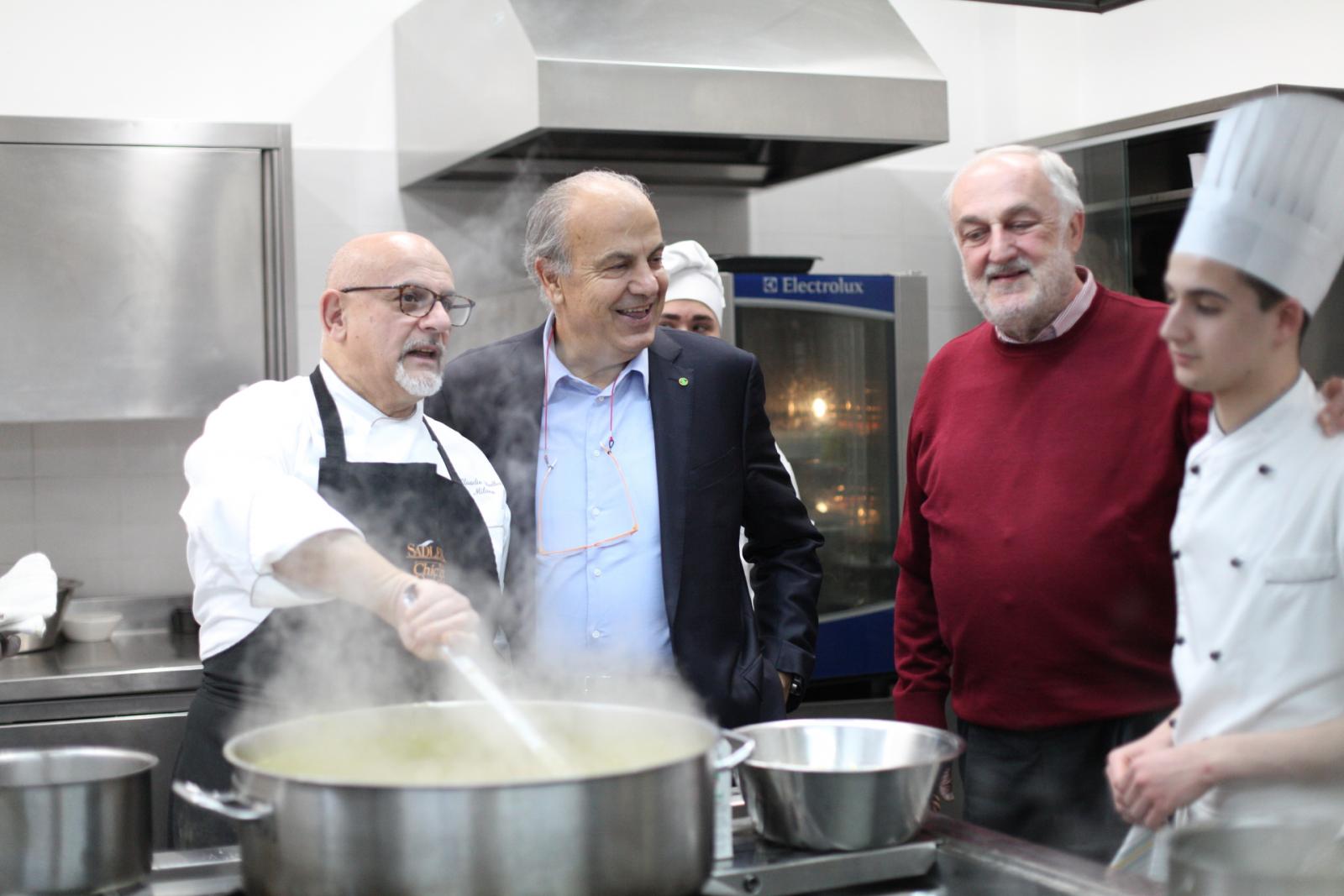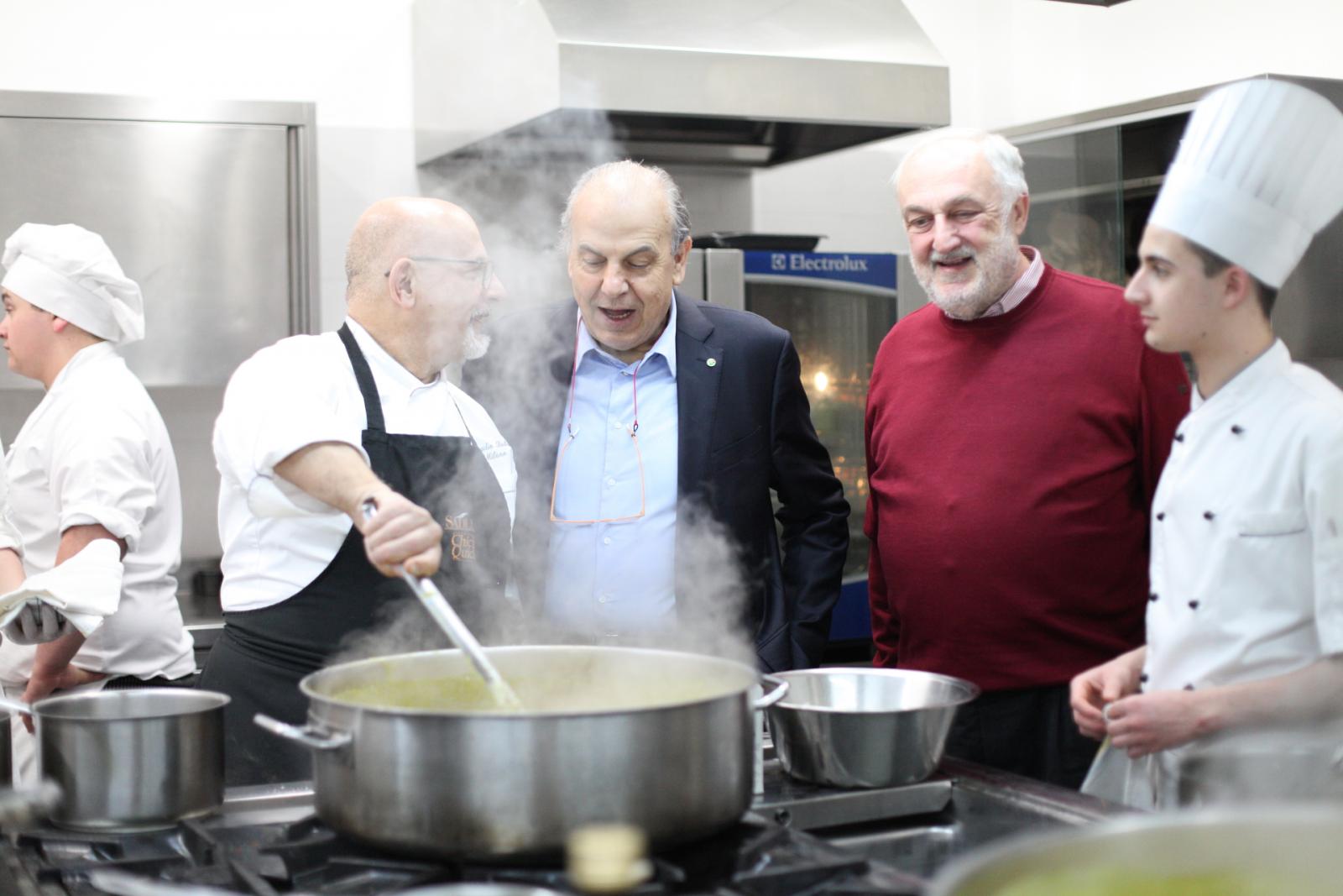 Photo Gallery Home Photo Gallery GRANDI CHEF AL CFP: CLAUDIO SADLER GRANDI CHEF AL CFP: CLAUDIO SADLER Un importante serata ha visto protagonista il CFP di Como in data 8 marzo per l'appuntamento annuale "La Rassegna dei Grandi Chef", con ospite d'eccezione il cuoco Claudio Sadler, stellato Michelin, del "Ristorante Sadler" di Milano. Sadler, uno degli Chef più conosciuti in Italia, propone una cucina creativa e raffinata abbinando una razionale applicazione delle regole ad una esemplare creatività, senza dimenticare un singolare amore per l’innovazione. La stessa innovazione si ritrova anche nelle strumentazioni utilizzate in cucina, sempre all’avanguardia e in continua modernizzazione. La serata propone un menù degustazione – nella piena tradizione della ristorazione top gourmet – indicata per ospiti esigenti e raffinati intenditori. Il Menu, di gran classe, parte da una Tatin di carciofi mozzarella all'olio d'acciuga, prosegue con Fregola sarda allo zafferano ragù di polpo e tocco di peperoncino e - come secondo piatto Filetto di vitello con salsa di funghi trombetta patate nocciolate Per concludere lo Chef propone un Semifreddo caffè bianco cremoso alla fava tonka e gel al rhum. Ciascuna delle quattro portate è accompagnata da un diverso vino in abbinamento, al fine di esaltare i sapori dei singoli piatti. Il Centro di Formazione Professionale di Como – una realtà che opera ormai da più di quaranta anni nella Formazione Professionale (Settore Ristorativo Alberghiero e del Benessere) può contare anche sulla collaborazione dei suoi allievi più meritevoli appartenenti alle Quarte Annualità di Cucina e Sala Ristorante, che hanno lavorato con lo Chef in cucina e con la sala per il Servizio per i numerosi ospiti, che in questa edizione hanno superato le ottanta persone. Gli allievi hanno accompagnato la serata che ha consentito loro di crescere dal punto di vista professionale e personale completando l’ideale acquisizione di avanzate competenze tecnico professionali. Al termine della serata, Direzione e ragazzi del CFP hanno conseganto un libro fotografico di Como: "Ville e giardini del Lago", omaggiando la cena con un piccolo regalo per la professionalità e la disponibilità dimostrata anche nel pomeriggio, quando lo Chef ha tenuto una breve conferenza sul Settore della Ristorazione e sull'Alta Ristorazione nel territorio Lombardo. Sadler è stato inoltre uno dei fondatori dell’Associazione “Jeunes Restaurateurs d’Europe”, e svolge consulenza gastronomica professionale per diverse aziende e per riviste del settore. È stato presidente dei ristoratori milanesi e compare tra i ristoranti nella prestigiosa guida dell’associazione “Le Soste”, di cui dal marzo 2012 è il presidente. Apre il suo primo locale a Pavia nel 1982, quella che fu la “Locanda Vecchia Pavia” e in contemporanea, durante i periodi estivi, gestisce il ristorante Vela Blu a Portisco in Costa Smeralda. Nel 1986 aprirà “Osteria di Porta Cicca” di Ripa di Porta Ticinese a Milano, dove, nel 1991 verrà insignito della sua prima stella Michelin. Contemporaneamente all’attività del ristorante si dedica all’insegnamento e nel 2002 crea “Q.B. centro di cucina enogastronomico” dove insieme ad altri validi insegnanti organizza corsi per professionisti e appassionati. Nel 2008 Sadler approda a Pechino ed in piazza Tien’anmen apre il suo ristorante coadiuvato da due validi collaboratori. Dopo anni di brillante carriera sui Navigli milanesi, Sadler si trasferisce in via Ascanio Sforza 77, a pochi numeri civici di distanza dal precedente locale. Il suo nuovo ristorante ha aperto nel settembre 2007, affiancato da un secondo locale, Chic’n Quick, per una ristorazione più informale e veloce, ma sempre nello stile del grande chef, e che, per le occasioni, accoglie banchetti ed eventi. Qui di seguito gli scatti più belli dell'evento Torna indietro Condividi Su E-mailFacebookTwitterLinkedIn Gallery