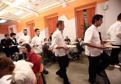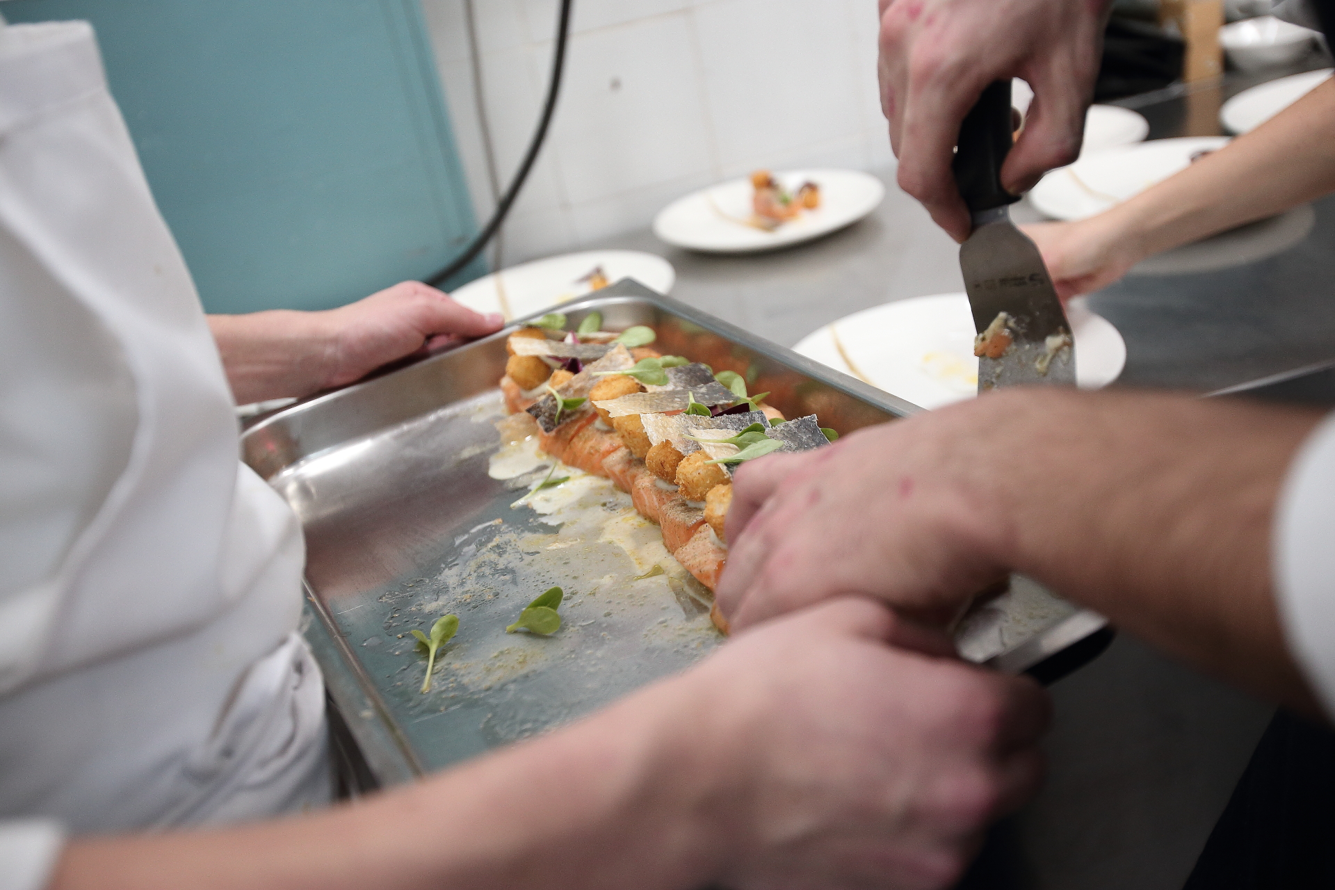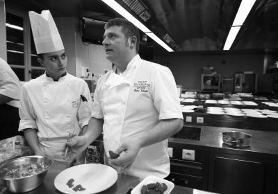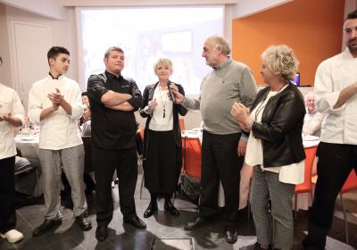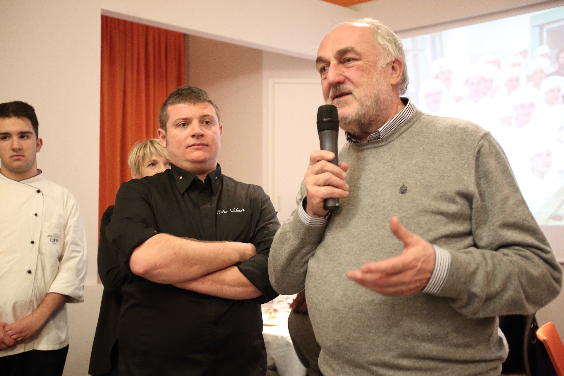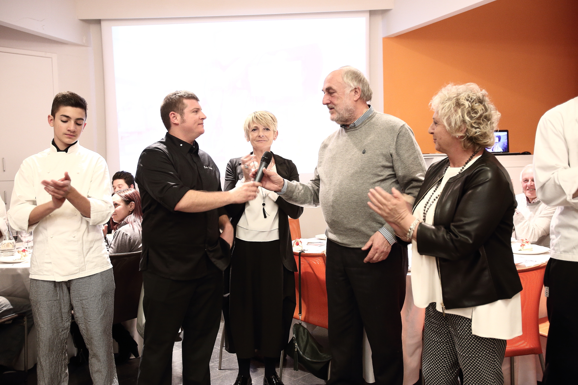 Photo Gallery Home Photo Gallery GRANDI CHEF AL CFP: PIETRO VOLONTÉ GRANDI CHEF AL CFP: PIETRO VOLONTÉ Lo Chef stellato Pietro Volontè (Althoff Hôtel Villa Belrose, Saint-Tropez) è stato protagonista della cena d'Autore svolta in data Sabato 2 dicembre presso la Sala Ristorante del CFP di COMO. Classe ‘85, Pietro Volontè - ex allievo del CFP di Monte Olimpino - è tornato dopo numerose ed importanti esperienze di rango internazionale per cucinare piatti ricercati e all'avanguardia nella scuola che lo ha visto crescere e muovere i primi passi della Sua prestigiosa carriera. Iniziando “Da Candida” a Campione d’Italia (Chef Bernard Fournier), all'Hotel Eden a Roma, al Badrutt’s Palace Hotel in Svizzera. Ha avuto modo di seguire lo Chef Enrico Derflingher nella cornice di Saint Moritz. Passa poi dal Cipriani Restaurant a Londra, al Gordon Ramsay di Londra e poi a quello di Parigi, dove diventa secondo chef. Il suo stile - sobrio ed elegante- è legato a tradizione e semplicità. Oggi ricopre la posizione di chef all‘Althoff Hotel Villa Belrose, lussuoso Relais & Chateaux in Costa Azzurra ed è insignito di una STELLA MICHELIN. Il Centro di Formazione Professionale di Como ha aperto proprio con lo Chef Volontè la "Rassegna dei Grandi Chef Stellati": una carrellata di appuntamenti che vedono protagonisti Chef e piatti di altissimo livello e ricerca: il menù proposto ha visto un "Amouche Bouche" di benvenuto, Salmone alla camomilla con Purè di finocchi, rapa svedese e radicchio trevigiano come antipasto, Risotto alle bietole, lumache e taleggio come primo piatto e Lombo di vitello cotto al burro di salvia, verza stufata, scorzonera, topinambur e salsa Madeira. Interessante il dolce: Monte Bianco, croccante di cioccolato, gelato di castagne e whisky. Lo Chef ha cucinato i piatti del menu con la Brigata delle classi terze di cucina del Centro e coordinando con i docenti di sala e gli allievi delle seconde annualità il servizio. Nello Staff di Pietro per questa serata, anche l'amico e collega Paolo Longoni - cuoco del ristorante "BellaVista" di Veleso (CO), peraltro docente di cucina deli corsi DDIF del CFP. I due Chef hanno condiviso assieme l'esperienza al Restaurant Gordon Ramsey di Londra. Più di 60 ospiti presenti alla Cena hanno gradito il Menu, strutturato con abbinamenti interessanti e materie prime di primissimo livello. Tra gli ospiti anche la Consigliera Regionale Daniela Maroni (Regione Lombardia), presente al tavolo che ha premiato personalemente lo Chef con il Libro del Lago di Como (Pifferi Editore), assieme al Direttore ed al Vice-Direttore del Centro. Grande l'emozione degli allievi e delle allieve impegnate nella serata che ha rappresentato un importante momento didattico e formativo per gli studenti coinvolti. Qui di seguito la PHOTOGALLERY con gli scatti istituzionali e di reportage dell'evento Torna indietro Condividi Su E-mailFacebookTwitterLinkedIn Gallery