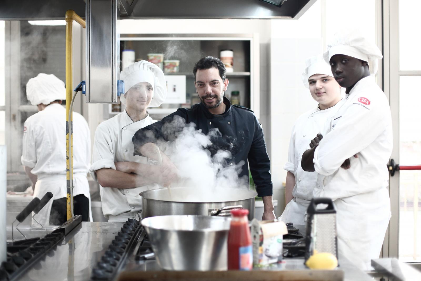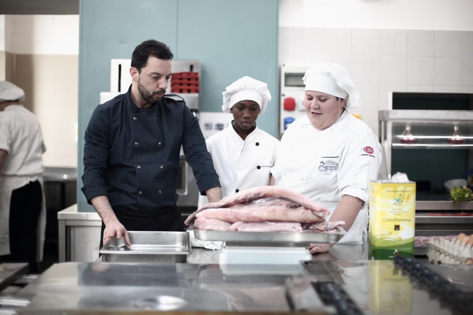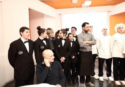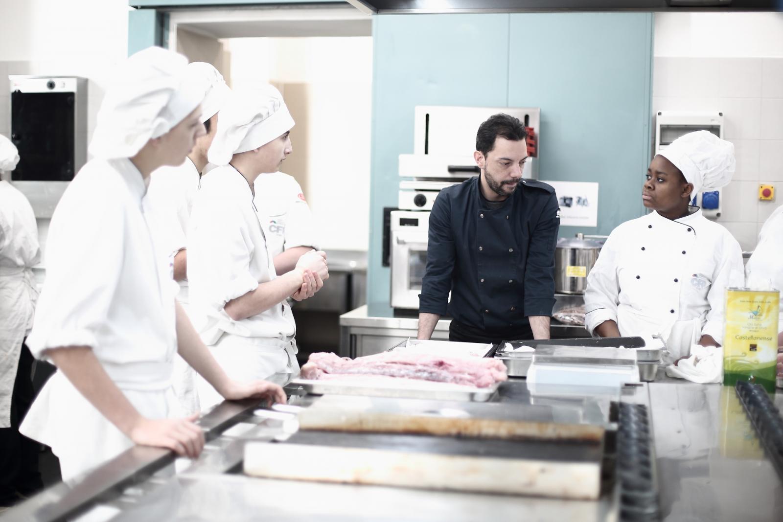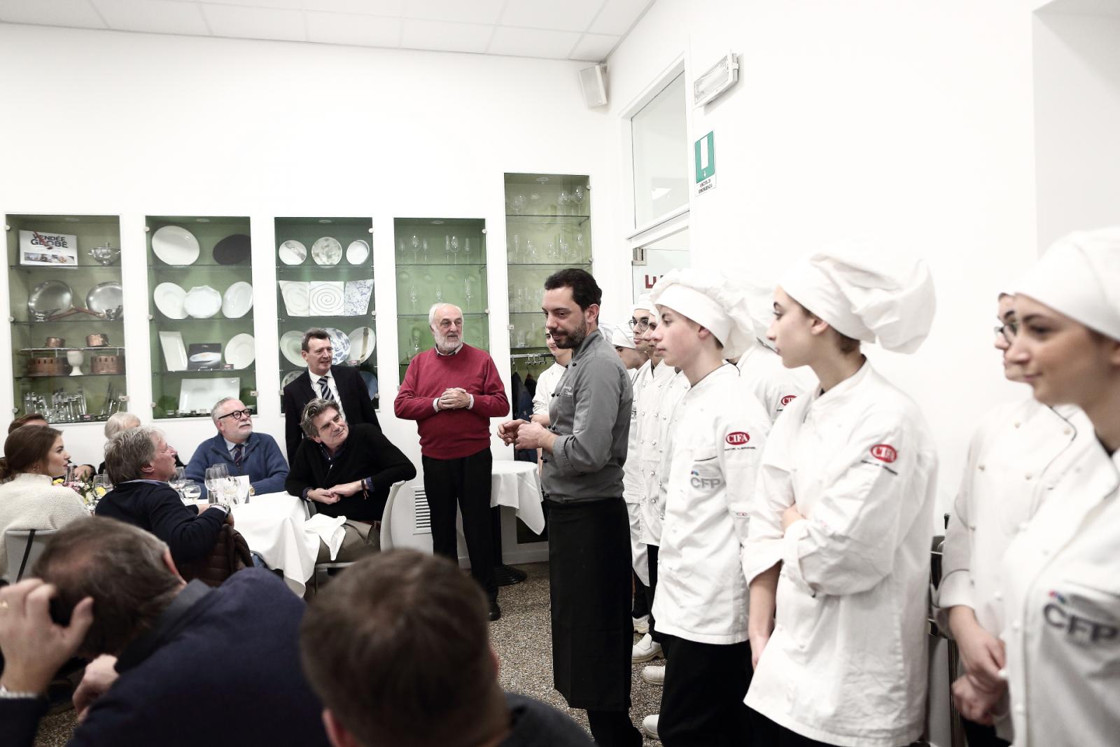 Photo Gallery Home Photo Gallery GRANDI CHEF AL CFP: VINCENZO CAROLA GRANDI CHEF AL CFP: VINCENZO CAROLA Grandi nomi della cucina italiana al CFP di Como. Protagonisti gli studenti dei corsi di Cucina e Sala del Centro di Formazione Professionale che, nelle giornate del 30 e 31 gennaio hanno affiancato lo chef Cilentino Vincenzo Carola, ospite a Como. Il menu 360° di Ricciola racchiude in sè tutto lo spirito e l'anima del SUD Italia, dove lo spreco non è contemplato e la "materia prima" è rispettata, lavorata ed esaltata nella sua essenza. Lo Chef Cilentino, al terzo appuntamento annuale come ospite a Como, è titolare dello storico e rinomato ristorante "Vecchio Saracino" di Agropoli. La famiglia Carola, ormai da quattro generazioni porta avanti la tradizione del pesce di mare in una zona che è patrimonio UNESCO (Vallo di Diano). Piatti semplici ma carichi di gusto che raccontano la cucina cilentina influenzata dalla tradizione saracena. Il percorso di degustazione è iniziato una aperitivo di benvenuto: Polpette di patate, Alici di Menaica e pappacelle, Focaccia al limoncello con patè di fegato di Ricciola. Antipasto a base di Crudo di Ricciola, fagioli di Controne, cumino e limone come, primo piatto con Conchiglie di grano duro, guancia e ventresca di Ricciola, uvetta, pinoli e porri caramellati al Lucano e per finire Trancio di Ricciola, solera di aceto balsamico "1920", olive affumicate e rosmarino. Interessante il dolce: Croccante di amaretti in semifreddo, sciroppo di agrumi e zenzero. La cena è stata accompagnata da Vini del SUD Italia, rispettando il territorio e la tradizione. Gli ospiti, sempre numerosi in questi appuntamenti hanno gradito la Cena e ascoltato con piacere la spiegazione del Menu da parte dello Chef che, al termine della serata, ha ringraziato i commensali e gli allievi che lo hanno aiutato in questo evento. Qui di seguito gli scatti della serata Torna indietro Condividi Su E-mailFacebookTwitterLinkedIn Gallery
