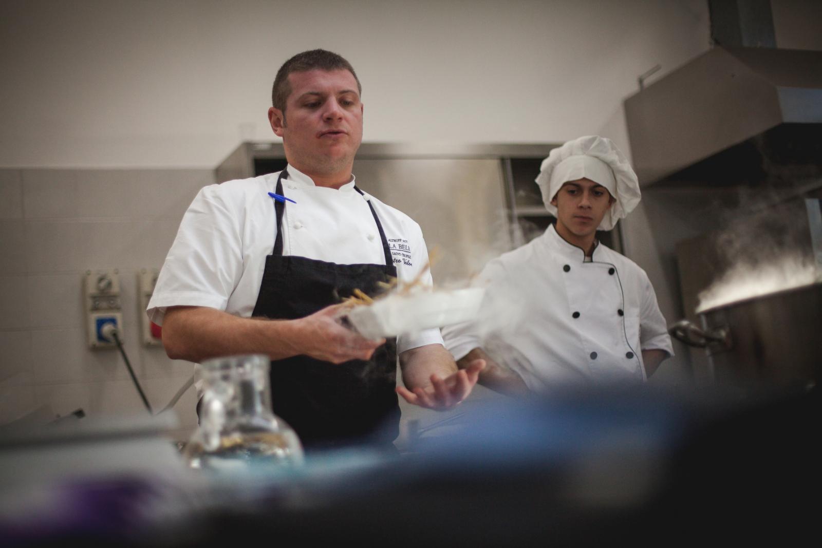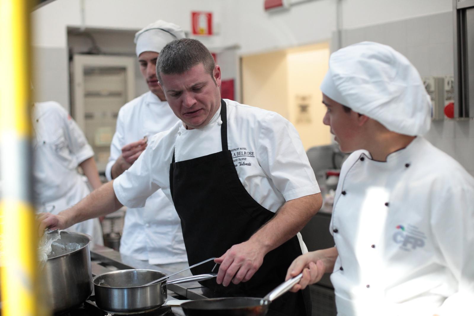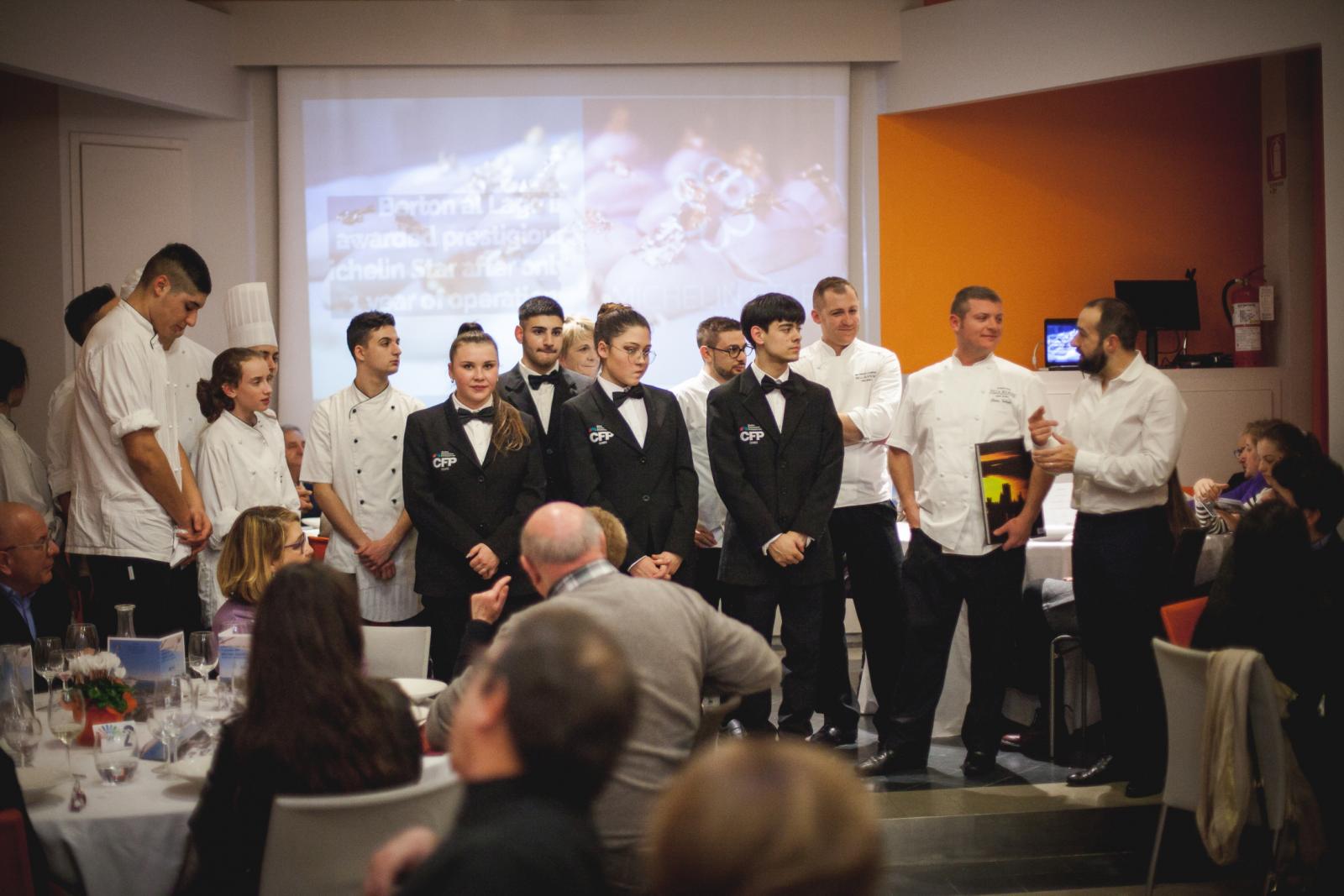 Photo Gallery Home Photo Gallery GRANDI CHEF STELLATI AL CFP: PIETRO VOLONTÉ (PH GALLERY) GRANDI CHEF STELLATI AL CFP: PIETRO VOLONTÉ (PH GALLERY) Lo Chef stellato Pietro Volontè (Althoff Hôtel Villa Belrose, Saint-Tropez) è stato protagonista della cena d'Autore svolta in data venerdì 11 gennaio 2019 presso la Sala Ristorante del CFP di COMO. Classe ‘85, Pietro Volontè - ex allievo del CFP di Monte Olimpino - è tornato dopo numerose ed importanti esperienze di rango internazionale per cucinare nella scuola che lo ha visto crescere e muovere i primi passi della Sua prestigiosa carriera. Iniziando “Da Candida” a Campione d’Italia (Chef Bernard Fournier), all'Hotel Eden a Roma, al Badrutt’s Palace Hotel in Svizzera. Ha avuto modo di seguire lo Chef Enrico Derflingher nella cornice di Saint Moritz. Passa poi dal Cipriani Restaurant a Londra, al Gordon Ramsay di Londra e poi a quello di Parigi, dove diventa secondo chef. Il suo stile è legato a tradizione e semplicità, con grande rispetto delle materie prime e con un'occhio all'innovazione. Oggi ricopre la posizione di Executive Chef all‘Althoff Hotel Villa Belrose, lussuoso Relais & Chateaux in Costa Azzurra ed è insignito di una STELLA MICHELIN. Il menù proposto ha visto un "Amouche Bouche" di benvenuto, Tortellini di polipo, seppia al profumo di agrumi,cipolla rossa in agrodolce, salsa ai crostacei e Capesante arrostiste, puree di pastinaca,melograno, kaffir lime, salsa al caffe arabica. Come secondo un Filetto di manzo cotta bassa temperatura, sedano rapa croccante, millefoglie di patate, pioppini marinati al sesamo, salsa al vino rosso Interessante il dolce con Cioccolato, the nero affumicato, gel alla citronella, gelato alla banana e "Dolcetti fiammeggianti" serviti direttamente dallo Chef. Pietro Volontè ha cucinato i piatti del menu con la Brigata delle classi terze di cucina del Centro e coordinando con i docenti di sala e gli allievi delle Terze annualità il servizio. Nello Staff di Pietro per questa serata, anche l'amico e collega Paolo Longoni - cuoco del ristorante "BellaVista" di Veleso (CO), peraltro docente di cucina deli corsi DDIF del CFP. I due Chef hanno condiviso assieme l'esperienza al Restaurant Gordon Ramsey di Londra. Circa ottanta ospiti presenti alla Cena hanno gradito il Menu, strutturato con abbinamenti interessanti e materie prime di primissimo livello. La Direttrice del CFP ha personalemente consegnato allo Chef il Libro del Lago di Como (Pifferi Editore - VILLE E GIARDINI), assieme allo Staff del CFP. rande l'emozione degli allievi e delle allieve impegnate nella serata che ha rappresentato un importante momento didattico e formativo per gli studenti coinvolti. Qui di seguito la PH GALLERY dell'evento Torna indietro Condividi Su E-mailFacebookTwitterLinkedIn Gallery