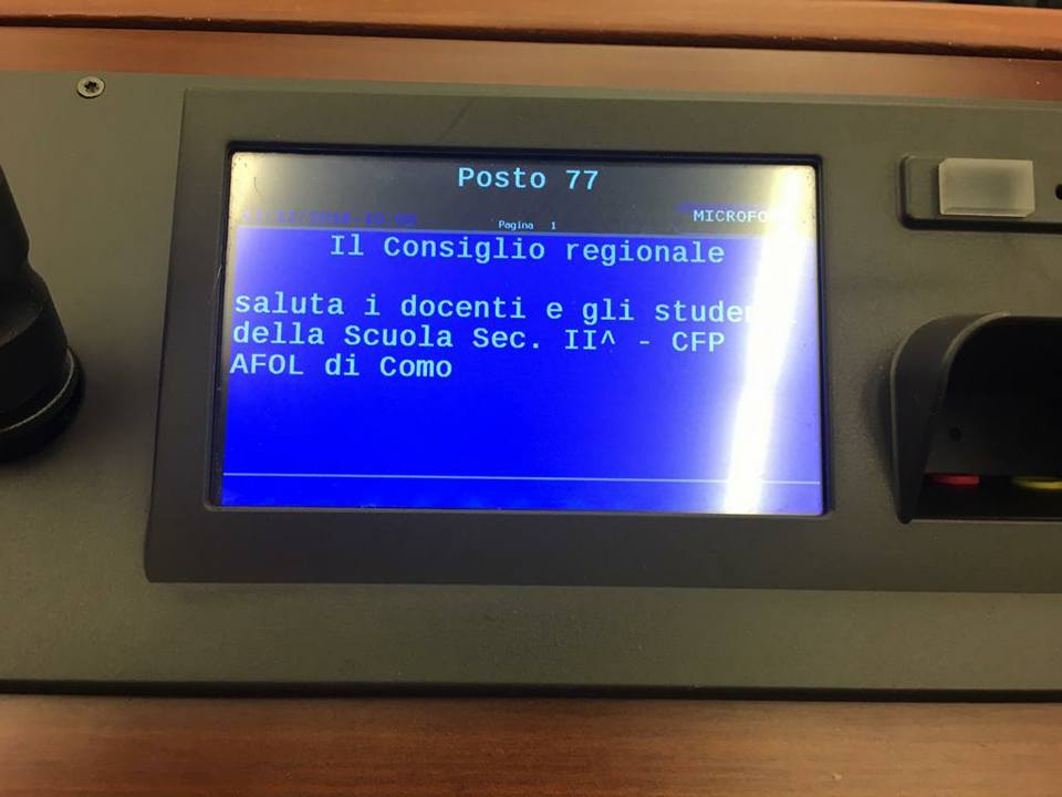 Photo Gallery Home Photo Gallery Il CFP di Como in Regione Lombardia Il CFP di Como in Regione Lombardia Visita in Regione Lombardia per gli studenti del Cfp di Como: a tu per tu con il presidente Alessandro Fermi. L’importanza dell’esercitare sempre e comunque il proprio diritto di voto, l’opportunità di approfondire e comprendere le opportunità che il nuovo contesto sociale offre in chiave europea e internazionale, la necessità di prendersi cura del territorio in cui si vive assumendosi anche la responsabilità di essere protagonisti della vita amministrativa locale con proposte e contributi concreti. Sono stati alcuni dei temi che il Presidente Alessandro Fermi ha affrontato accogliendo questa mattina nell’Aula del Consiglio regionale 51 studenti del CFP Como (foto), guidati dai loro insegnanti. Gli studenti del Centro di Formazione Professionale (CFP) lariano hanno avuto modo di confrontarsi e “interrogare” il Presidente Fermi sull’attività del Consiglio regionale ed in particolare sugli aspetti legislativi che riguardano l’iter dei provvedimenti. Hanno quindi potuto vistare Palazzo Pirelli, le mostre e i presepi esposti, salendo anche allo Spazio Belvedere al 31° piano. Torna indietro Condividi Su E-mailFacebookTwitterLinkedIn Gallery