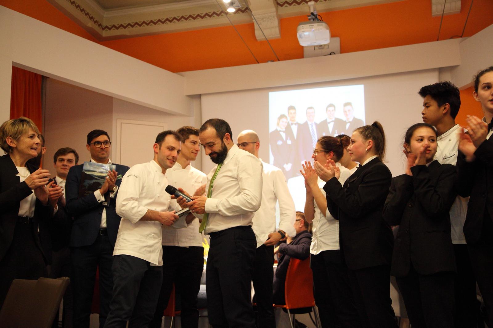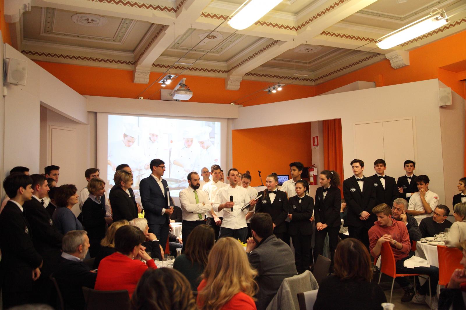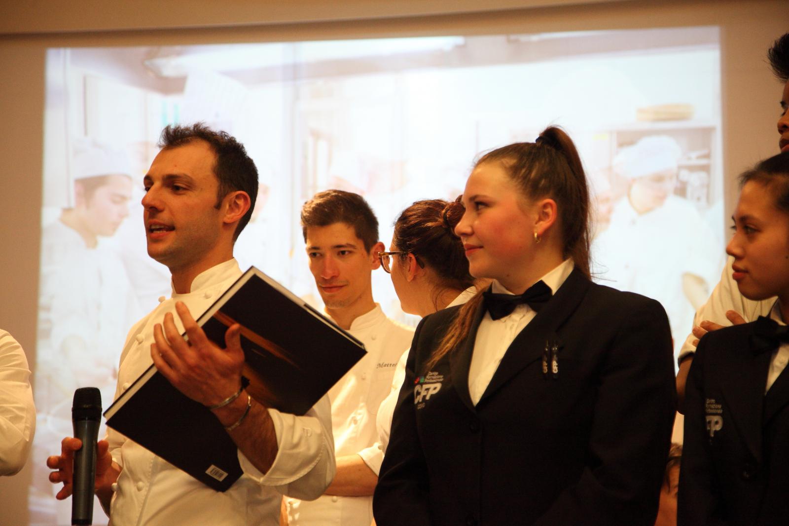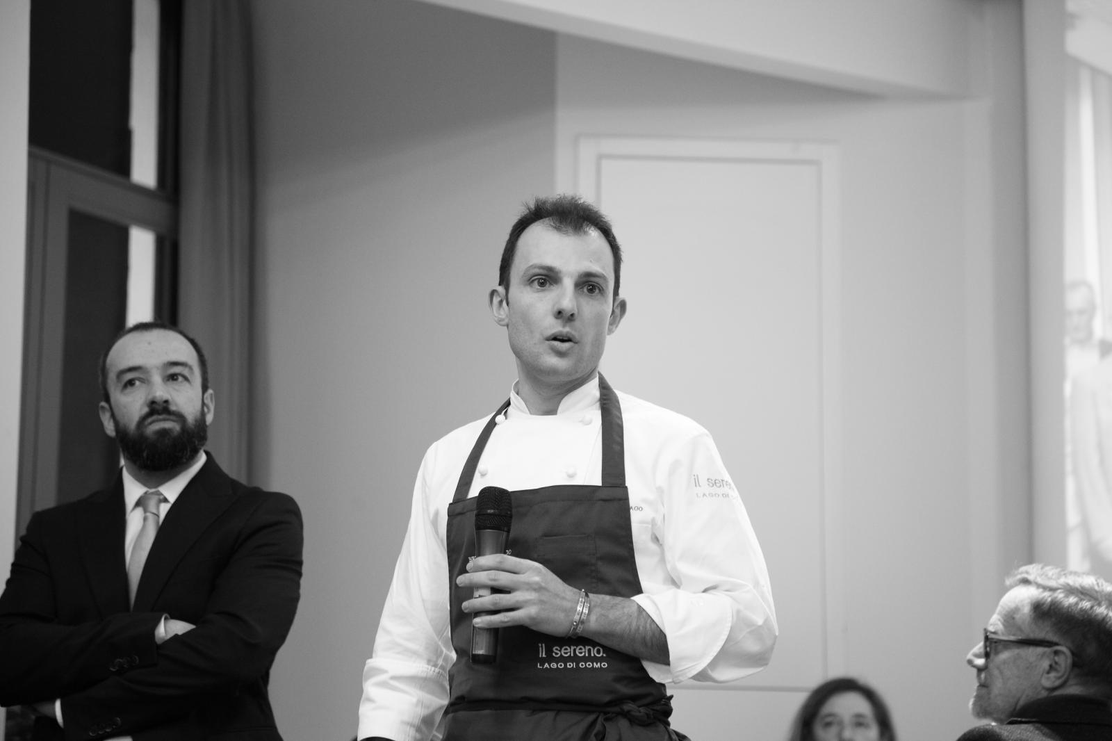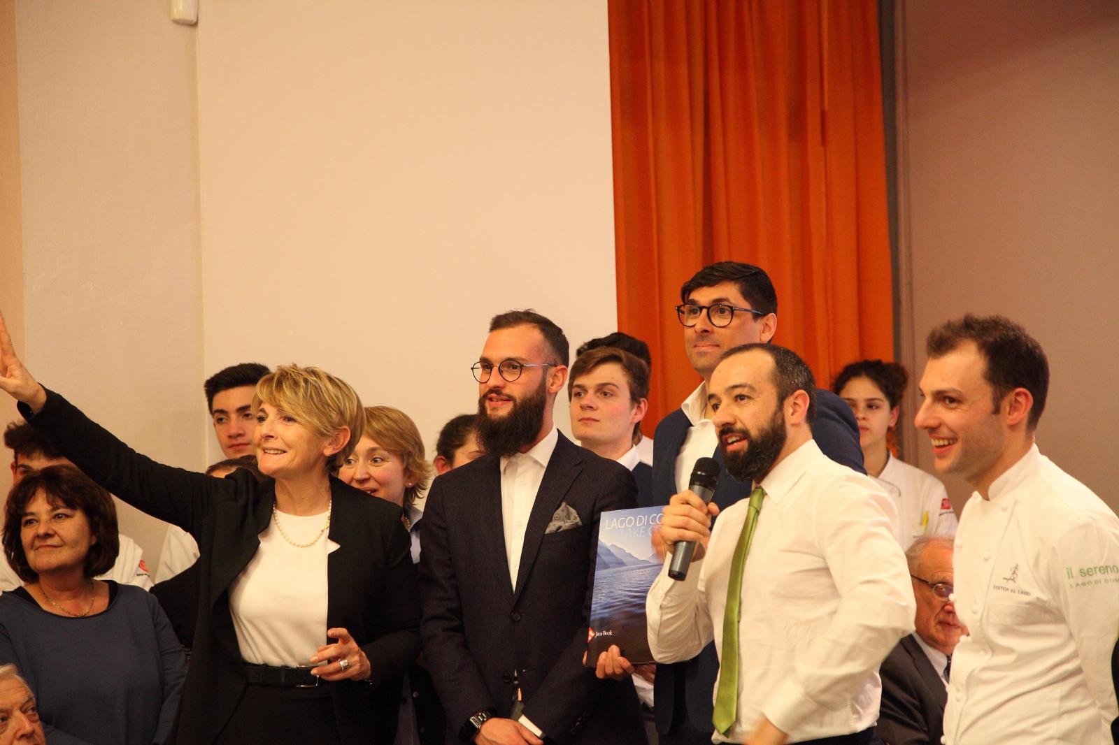Photo Gallery Home Photo Gallery IL SERENO - BERTON AL LAGO: PHOTOGALLERY IL SERENO - BERTON AL LAGO: PHOTOGALLERY Per la Festa della donna una serata speciale al Centro di Formazione Professionale di Via Bellinzona. Per il ciclo Grandi Chef al CFP protagonisti questa sera Raffaele Lenzi e Stefano Gaiofatto, rispettivamente Executive Chef e Food & Beverage Manager del ristorante Berton al Lago de Il Sereno di Torno. Inaugurato nel 2017 e subito inserito nel prestigioso elenco dei Leading Hotels of the World, il 5 stelle luxury di Torno si è guadagnato riconoscimenti e premi, sia per quanto riguarda il design, firmato da Patricia Urquiola, sia per quanto riguarda l’offerta enogastronomica. Il ristorante della struttura, Berton al Lago, ha ottenuto dopo un solo anno di apertura l’ambita stella Michelin, che conferma l’ottimo lavoro di Raffaele Lenzi e di Andrea Berton, nelle vesti di consulente. Per la serata, le cui prenotazioni sono chiuse da tempo, è stato proposto un menu ricercato, con riferimenti alla tradizione comasca. I ragazzi della seconda B di cucina hanno affiancato lo chef nella preparazione, mentre la classe terza di sala-bar si è occupata del servizio. Stefano Gaiofatto, F&B del Berton al lago, oltre a coordinare in collaborazione con i docenti del C.F.P. il servizio di questa sera, sarà presente il 19 marzo per una serata di degustazione enologica guidata. Il ciclo delle serate al C.F.P si chiuderà il 2 aprile con la cena “Il pesce del Lago di Como”, evento proposto in collaborazione con il Ristorante “Da Silvio” di Bellagio, che quest’anno raggiunge la nona edizione. Qui di seguito la gallery della serata, gli scatti del Backstage in cucina e la consegna di un omaggio della Direzione del CFP agli ospiti dell'evento Torna indietro Condividi Su E-mailFacebookTwitterLinkedIn Gallery