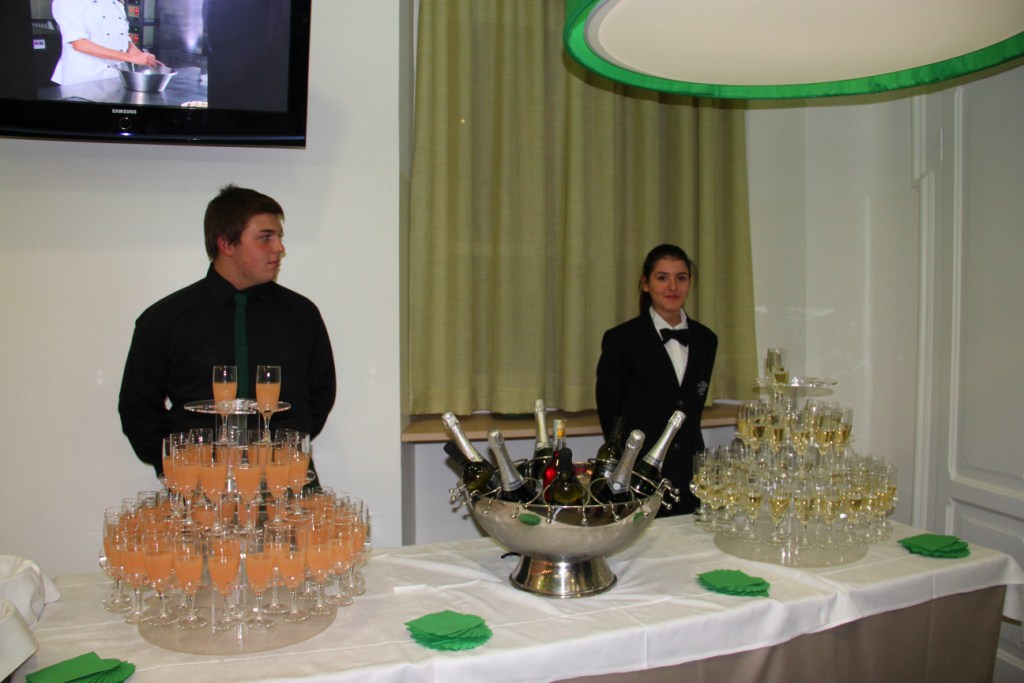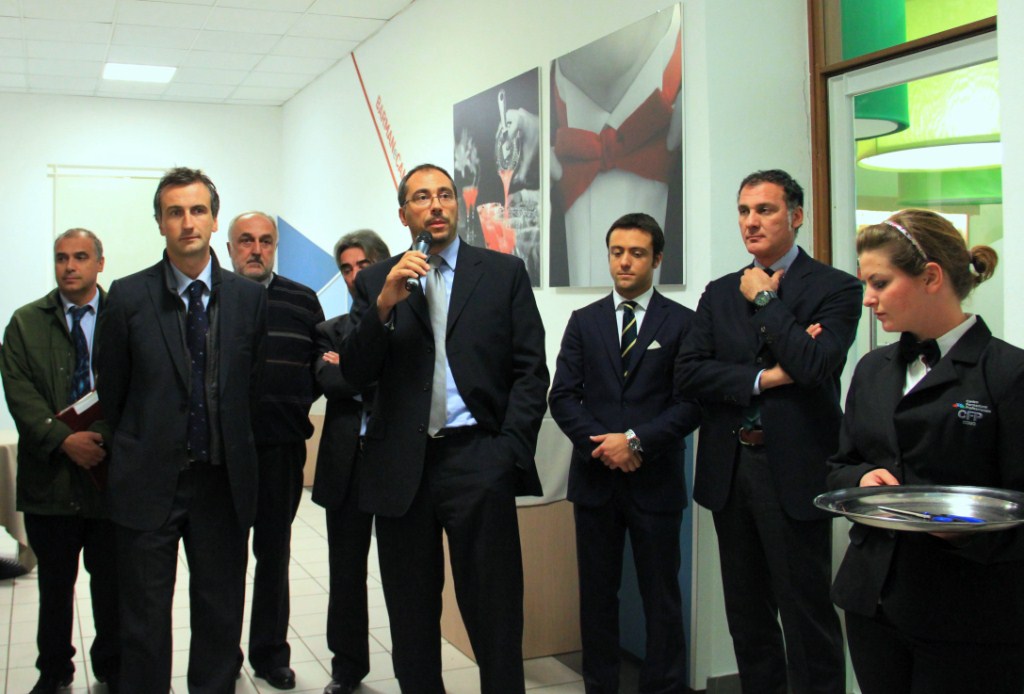 Photo Gallery Home Photo Gallery Inaugurazione nuovi Laboratori di Sala Bar e Sala Ristorante - Festa della Birra Inaugurazione nuovi Laboratori di Sala Bar e Sala Ristorante - Festa della Birra Un importante evento si è tenuto in data Martedì 18 ottobre 2011 a partire dalle ore 19.30 presso la sede del Centro di Formazione Professionale di Como (CFP) in Via Bellinzona 88, Monteolimpino. In questa occasione sono stati inaugurati i nuovi Laboratori di SALA BAR e SALA RISTORANTE alla presenza di Alessandro Fermi - Assessore alla Formazione Professionale della Provincia di Como, Sergio Zauli - Presidente dell’Agenzia (presente assieme all’intero Consiglio di Amministrazione), Silvio Peverelli - Direttore dell'Agenzia, Giovanni Ciceri - Presidente Pubblici Esercizi Confcommercio Como e Roberto Cassani - Presidente Albergatori Confcommercio Como. In questa occasione l'Associazione Provinciale Cuochi di Como, presidiata da Cesare Chessorti, in collaborazione con gli allievi del settore Ristorativo/Alberghiero del CFP hanno offerto la cena con la partecipazione del Mastro birraio Alessandro Campanini del birrificio "Doppio Malto" di Erba (Laboratorio per la pratica e l’osservazione delle fasi di produzione della birra) illustrando, descrivendo e proponendo la degustazione di birre “chiare, rosse, scure”, a bassa e alta fermentazione. Alla cena hanno partecipato, numerosi, gli operatori (personale docente e collaboratori) dell'Agenzia, assieme ai genitori ed agli allievi del Centro di Formazione Professionale. Qui di seguito pubblichiamo alcune delle foto, scattate durante la serata. Torna indietro Condividi Su E-mailFacebookTwitterLinkedIn Gallery