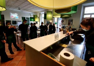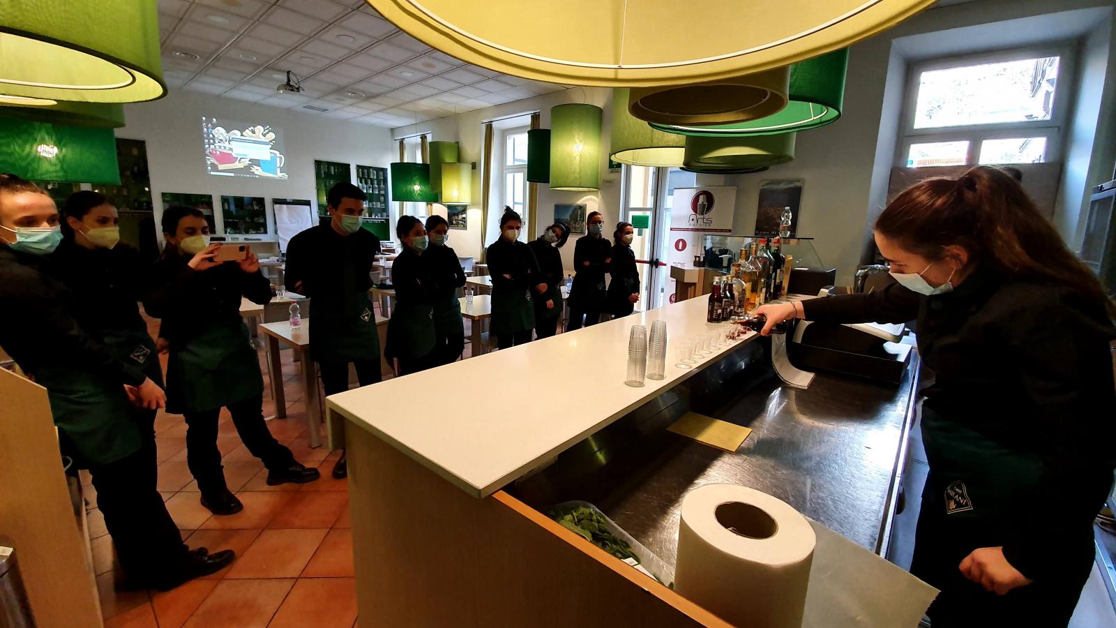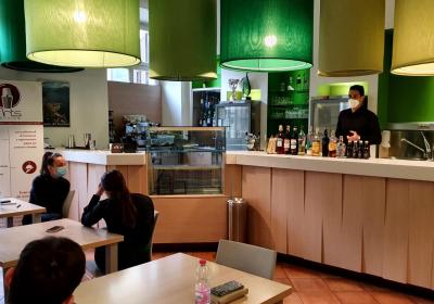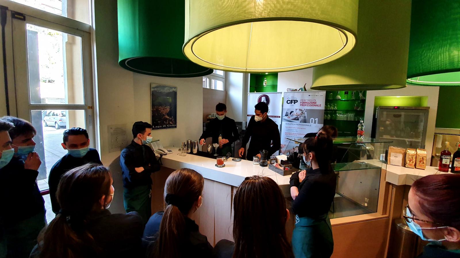 Photo Gallery Home Photo Gallery INTERVENTO KEVIN BOTTE - BARTENDER MANDARIN ORIENTAL BLEVIO INTERVENTO KEVIN BOTTE - BARTENDER MANDARIN ORIENTAL BLEVIO I docenti della classe 4^Sala alternanza del CFP di Como hanno organizzato in accordo con la direzione ARTS Services (associazione no profit per sala-bar www.artsservice.it) un intervento sulla miscelazione con Kevin Botte, ex bar manager dell'imperiale di Moltrasio e attualmente bartender al Mandarin Oriental di Blevio. L'incontro si è focalizzato sulla figura del bartender, non solo nel ruolo di mero esecutore, ma come hospitality manager a 360°. All'ordine del giorno argomenti come l'interazione col cliente e l'educazione al gusto. La classe ha poi simulato i costi di realizzazione di alcuni classici della miscelazione e proposto varianti innovative, senza incrementare in modo significativo il drink cost, ma elaborando nuovi cocktail vendibili con un maggior valore. Qui di seguito alcuni scatti dell'intervento Torna indietro Condividi Su E-mailFacebookTwitterLinkedIn Gallery