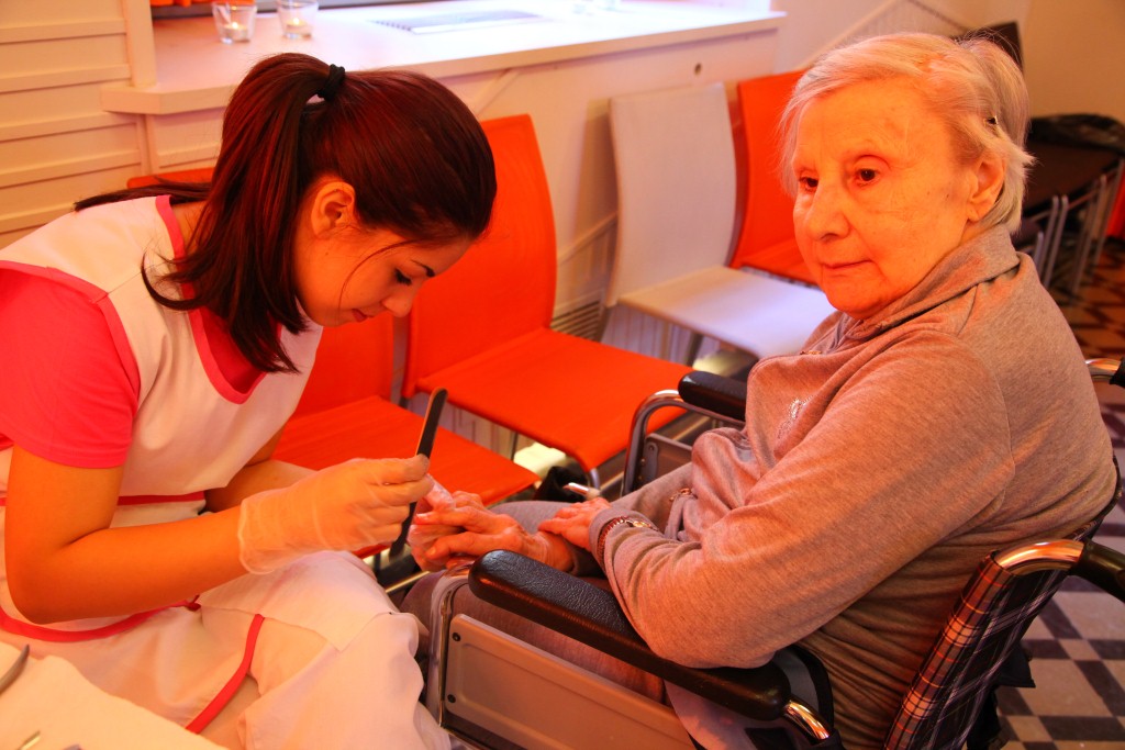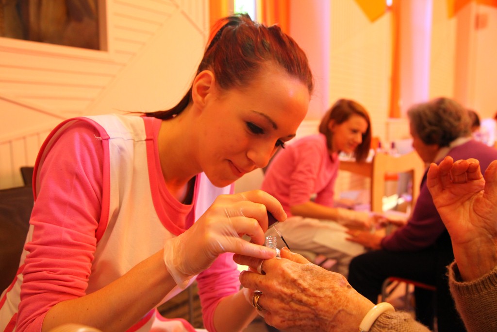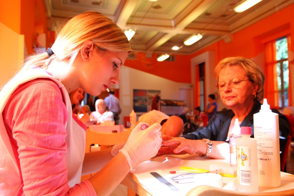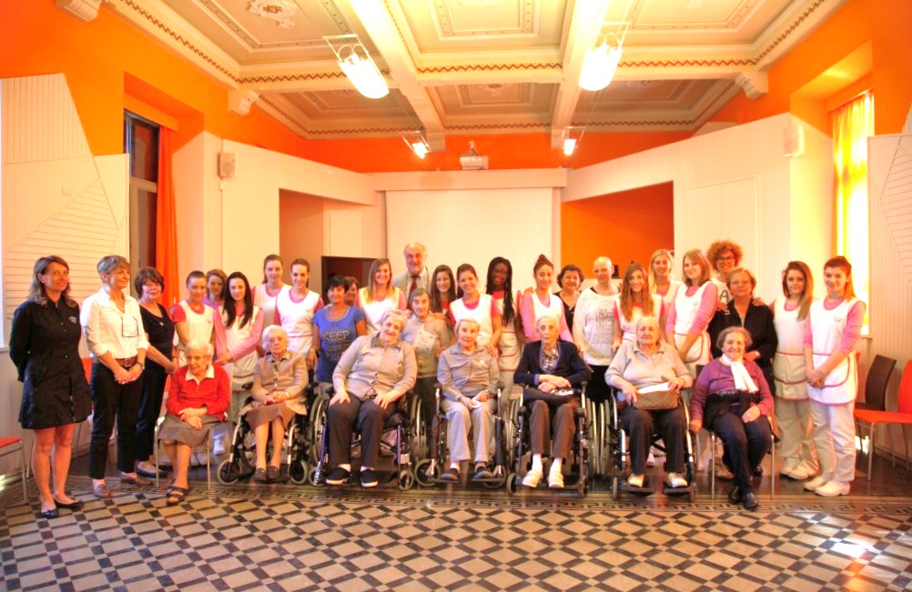 Photo Gallery Home Photo Gallery L’IMPEGNO DEL CFP – SETTORE BENESSERE – PER IL “PROGETTO VOLONTARIATO” L’IMPEGNO DEL CFP – SETTORE BENESSERE – PER IL “PROGETTO VOLONTARIATO” Il 30 maggio scorso la classe II C ESTETICA, sotto la guida della docente, prof. Carnini, ha accolto nell’Aula Magna per l’intera mattinata una decina di anziane ospiti della casa di riposo comasca “S. Marcellina”, praticando loro alcuni trattamenti alle mani e al viso, a conclusione di un vicendevole nonché proficuo, dal lato umano, ciclo di trattamenti di manicure alle anziane. Tale iniziativa rientra peraltro nell’intesa a suo tempo stipulata con il Centro Italiano Femminile, denominata “Progetto Volontariato”, grazie alla quale proprio la classe II C ha potuto effettuare nell’arco di un mese quattro esperienze lavorative presso la suddetta casa di riposo, sita in via T. Grossi. L’approccio studentesse-anziane, curato dalle docenti di Scienze ed Etica, aveva avuto peraltro il suo esordio fin dal 27 febbraio successivamente all’incontro con le responsabili del progetto Aiani, Maffei e Garancini, seguito dalla regolare e partecipativa serie di visite calendarizzate della classe. Infine, a testimonianza dell’impegno profuso, le nostre studentesse riceveranno a breve un attestato di partecipazione all’esperienza, di alto valore umano oltre che professionale. Di seguito alcune foto-ricordo testimonianti la presenza delle anziane al Centro il 30 maggio: Torna indietro Condividi Su E-mailFacebookTwitterLinkedIn Gallery