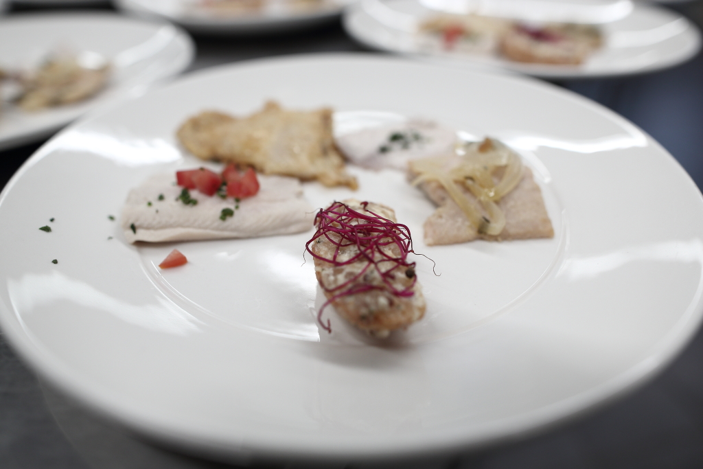 Photo Gallery Home Photo Gallery LA TRADIZIONE LARIANA: IL PESCE DI LAGO AL CFP LA TRADIZIONE LARIANA: IL PESCE DI LAGO AL CFP In data 6 aprile 2017 si è tenuta presso il CFP di Como – Monte Olimpino – la Cena dal tema “IL PESCE: DAL LAGO ALLA TAVOLA”, a cura del Ristorante “Silvio” di Bellagio. Giunti ormai alla VII edizione, la serata ha proposto come tema il pesce del lago di Como, la cui tradizione affascina sempre molto i commensali che in questa edizione hanno raggiunto le il numero record di 120 presenze, riempendo due sale. La pesca è il fulcro dell’attività dello storico ristorante, che ormai da generazioni allieta i suoi numerosi clienti con ricette legate alla tradizione Lariana. Tutto ruota intorno a questa attività: non solo è vitale per il ristorante, ma garantisce la freschezza e la selezione delle materie prime. Durante la cena il pescatore e ristoratore Cristian Ponzin, titolare del ristorante, ha illustrato il menu della cena descrivendo con attento dettaglio e grande passione il pescato del giorno ed il metodo con il quale si è realizzata la pesca per la cena. Le storie dei pescatori del Lario hanno da sempre affascinato i turisti e gli amanti della tradizione comasca, e sono la dimostrazione di come la cucina, in Italia, sia espressamente legata ad un'anima e ad un territorio ricco di materie prime e specie animali esclusive e ricercate. Ricco e variegato il menù: Crudité del Lario all’italiana, Paté di Lavarello e Coradura di Agone, Filetto di Lavarello in Salsa verde, Crostone di pane, Filetto di Bottatrice in agrodolce, Pigo marinato freddo con sale e zucchero, Agoni in Carpione. Primo piatto con Corde di chitarra al Luccio e, come secondo, pescato del giorno gratinato al limone con agone e patata bianca comasca; Miascia di Bellagio con singolare rivisitazione all'uva americana per chiudere la serata. A metà evento Christian ha risposto alle numerose domande degli ospiti che, curiosi, proponevano quesiti ed aneddoti legati alla pesca sul lago di Como. Oltre a esprimere un momento importante per gli ospiti, la cena ha rappresentato anche un interessante momento didattico/formativo per gli allievi delle seconde e delle quarte annualità del Settore Ristorativo Alberghiero, presenti al servizio nelle due sale per l'occasione. Qui di seguito le foto più significative dell'evento Torna indietro Condividi Su E-mailFacebookTwitterLinkedIn Gallery