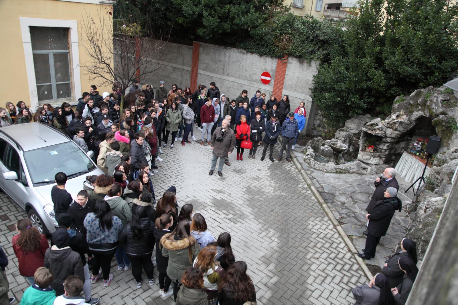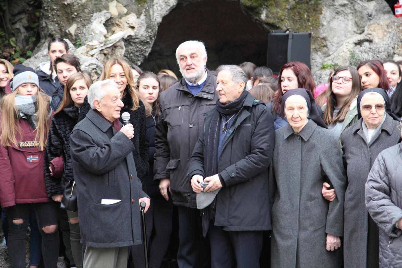 Photo Gallery Home Photo Gallery L'ARTISTA LEONARDO GERMINARIO E IL DONO DEL PRESEPE AL C.F.P. L'ARTISTA LEONARDO GERMINARIO E IL DONO DEL PRESEPE AL C.F.P. Leonardo Germinario, in arte Leo Germi, della classe 1926, nasce a di Santeramo in Colle (Ba). La sua passione per l’arte sboccia da bambino accompagnando il nonno Erasmo dal parrucchiere per poter guardare le opere di cartapesta presenti nel retrobottega. Il parrucchiere infatti, amante dell’arte della cartapesta, aveva trasformato il magazzino del negozio in un vero studio artistico, e qui il piccolo Leonardo poteva osservare dei piccoli capolavori. Amante dell’arte ha ricevuto la passione per il presepe da uno zio. Ogni anno Leonardo era il primo ad essere chiamato per aiutarlo nella realizzazione. Il giorno di natale si svolgeva poi l’inaugurazione; i nipoti in fila portavano il Bambinello fino alla sua culla. Da allora la passione in Leonardo ha continuato a crescere e gli studi di architettura gli hanno permesso di realizzare presepi di grande bellezza. Il suo primo presepe l’ha realizzato in una taverna romana a Poggiorsini. E da lì ogni natale prepara piccoli presepi da regalare. Negli anni 50, quando si trasferisce a Como, inizia i corsi presso l’Accademia di Brera, raffinando ulteriormente la sua competenza tecnica e artistica. Dopo aver realizzato parecchi presepi nella Provincia di Como (Basilica del Crocifisso, Ospedale Valduce) e in Svizzera (Chiesa di Fatima in Chiasso), dai primi giorni di novembre il signor Leo, si sta dedicando alla costruzione del presepe nella grotta della Madonna di Lourdes nel C.F.P. di Como, iniziando dal paesaggio con carta, cartone e colla. Colori e accessori hanno arricchito l’opera. Gli allievi del C.F.P. guidati dagli insegnanti hanno avuto l’occasione di incontrare l’artista al lavoro. In questo modo hanno potuto conoscere le sue tecniche artistiche e soprattutto quella passione del fare che negli anni non è mai venuta meno ma che anzi lo ha portato a sfidare il freddo e la fatica per realizzare un sogno personale. Il Direttore e tutti i suoi collaboratori insieme agli allievi e alle sue nipoti sono grati a Leo per aver dato la propria disponibilità e per aver donato anche al C.F.P. una delle sue opere, che diventerà patrimonio dell’Istituto. Torna indietro Condividi Su E-mailFacebookTwitterLinkedIn Gallery