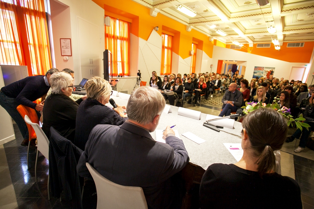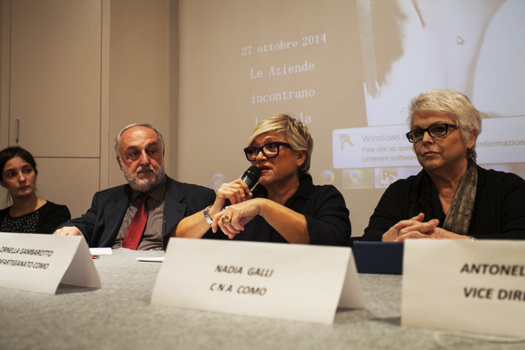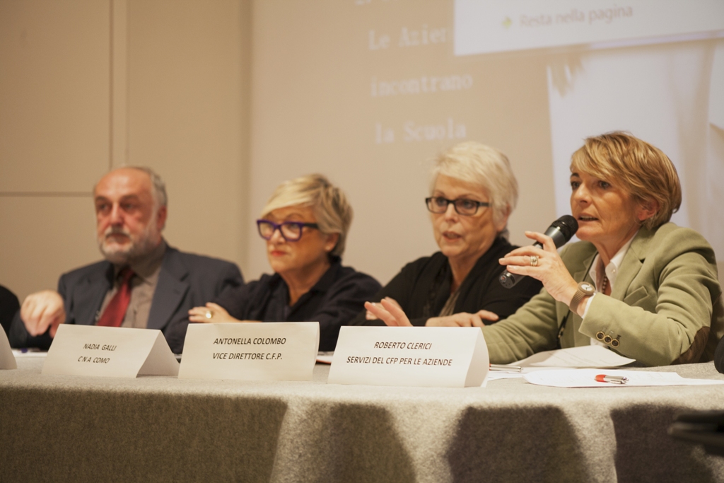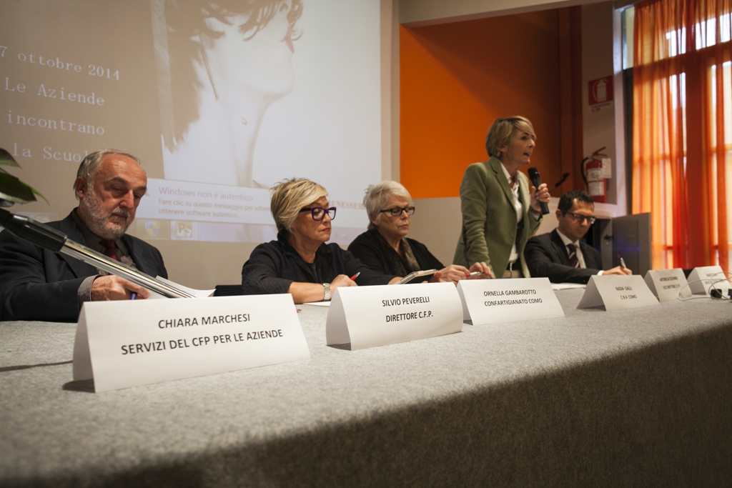 Photo Gallery Home Photo Gallery Le Aziende incontrano il CFP Le Aziende incontrano il CFP In data 27 ottobre 2014 il Centro di Formazione Professionale è stato lieto di invitare le aziende del Settore Benessere (Acconciatura ed Estetica) ad un incontro presso l’Aula Magna del CFP al fine di condividere le modalità e le strategie di collaborazione tra Aziende e Scuola sul tema dello stage e dell’apprendimento in assetto lavorativo presso. Il Programma ha previsto la registrazione dei partecipanti, l'apertura dei lavori (Dott. Silvio Peverelli - Direttore del C.F.P.), in seguito il nuovo accordo con le Associazioni di categoria Dott.ssa Antonella Colombo - Vice Direttore ed alcuni importanti interventi di Ornella Gambarotto - Confartigianato Como e Nadia Galli – CNA Como. A metà mattinata ha avuto luogo la presentazione dei servizi del CFP per le aziende (Dott. Roberto Clerici). Dopo il Coffè break è stato presentato il Progetto “Acconciatura” al quale hanno partecipato gli Allievi in pedana, attraverso una dimostrazione curata dal Prof. Lorenzo Bellome e degli ex allievi del IV anno (A.F. 2013/2014) Al termine dell'evento è stato predisposto un buffet organizzato dagli Allievi del C.F.P. Qui di seguito la photogallery dell'evento. Torna indietro Condividi Su E-mailFacebookTwitterLinkedIn Gallery