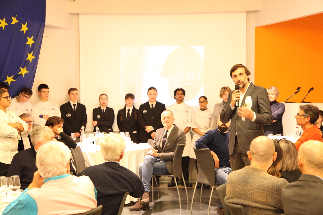 Photo Gallery Home Photo Gallery MATERIA - Cena Stellata al CFP MATERIA - Cena Stellata al CFP Cena stellata in data 24 febbraio 2025 presso il CFP di Como.Menù di alto livello con lo chef del ristorante Materia (Cernobbio). Da un sogno condiviso da quattro ragazzi under 30, nasce il ristorante nel 2016 e dopo 8 anni, nonostante il cambio di sede, il team alla guida del ristorante rimane lo stesso con lo chef Davide Caranchini, la responsabile di sala Ambra Sberna e il sommelier Luca Sberna. Il ristorante propone piatti che non nascono per caso, ma sono frutto di un lungo lavoro investigativo. Tutto parte dalla scelta delle migliori materie prime disponibili, seguendo i ritmi naturali imposti dalle stagioni, per poi passare attraverso un percorso di ricerca e sviluppo, in cui lo studio e la sperimentazione risultano essere le fondamenta nella proposta gastronomica del ristorante. Numerosi gli ospiti alla cena che ha contato più di 80 persone, tra le quali le autorità sul territorio della Provincia di Como, oltre al Sindaco Alessandro Rapinese. Torna indietro Condividi Su E-mailFacebookTwitterLinkedIn Gallery