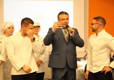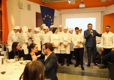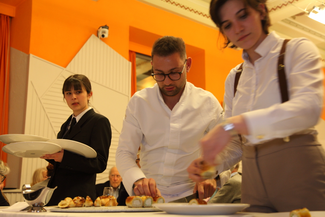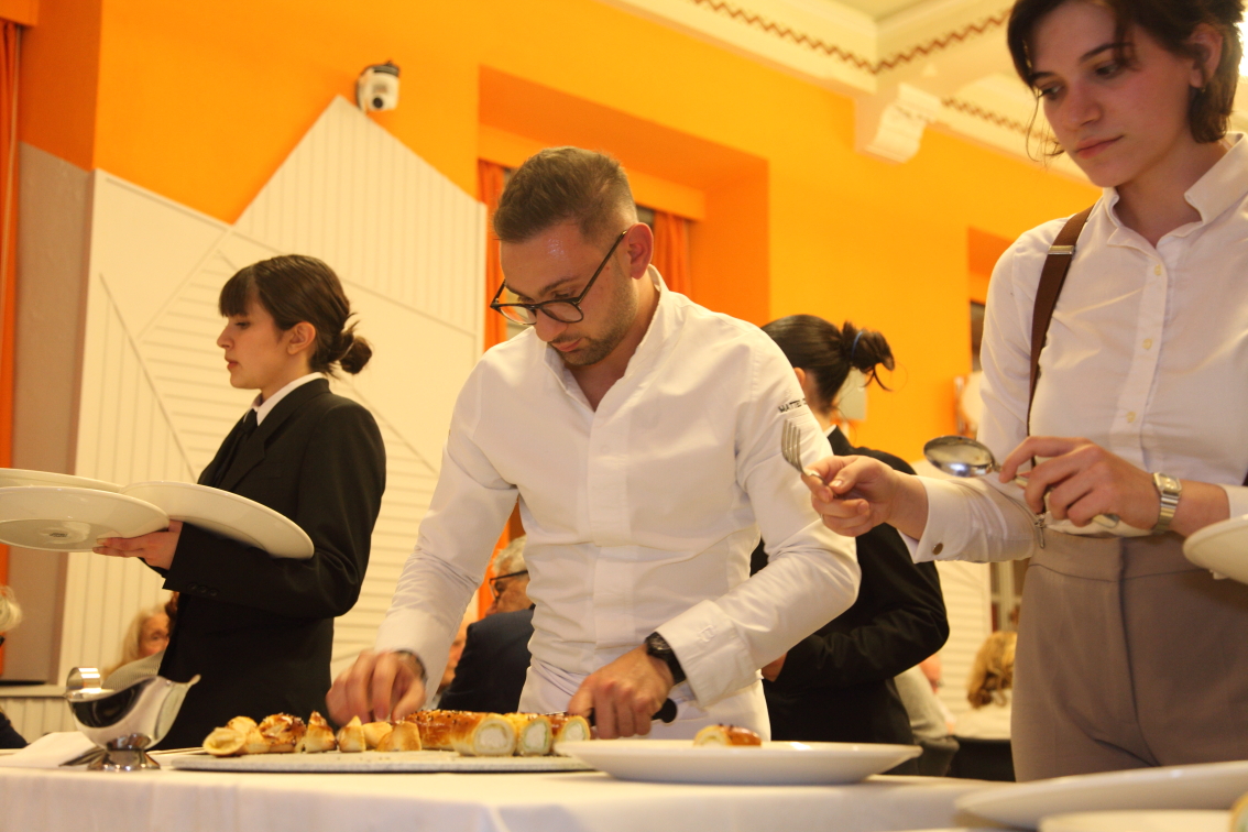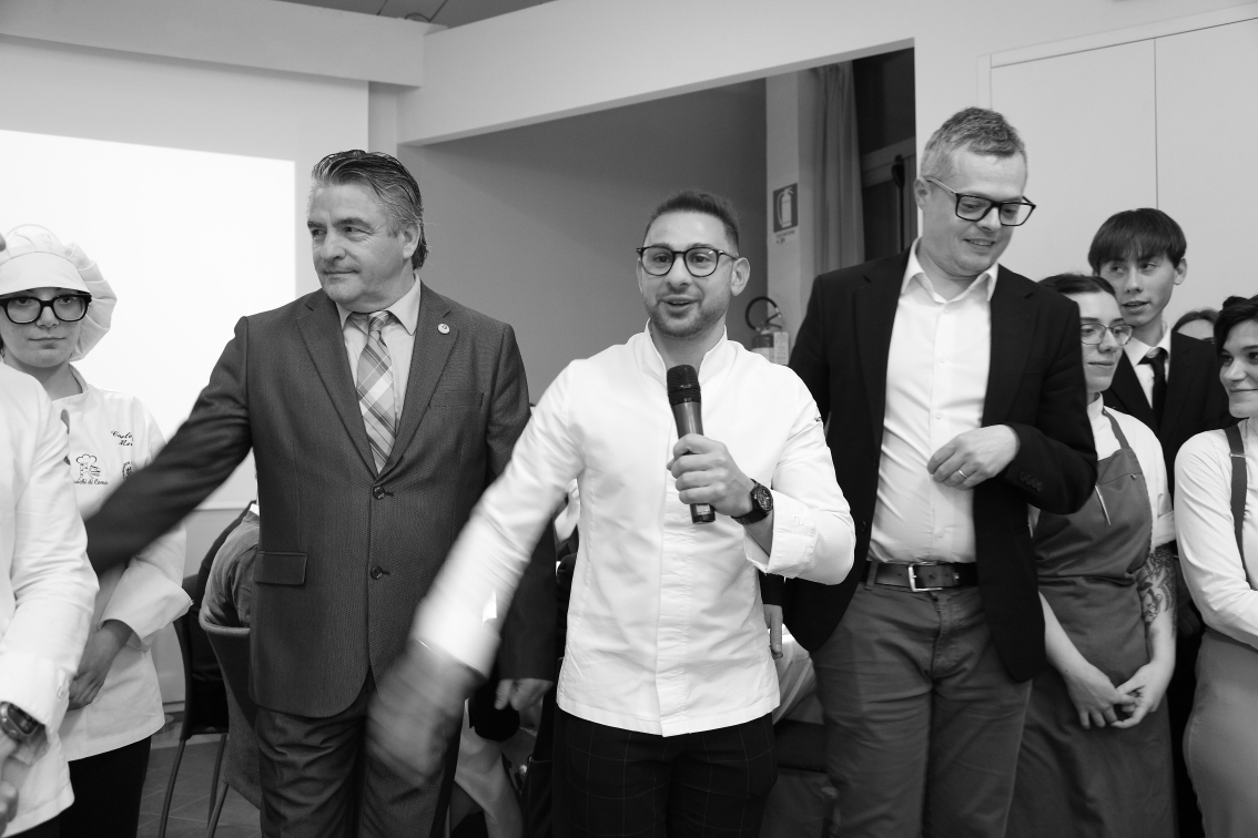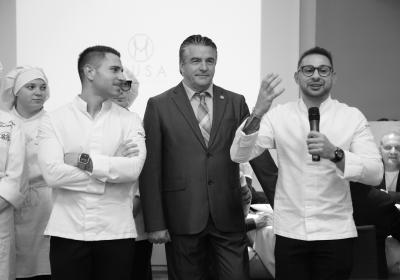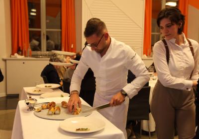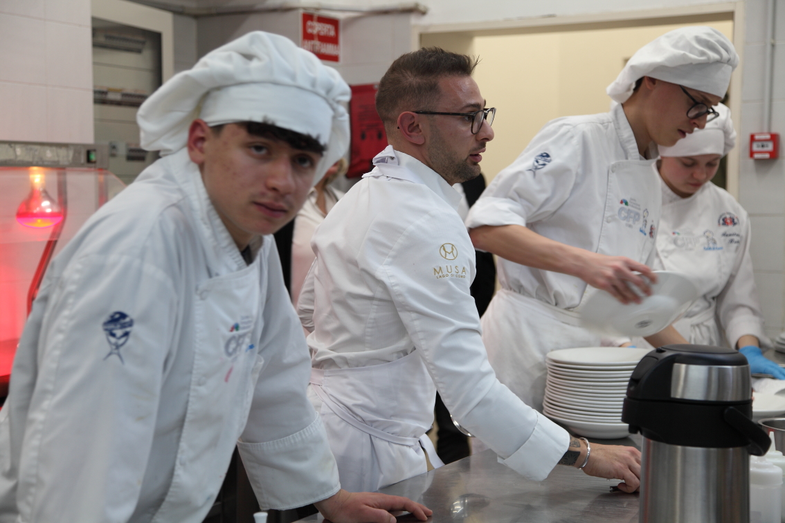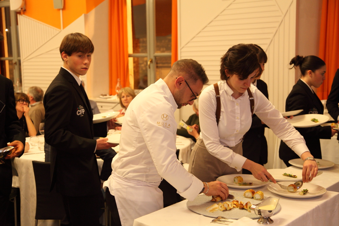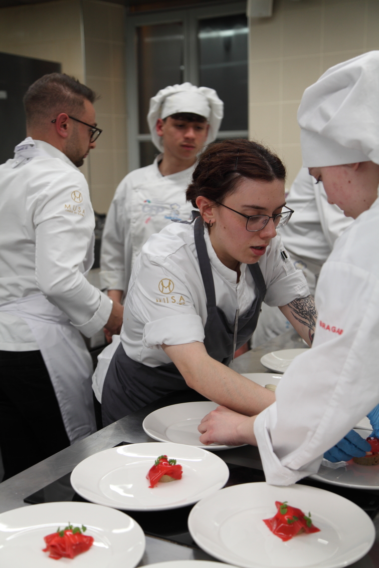 Photo Gallery Home Photo Gallery MUSA - SERATA GOURMET "4 PASSI A SALA COMACINA" MUSA - SERATA GOURMET "4 PASSI A SALA COMACINA" Musa è il Brand che ha debuttato a giugno 2022, pensato per creare un’esperienza esclusiva sulle rive del Lago di Como (Sala Comacina).Musa è gestito da Robert Moretti e Matteo Corridori, due acclamati Executive Chef entrambi nati e cresciuti sul lago di Como, sotto la supervisione e la guida della famiglia Gray, imprenditori da 40 anni nel settore del turismo. Dopo quasi 10 anni all’estero, Moretti e Corridori hanno deciso di portare passione, conoscenze ed esperienza acquisite nei più prestigiosi hotel e ristoranti stellati del mondo nella cornice del Lago di Como. I prodotti locali vengono valorizzati per esaltare il territorio e lavorati con tecniche internazionali acquisite nel corso delle precedenti esperienze sia all’estero sia sul lago di Como. La cucina, dallo stile semplice, pulito ed elegante prevede piatti dove la stagionalità è protagonista indiscussa.Alla base del ristorante ROTEO c’è l’amicizia tra Robert e Matteo, che condividono la stessa passione per l’hospitality, il settore travel e la curiosità di non smettere mai di imparare.Roteo è proprio frutto del legame tra i due nomi ma sottolinea anche l’idea di movimento, concetto che è stato fondamentale durante la ricerca di stimoli e nuove esperienze.In data 25 marzo 2025 il CFP di Como ha ospitato gli Chef Robert e Matteo, che con lo staff di sala di Musa e gli allievi delle prime di sala e seconde di cucina (2A) hanno realizzato una cena per più di 70 ospiti con un menu dal tema "4 passi a Sala Comacina", un connubio di note orientali e sapori del lago di Como. Questa esperienza è importante per gli allievi che apprendono nuove e innovative tecniche in cucina e di servizio che accrescono il loro bagaglio professionale. Qui di seguito la Gallery dell'evento e le foto più belle della cena Torna indietro Condividi Su E-mailFacebookTwitterLinkedIn Gallery