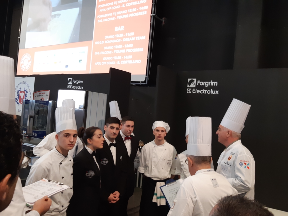 Photo Gallery Home Photo Gallery RISTOREXPO 2019 RISTOREXPO 2019 Il CFP di Como ha partecipato al concorso Young Cup, promosso dall’Associazione Cuochi di Como nell’ambito della manifestazione Ristorexpo, con il team “Il Cortellino”, composto dagli allievi Scuderi Laura, Accursio Andrea, Bona Alex (cucina), Tortorici Giorgia, Di Amico Giando Daniele, Rizzo Pasquale, Del Greco Emilia, Adam Cristina Paula (sala e bar) delle classi 3^ e 4^, coordinati dai docenti Luca Molteni (CHEF di cucina), Roberto Piatti e Loris Mondini (Maitre di Sala Bar e Ristorante). Gli allievi della contest di sopra hanno riportato la vittoria del secondo premio assoluto (medaglia d’argento). La classe 4^ pasticceria con il docente Loris Mondini ha preparato il progetto per la parte del concorso “Nuova Impresa”, conseguendo il primo premio assoluto (medaglia d’oro). La giuria ha espresso vivi Complimenti ai ragazzi e ai docenti. Qui di seguito alcuni scatti della manifestazione Torna indietro Condividi Su E-mailFacebookTwitterLinkedIn Gallery