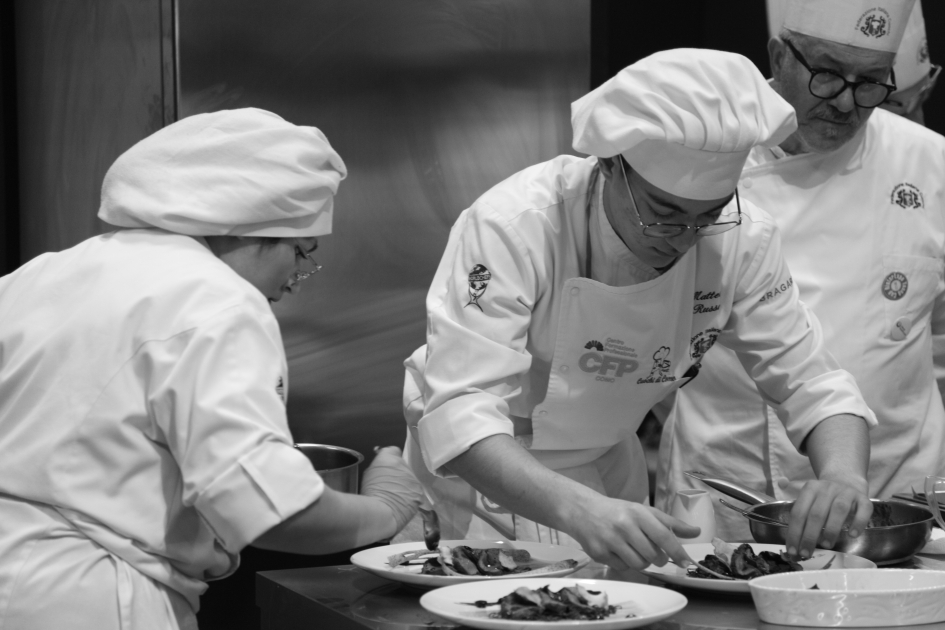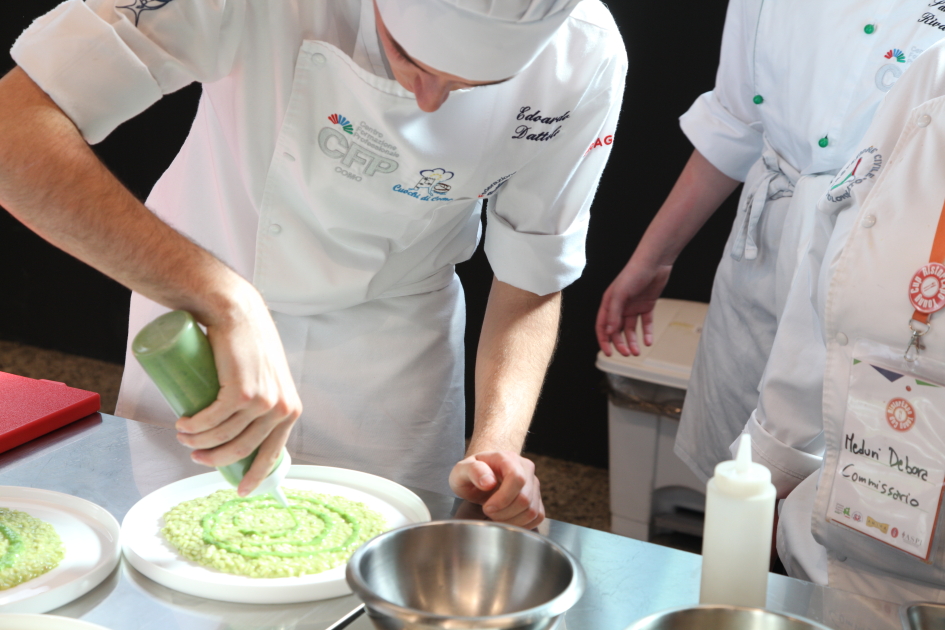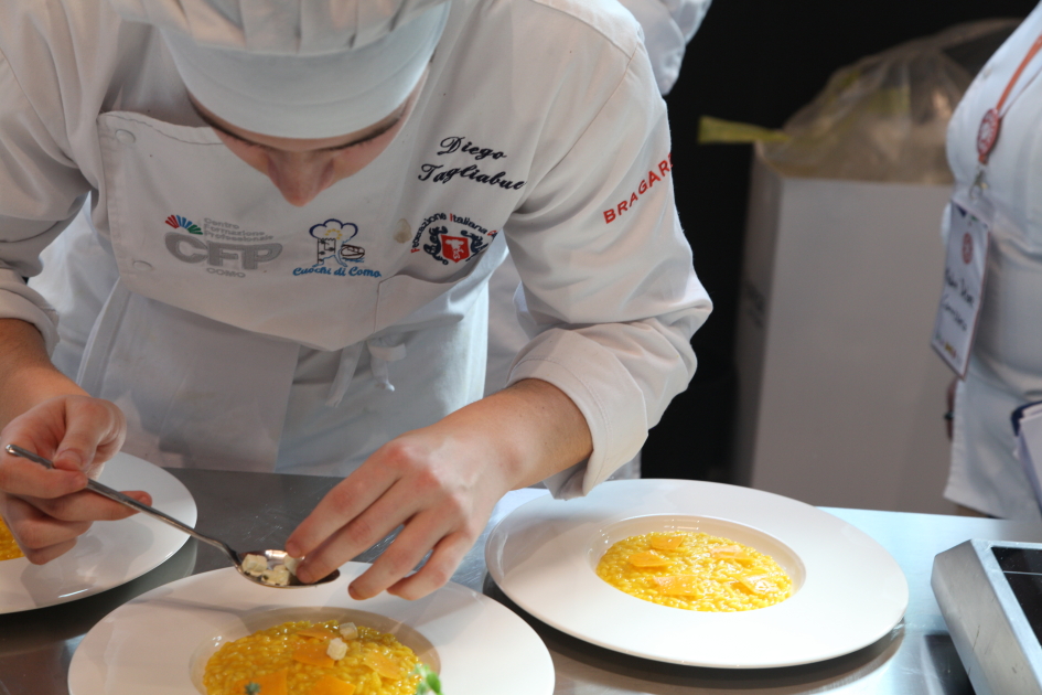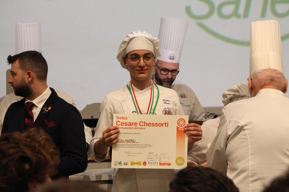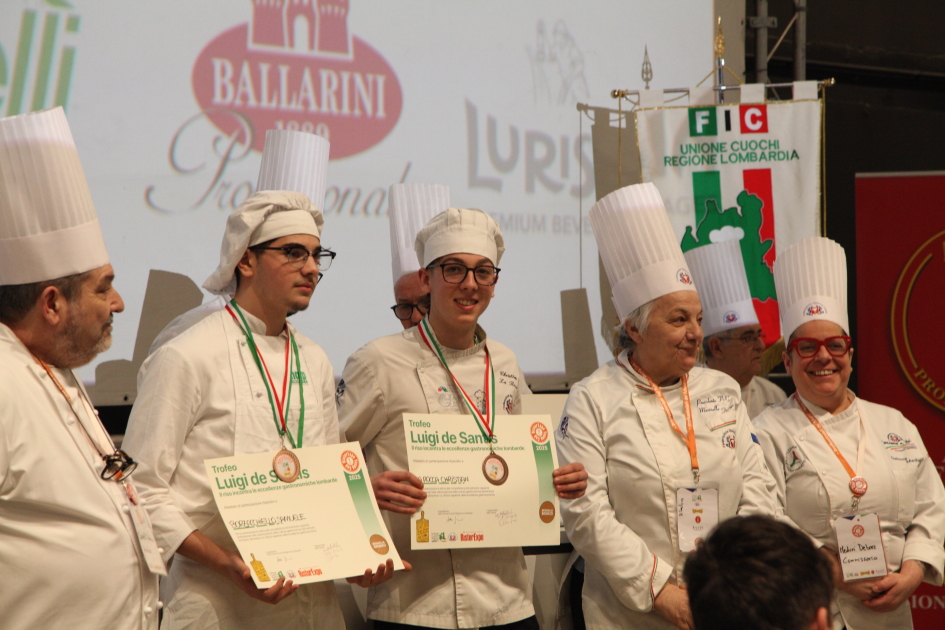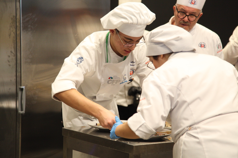 Photo Gallery Home Photo Gallery RISTOREXPO 2025 RISTOREXPO 2025 Il CFP di Como ha partecipato all'appuntamento annuale con Lariofiere al Salone di RistorExpo. Quest'anno il tema del settore della ristorazione è stato "Ripartiamo dagli Odori".Le classi quarte hanno partecipato alla conferenza del giorno 5 marzo tenuta dallo Chef bistellato Davide Oldani del D'O e del Ristorante OLMO di Cornaredo (MI), che ha parlato ai giovani della professione del cuoco e del cameriere facendoli avvicinare con interesse e coinvolgimento al lavoro ed evidenziando come la passione porti a gradi traguardi. Presente alla conferenza anche lo chef stellato Mauro Elli del Cantuccio di Albavilla (CO).Per quanto riguarda le competizioni, gli allievi del CFP hanno vinto l'Oro assoluto per la cucina nel concorso nazionale "Cesare Chessorti": la cucina del CFP è stata riconosciuta la migliore tra venti scuole italiane. Oltre al riconoscimento nel concorso a squadre, tre oro per i risotti, argento per la sala e bronzo per il cocktail nei concorsi di giornata. Grande e meritata soddisfazione per l'edizione 2025 di Ristorexpo.Qui di seguito la GALLERY dell'evento e le foto più rappresentative della premiazione. Torna indietro Condividi Su E-mailFacebookTwitterLinkedIn Gallery