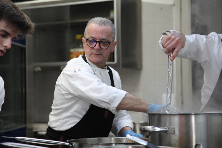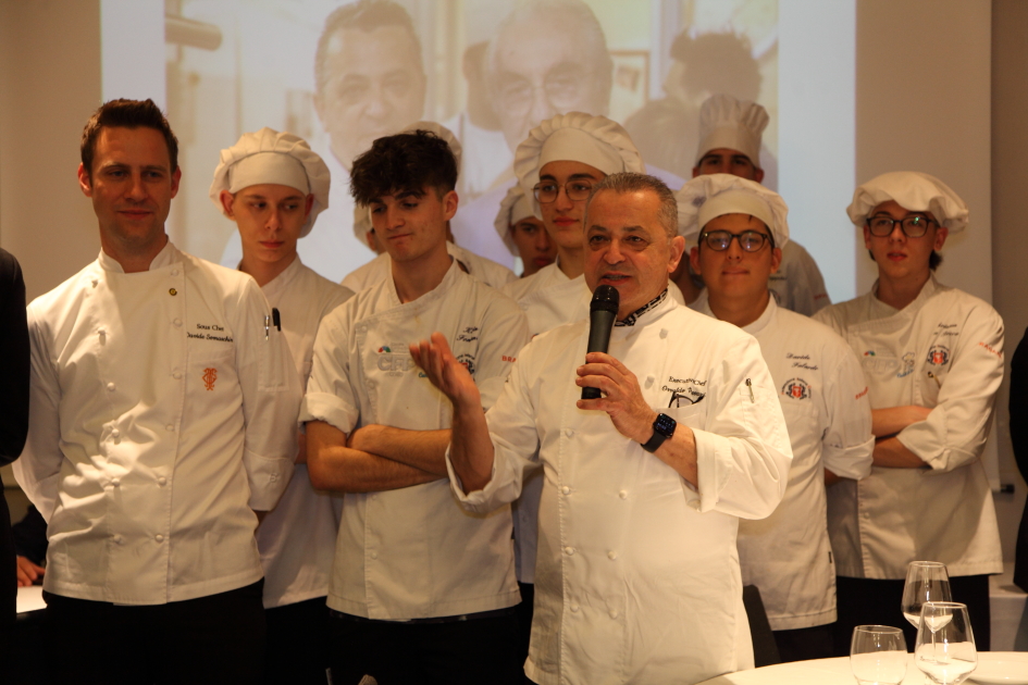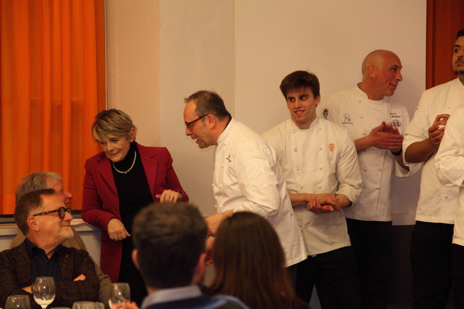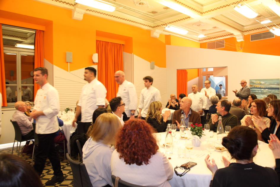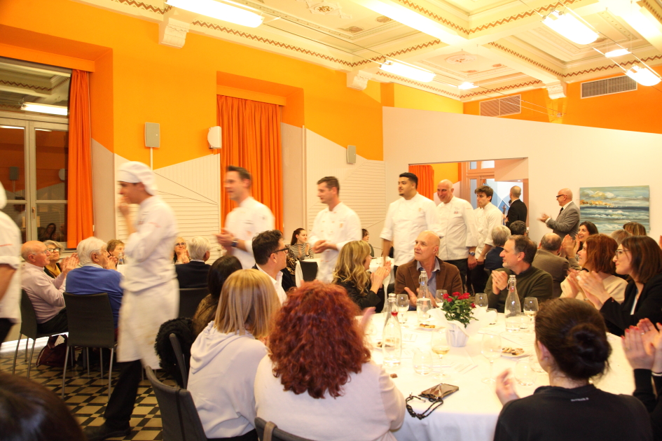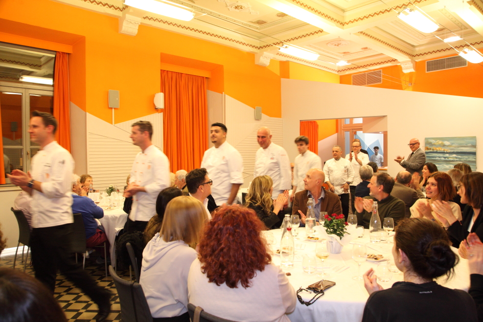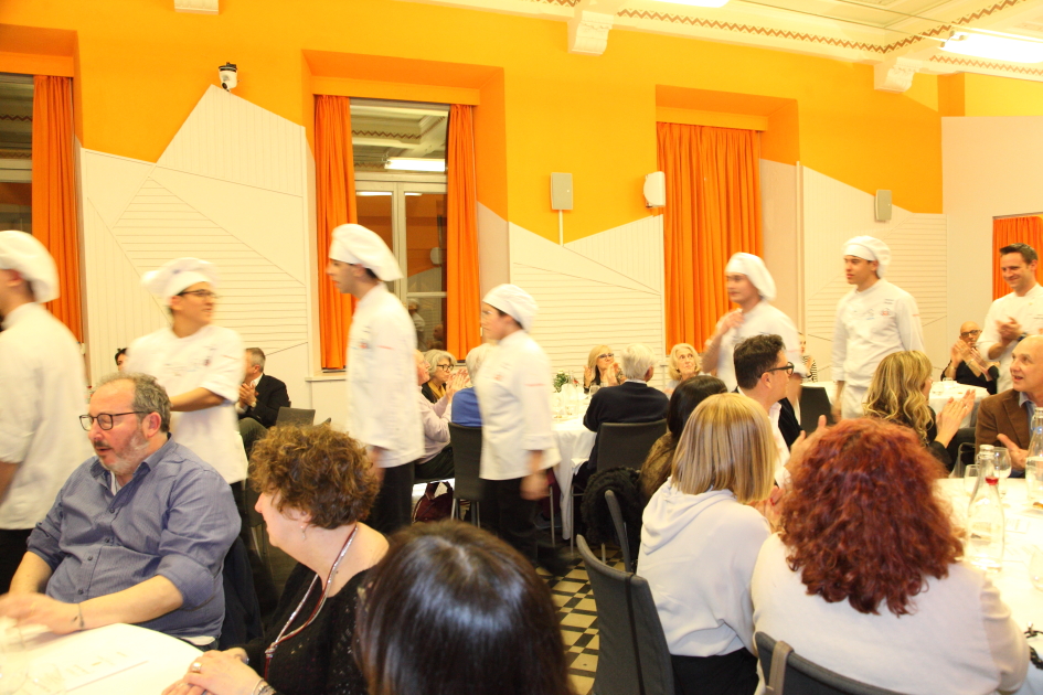 Photo Gallery Home Photo Gallery A TAVOLA CON MARCHESI - III EDIZIONE A TAVOLA CON MARCHESI - III EDIZIONE Serata d’eccezione al Centro di Formazione Professionale della Provincia di Como. Lo Chef del Grand Hotel Tremezzo Osvaldo Presazzi e il suo staff di sala e cucina, con il supporto degli studenti del IV ANNO del settore alberghiero del CFP, hanno preparato i piatti ideati dal grande Maestro della cucina italiana “Gualtiero Marchesi”.La serata ha visto la partecipazione del tesoriere e rappresentante della Fondazione Enrico Dandolo, che ha coordinato l’evento in nome della Fondazione Gualtiero Marchesi, nata con l’obiettivo di divulgare e promuovere le idee e le scoperte gastronomiche del suo mentore.La cena è realizzata grazie alla disponibilità della proprietà del Grand Hotel Tremezzo, con il suo celebre ristorante La Terrazza Gualtiero Marchesi, unico ristorante al mondo che oggi può vantarsi di proseguire l’impareggiabile eredità gastronomica del grande Maestro, riproponendone i piatti iconici nel rispetto dello stile e della codificazione.Circa settantina gli ospiti presenti. Le prenotazioni si sono esaurite nel giro di qualche ora, vista l’eccezionalità della serata. Qui di seguito la gallery dell'evento Torna indietro Condividi Su E-mailFacebookTwitterLinkedIn Gallery