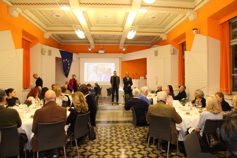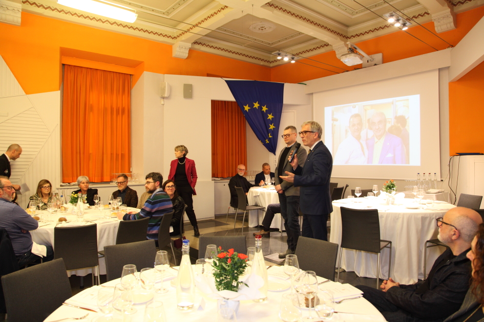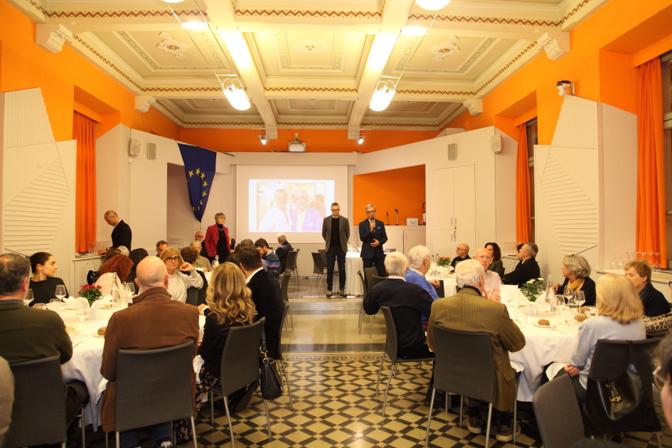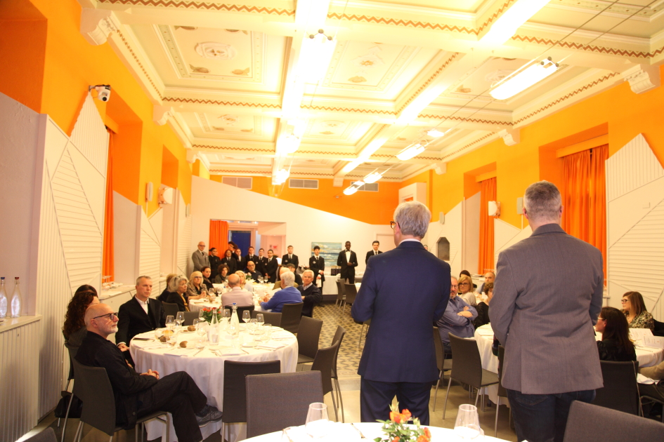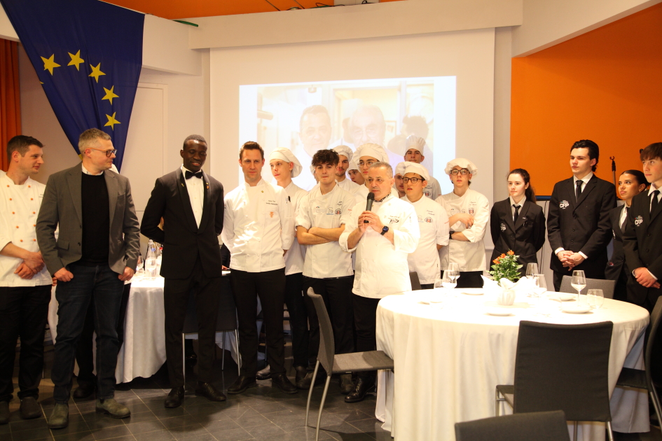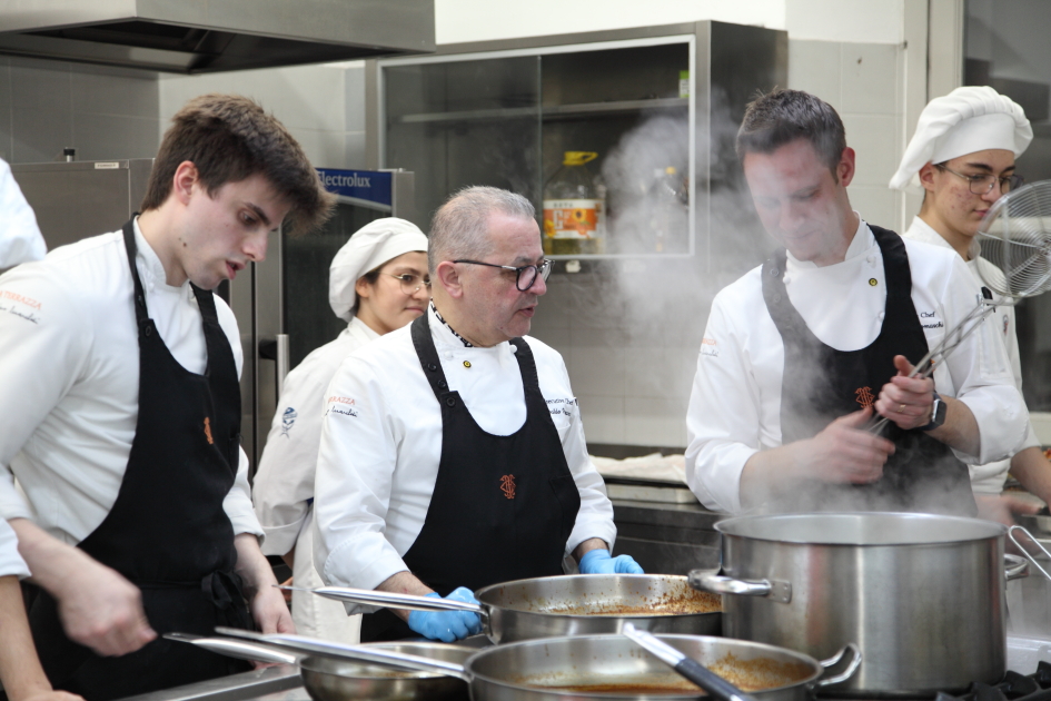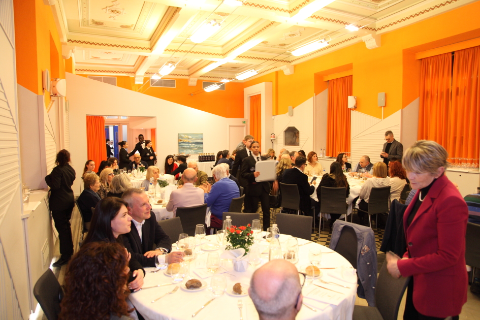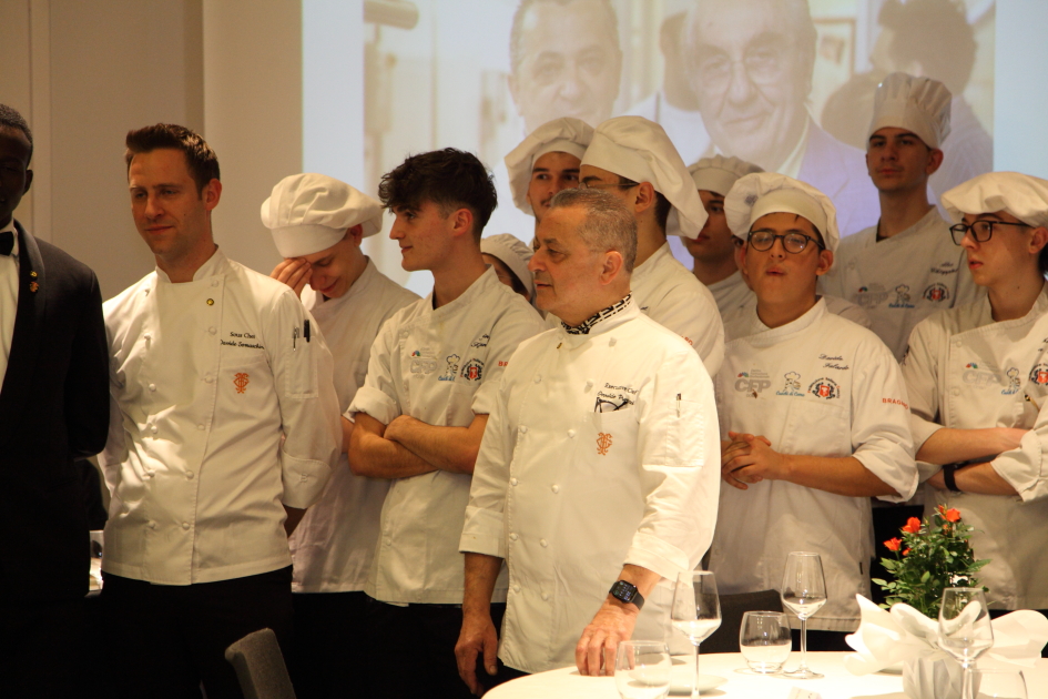 Photo Gallery Home Photo Gallery A TAVOLA CON MARCHESI - III EDIZIONE A TAVOLA CON MARCHESI - III EDIZIONE Serata d’eccezione al Centro di Formazione Professionale della Provincia di Como. Lo Chef del Grand Hotel Tremezzo Osvaldo Presazzi e il suo staff di sala e cucina, con il supporto degli studenti del IV ANNO del settore alberghiero del CFP, hanno preparato i piatti ideati dal grande Maestro della cucina italiana “Gualtiero Marchesi”.La serata ha visto la partecipazione del tesoriere e rappresentante della Fondazione Enrico Dandolo, che ha coordinato l’evento in nome della Fondazione Gualtiero Marchesi, nata con l’obiettivo di divulgare e promuovere le idee e le scoperte gastronomiche del suo mentore.La cena è realizzata grazie alla disponibilità della proprietà del Grand Hotel Tremezzo, con il suo celebre ristorante La Terrazza Gualtiero Marchesi, unico ristorante al mondo che oggi può vantarsi di proseguire l’impareggiabile eredità gastronomica del grande Maestro, riproponendone i piatti iconici nel rispetto dello stile e della codificazione.Circa settantina gli ospiti presenti. Le prenotazioni si sono esaurite nel giro di qualche ora, vista l’eccezionalità della serata. Qui di seguito la gallery dell'evento Torna indietro Condividi Su E-mailFacebookTwitterLinkedIn Gallery