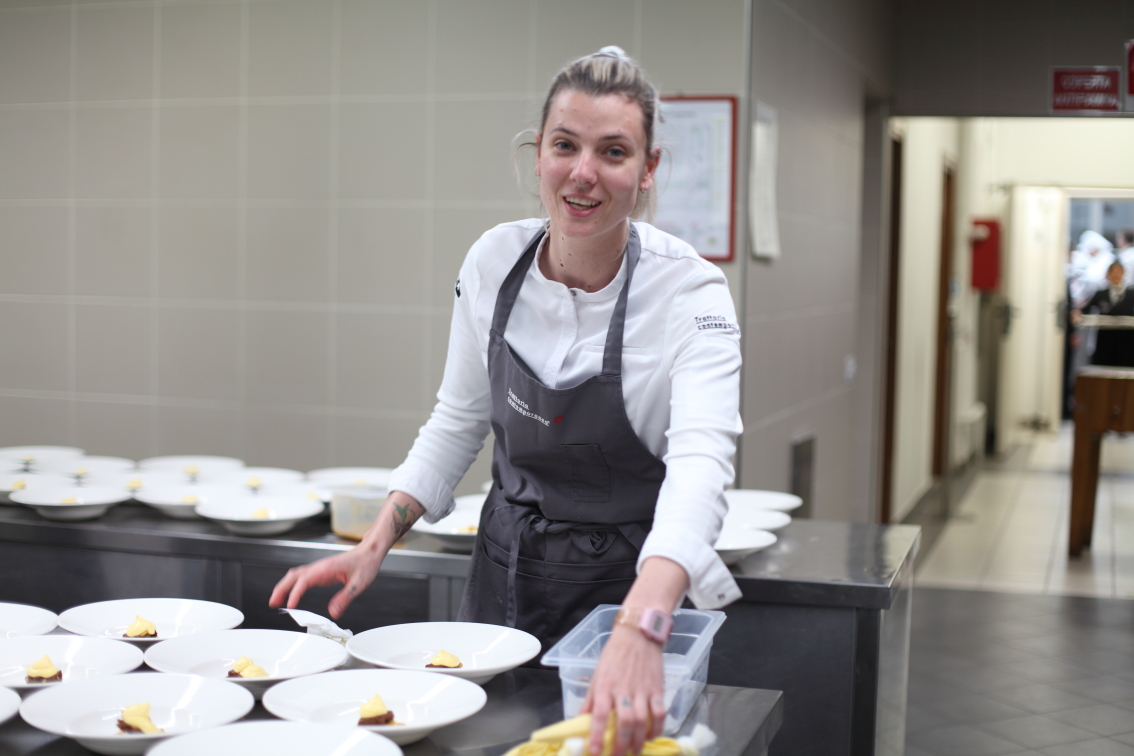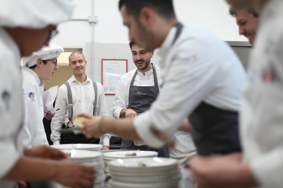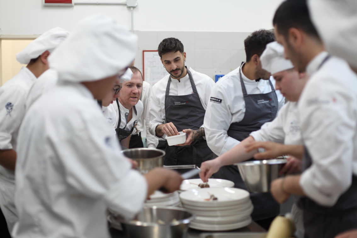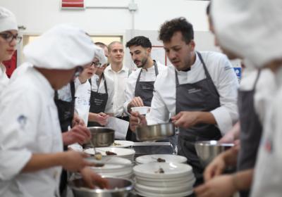 Photo Gallery Home Photo Gallery TRATTORIA CONTEMPORANEA OSPITE AL CFP TRATTORIA CONTEMPORANEA OSPITE AL CFP Grande evento al CFP di Como, nella serata dello scorso 26 aprile.La serata ha visto protagonista lo Chef DAVIDE MARZULLO, con al fianco la sua brigata che ha organizzato una cena con 5 portate, secondo la filosofia del suo ristorante "Trattoria Contemporanea".Davide Marzullo, top Chef emergente italiano, vincitore di Antonino Chef Academy 2020, Chef Emergente Nord 2021, ha ideato, sviluppato e realizzato la sua food experience e ha deciso di investirla e potenziarla in Trattoria Contemporanea, premiata con una Stella Michelin nel 2022.Gli allievi delle classi di cucina e sala appartenenti al 2 e 3 anno del CFP hanno svolto un'importante esercitazione con lo chef seguita dalla cena che ha visto più di 70 commensali che hanno potuto deliziare il palato con la moderna cucina proposta per l'occasione.La cucina del ristornate si basa su materie prime povere; ingredienti semplici vengono valorizzati ed elevati. “Una cucina difficile da realizzare, risultato di ricerca e pensiero ma immensamente appagante”.Queste occasioni rappresentano alti momenti formativi per gli allievi che hanno l'opportunità di confrontarsi con alte realtà produttive presenti sul territorio e crescere dal punto di vista personale e professionale.Qui di seguito alcuni scatti dell'evento Torna indietro Condividi Su E-mailFacebookTwitterLinkedIn Gallery
